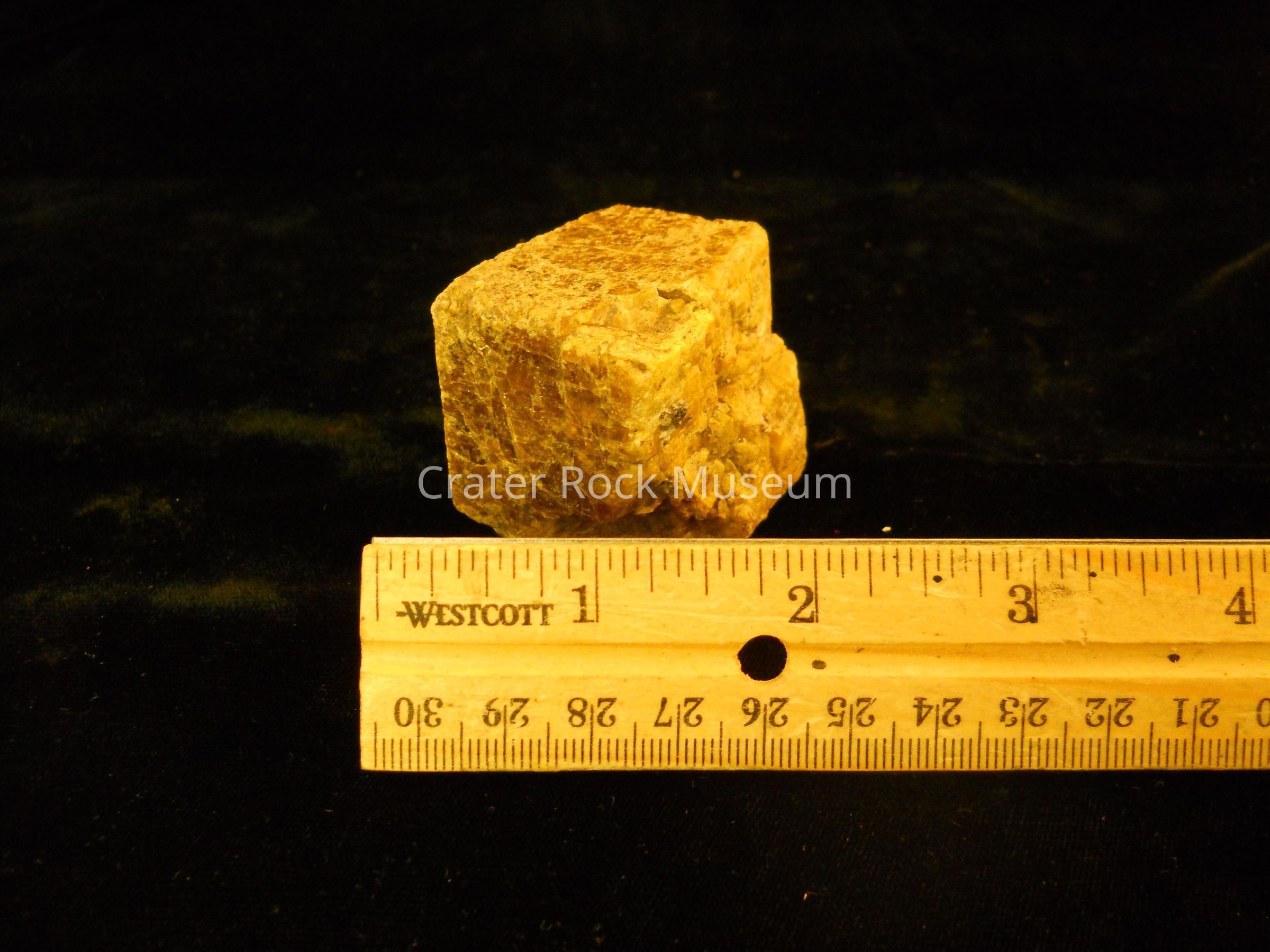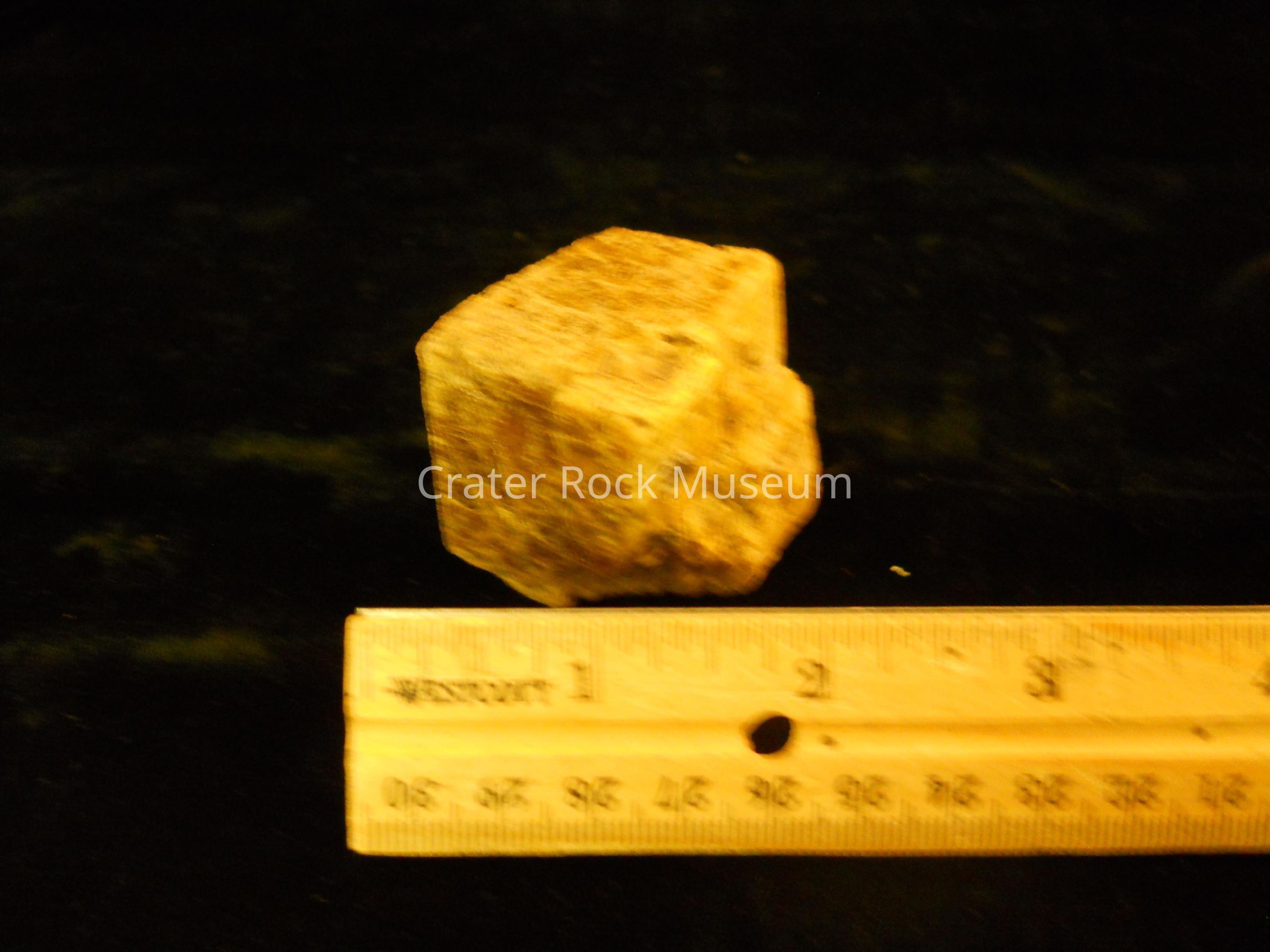 Description: This is a small specimen with a generally cubic shape. The color is a dull tannish-brown with a mica-like reflective surface.