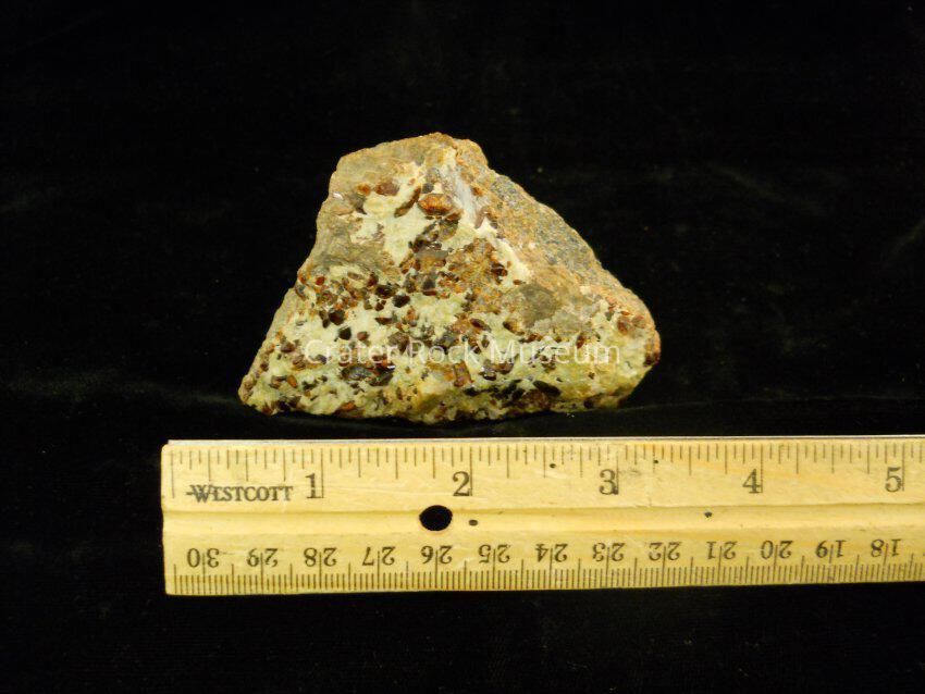 Description: This is a fairly small, rough specimen that has one face that is covered in reddish-brown crystals.