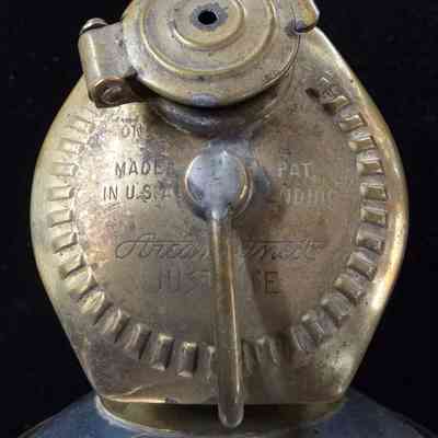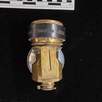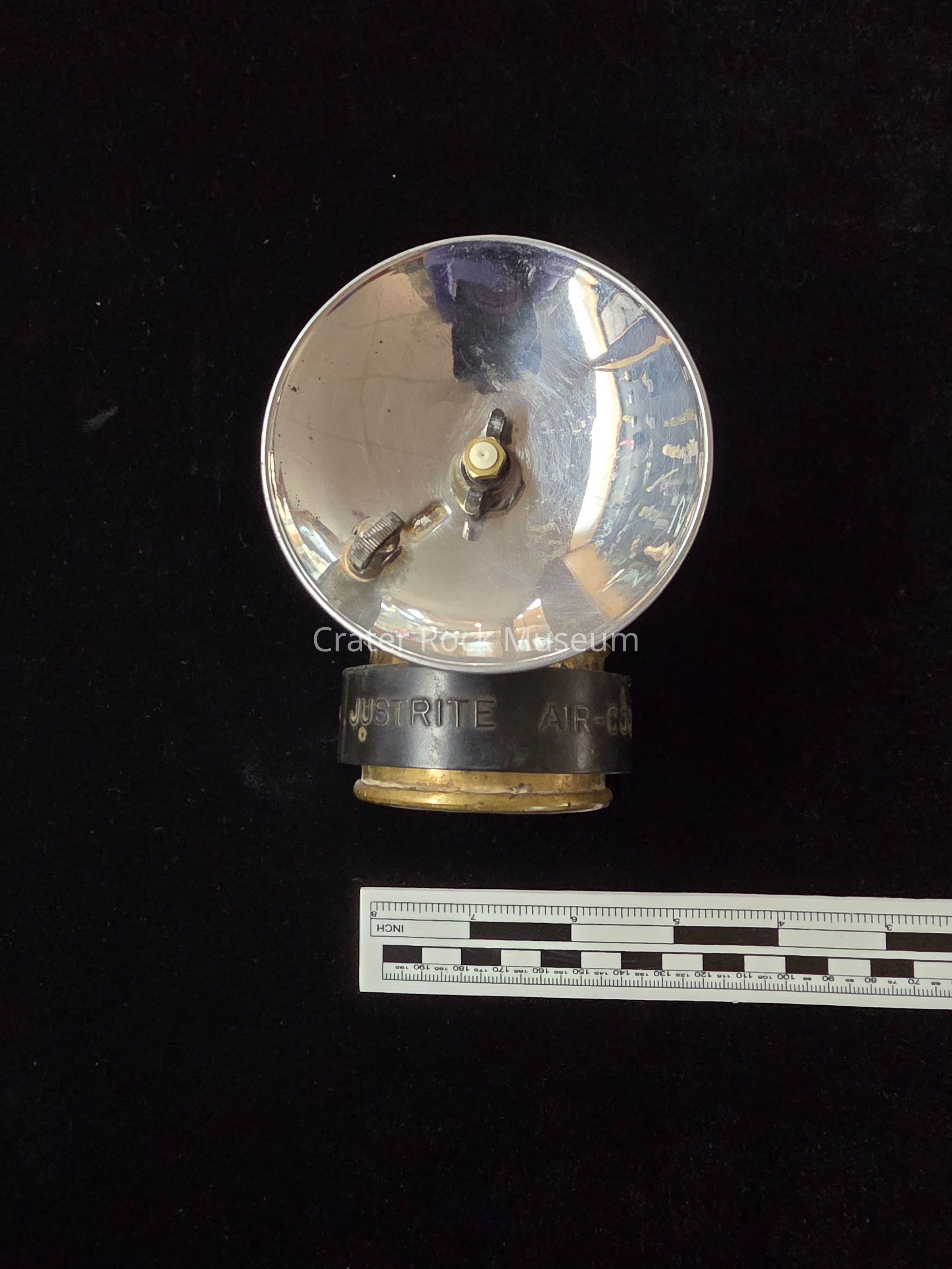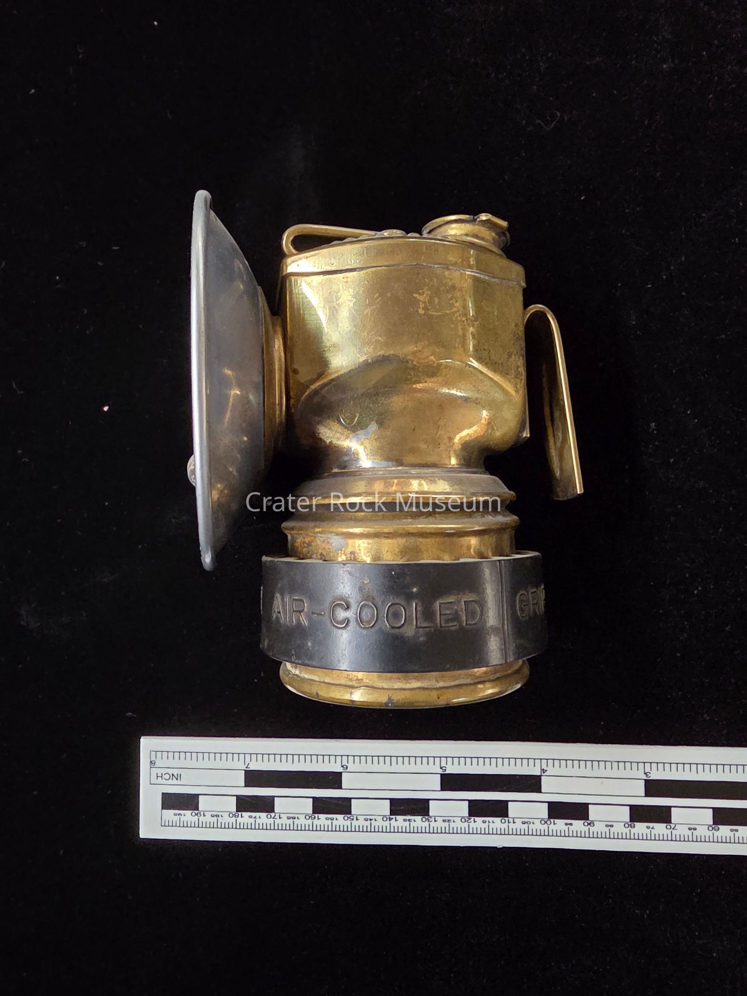 Description: This artifact is a "Just Rite" brand, small copper miners lamp. It is in excellent condition and functional.