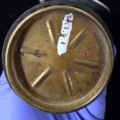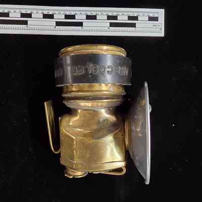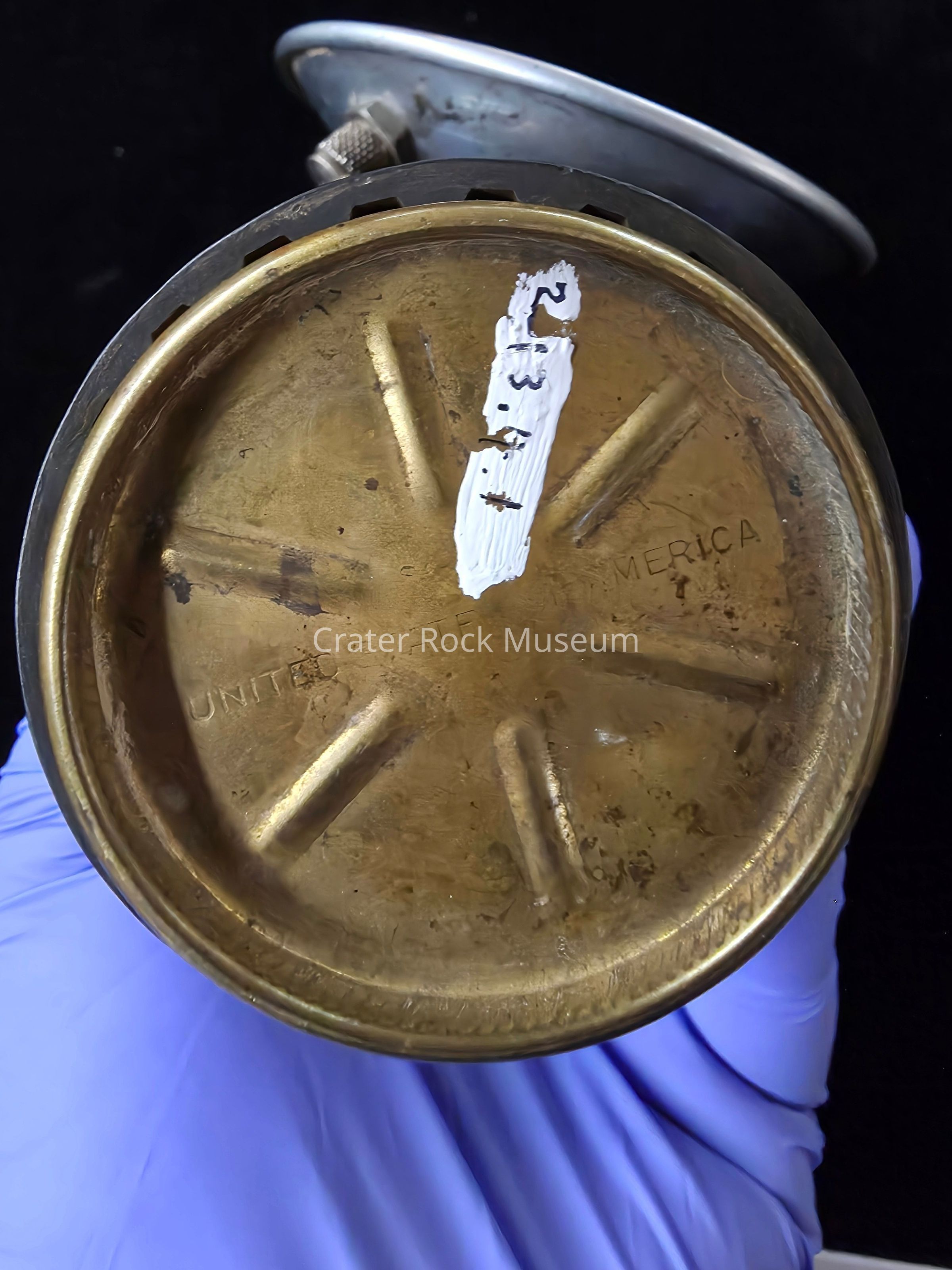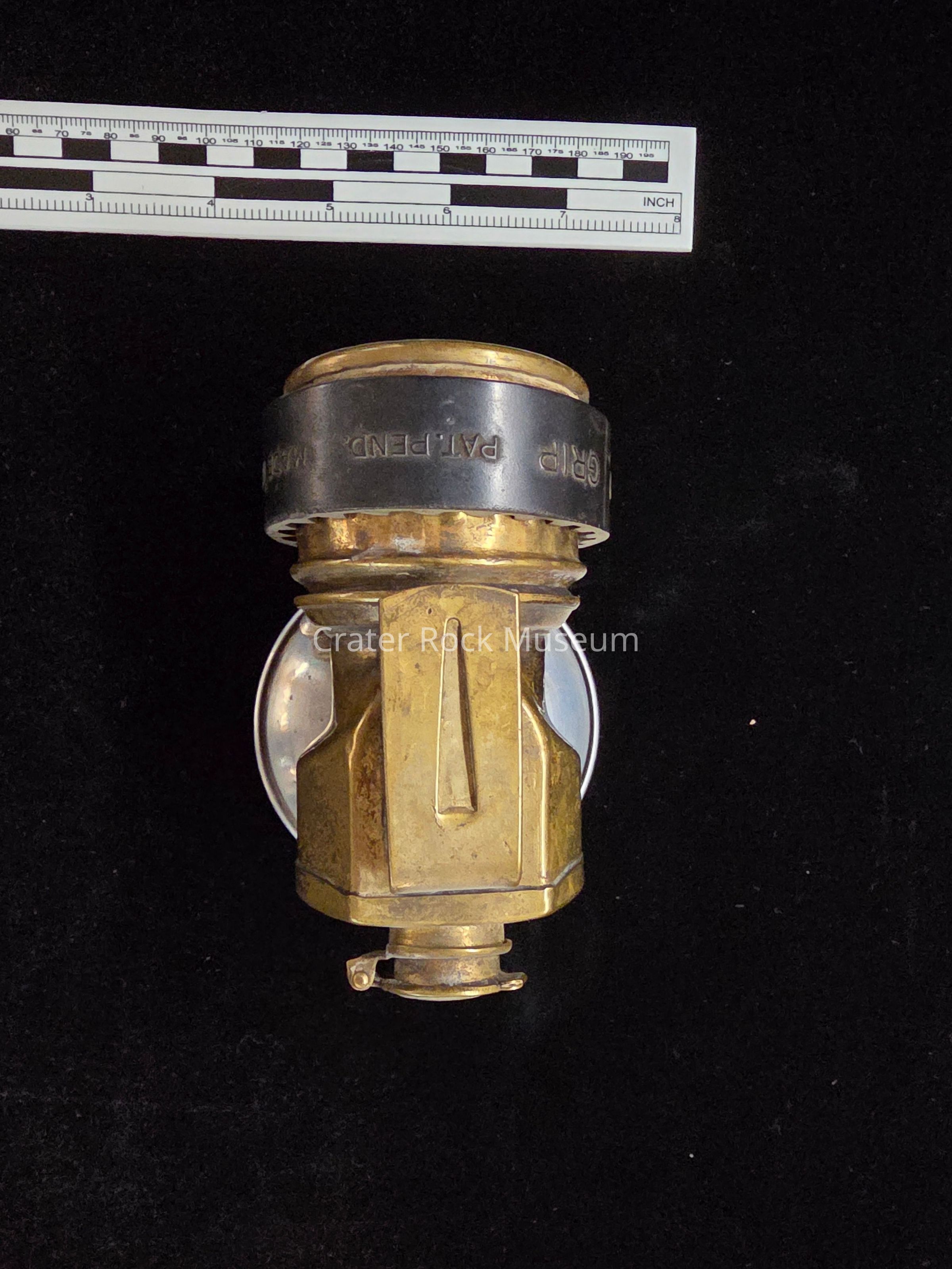 Carbide powered pre-1930s lamp used in mining. 'Patent Pending' stamp indicates that this is likely are early example.