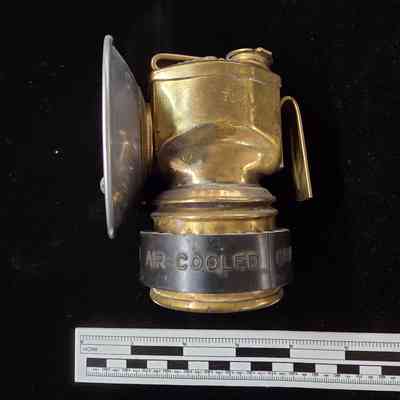 A carbide lamp, or acetylene gas lamp, produces a bright, white flame by reacting calcium carbide with water to create acetylene gas. The gas travels through the lamp to a burner, where it's ignited to provide portable light, and was historically used by miners, cavers, and on early automobiles before the widespread adoption of electric lightingCollection