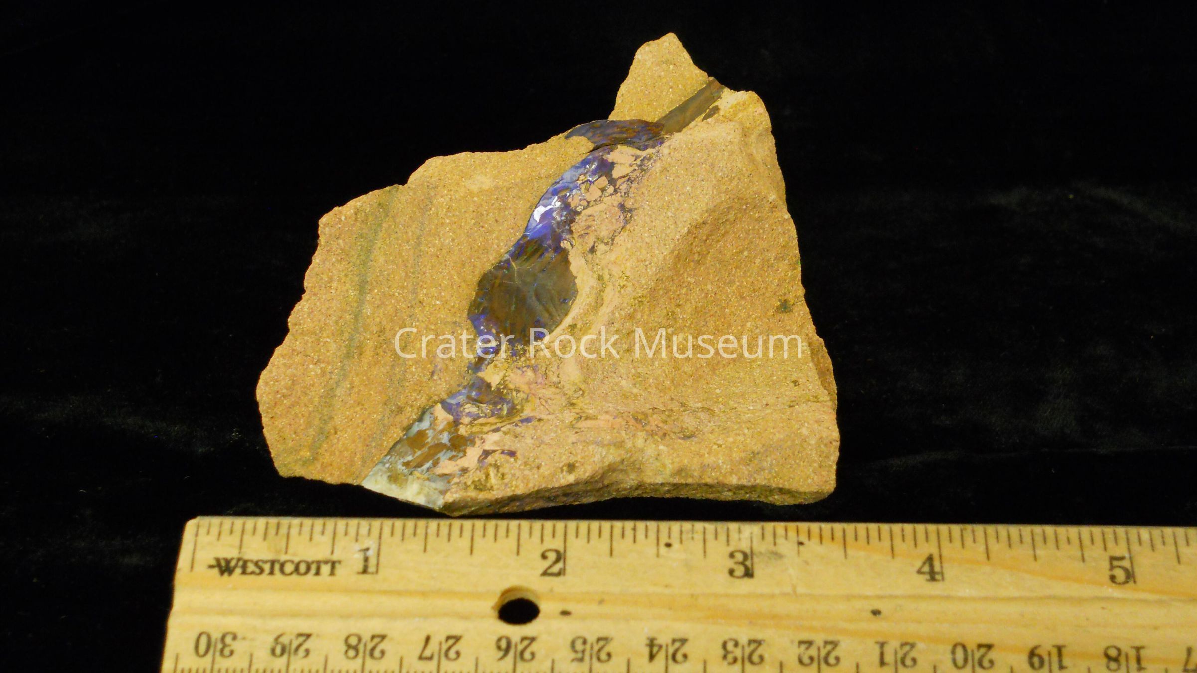 Description: Matrix uneven, irregular shape with blue opal in in center.