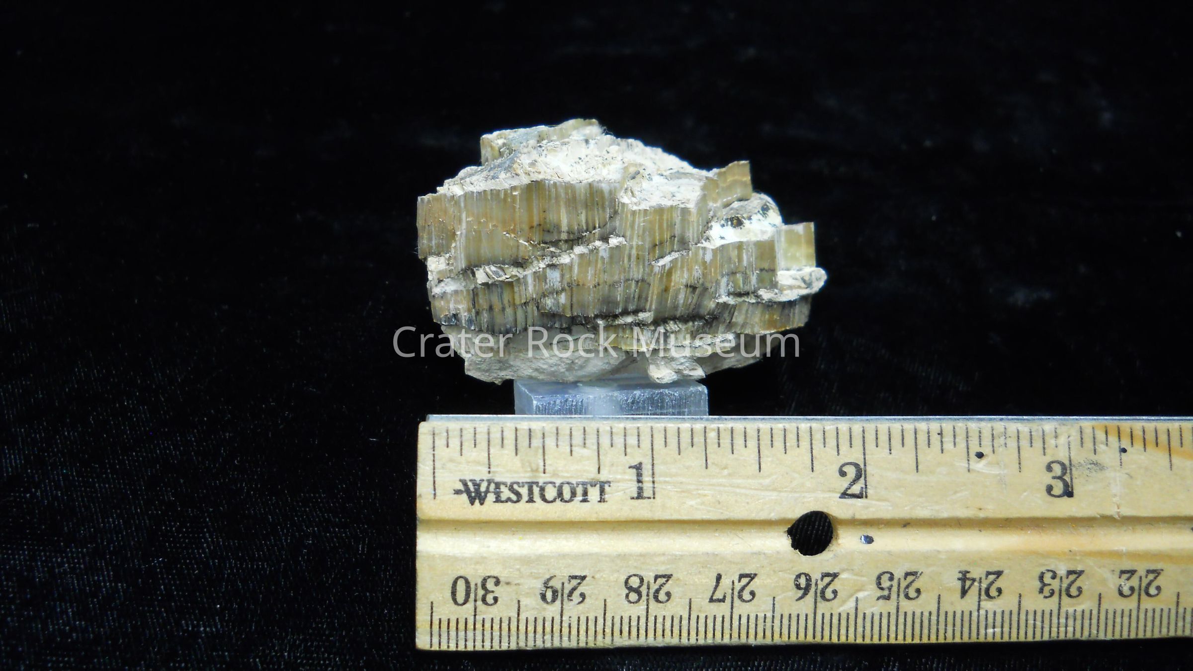 Description: Small beige specimen with verticle layers of mica-like structure surrounding entire specimen.