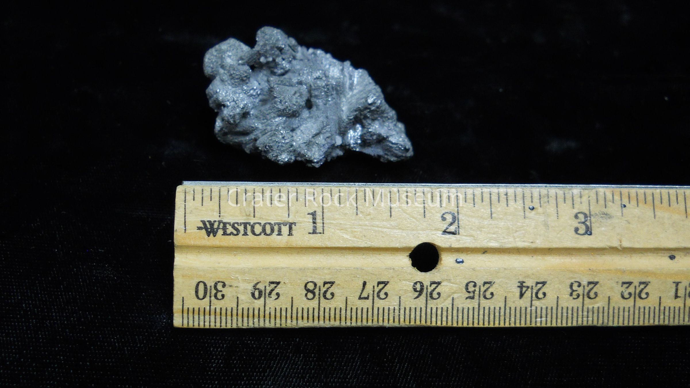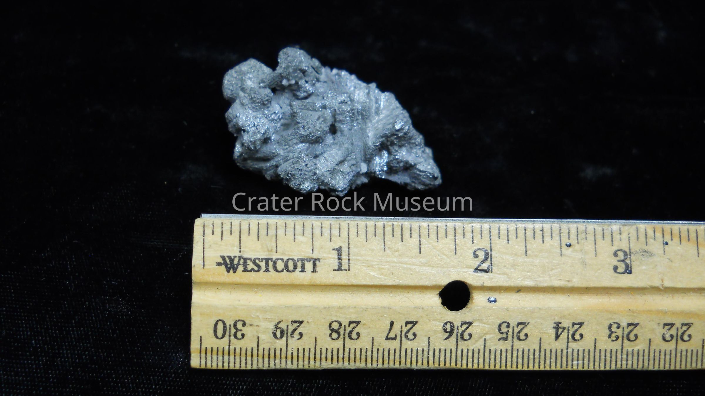 Description: Small specimen with gray crystals in a non-symmetrical bunching.