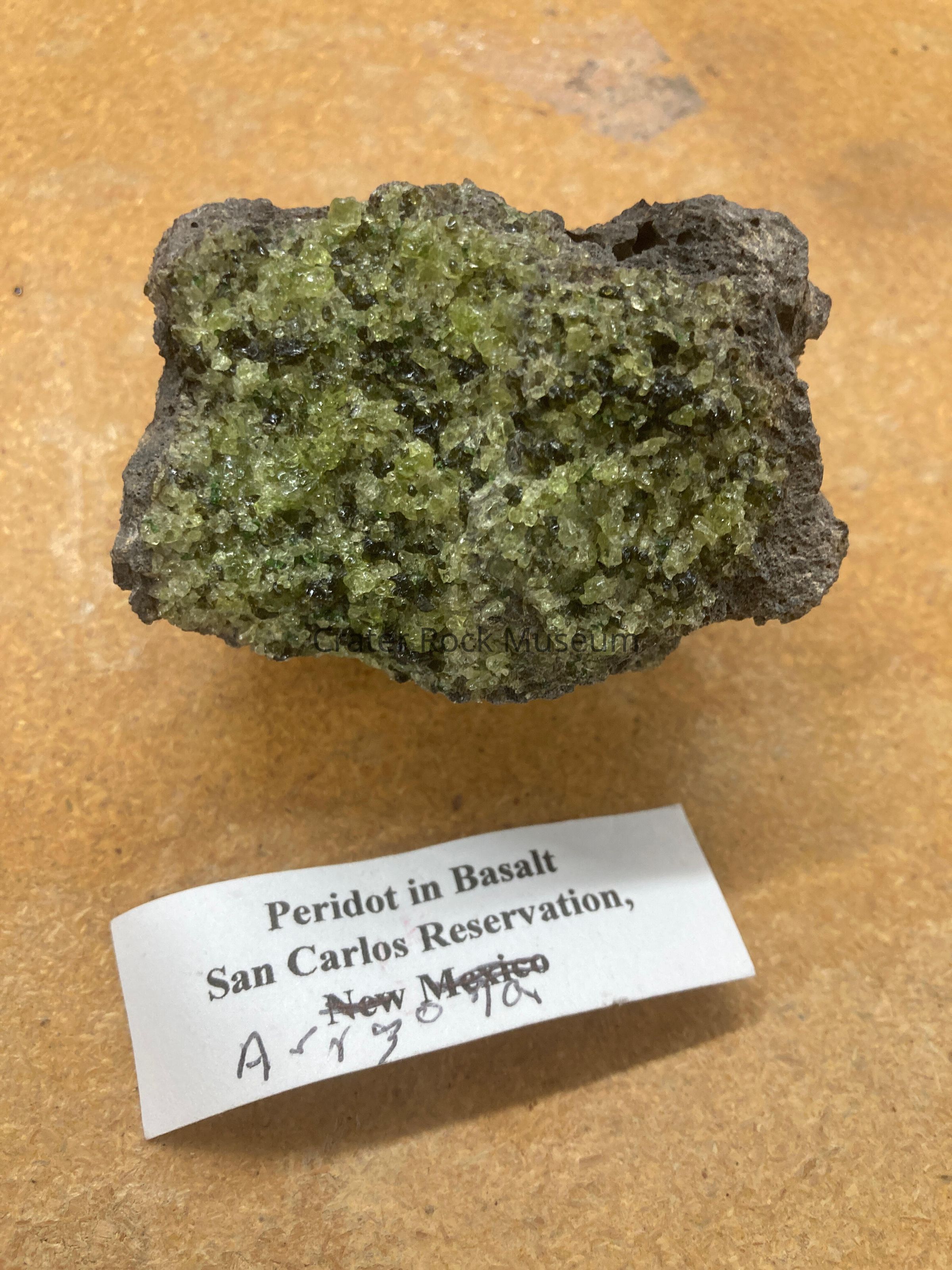 Peridot in Basalt from San Carlos Reservation, Arizona.