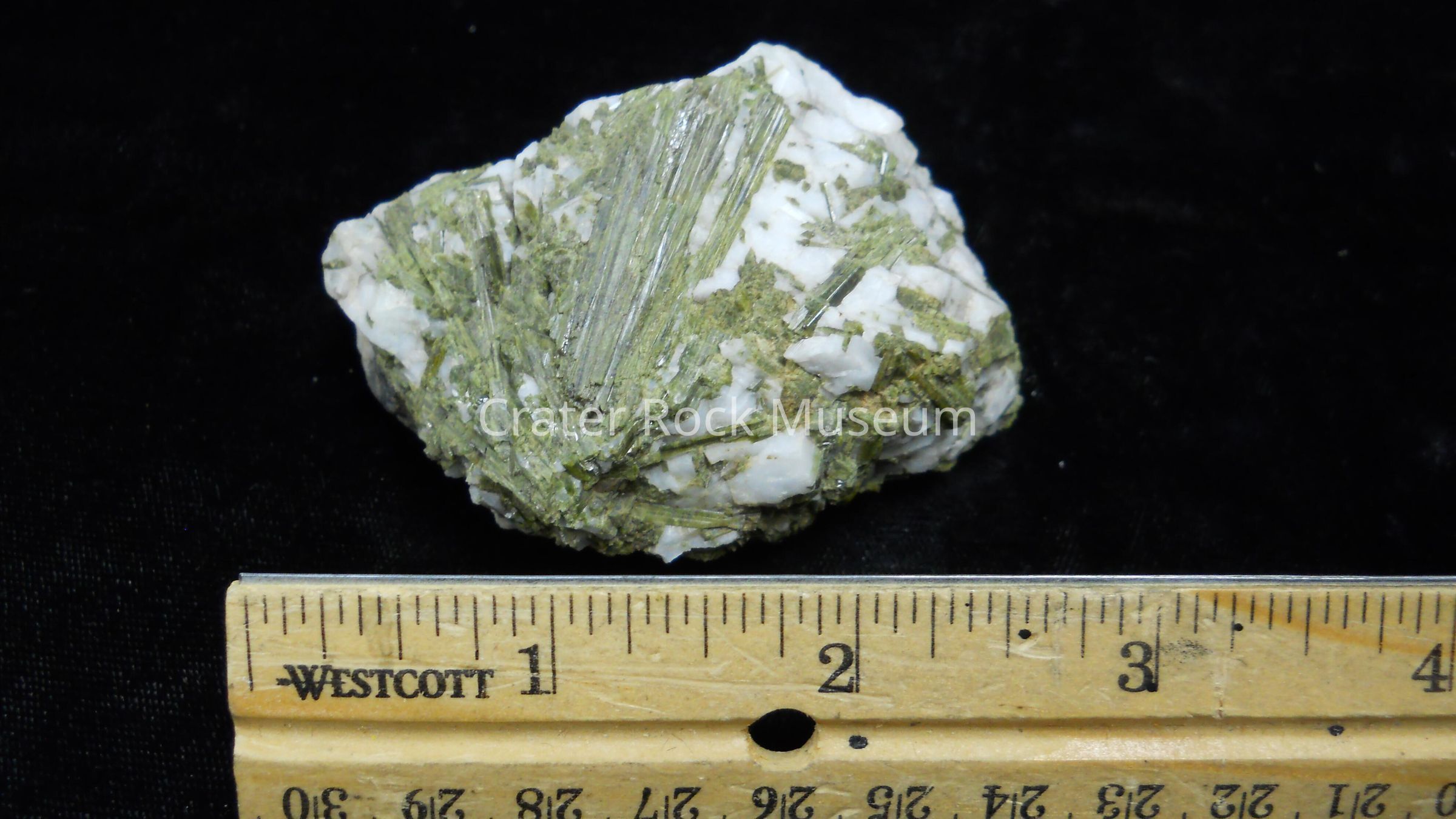 •Crystal Habits include slender prismatic to acicular, often aggregated crystals, columnar, granular and fibrous, asbestiform masses. A moss-like aggregate habit has been described when found in some igneous rocks.