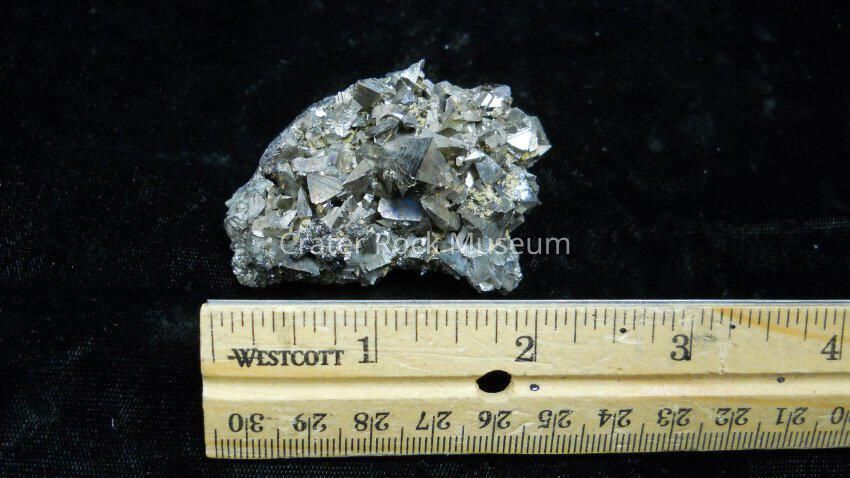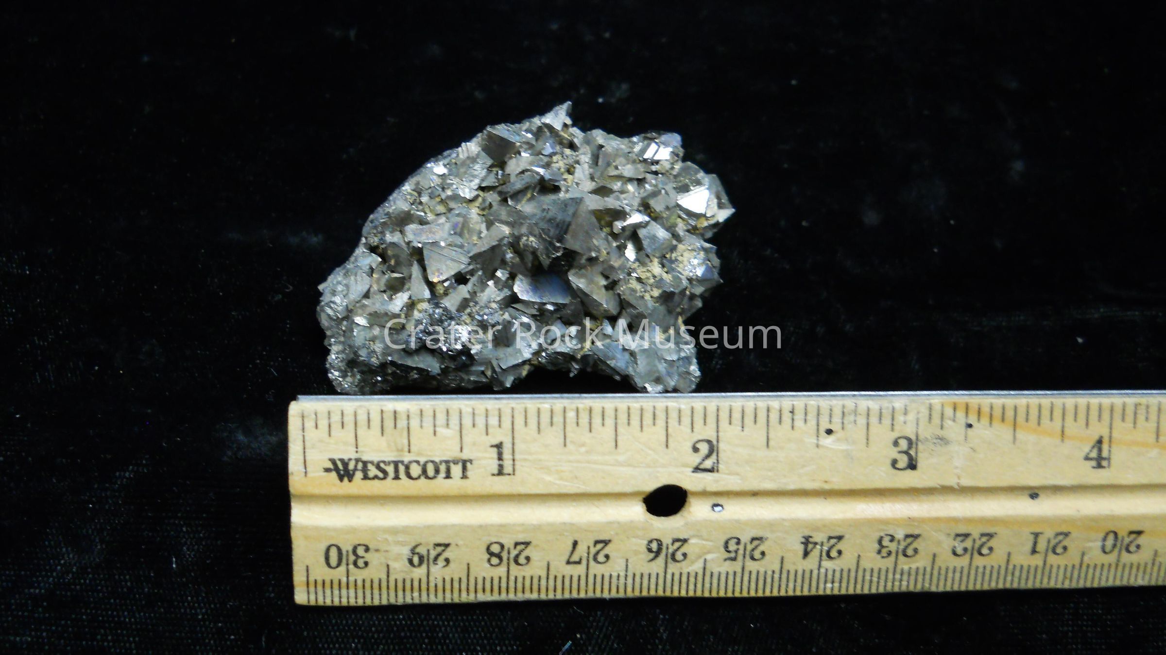 Description: Small specimen with distinct crystals of various sizes. Color is a slver-yellowish tint.