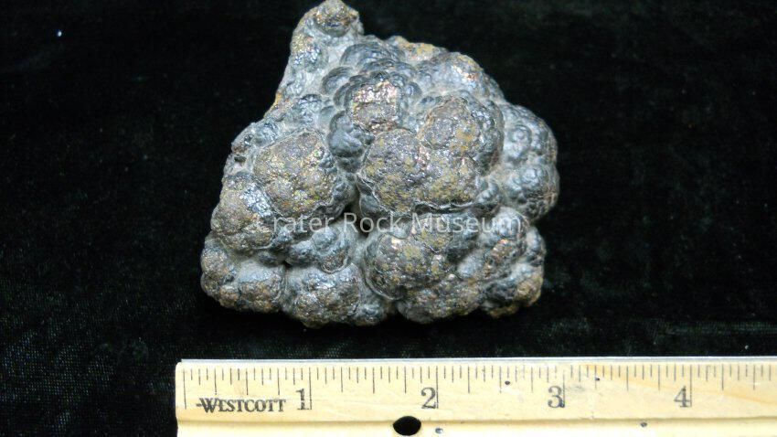 Description: Small specimen with a botryoidal texture copper colored intrusions throughout specimen.