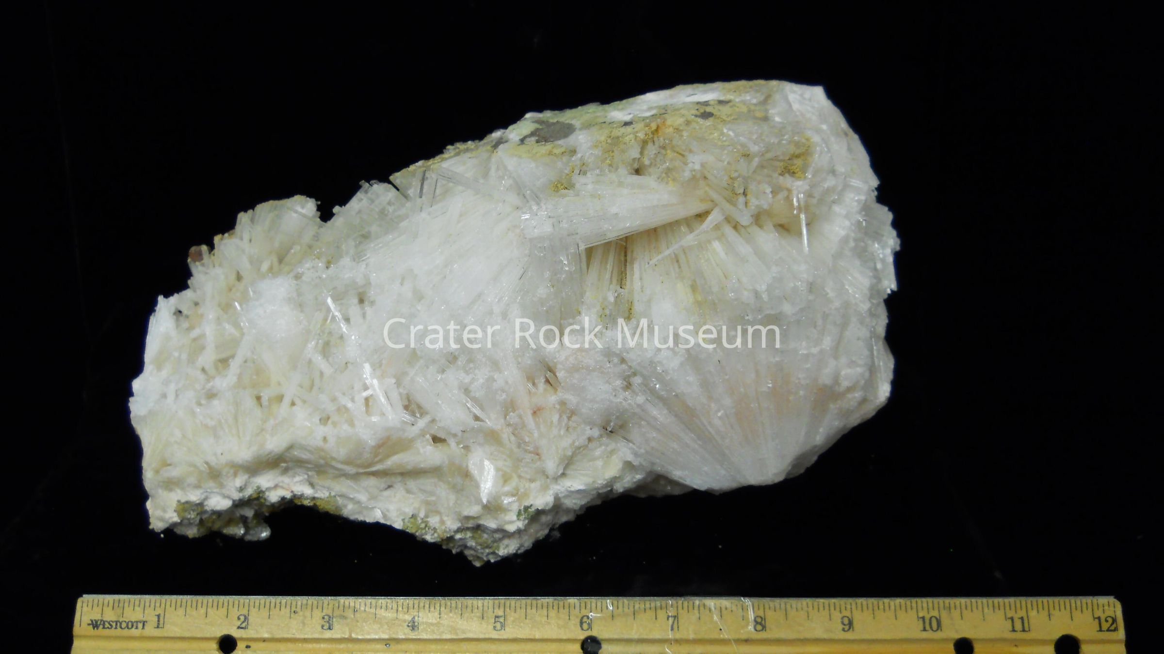 A fairly large specimen with randomly arrayed bundles of 1-2" needle shaped crystals. Bundles are fan shaped and have a rosy-pink color.Crystals are located mostly on one surface of a rock
