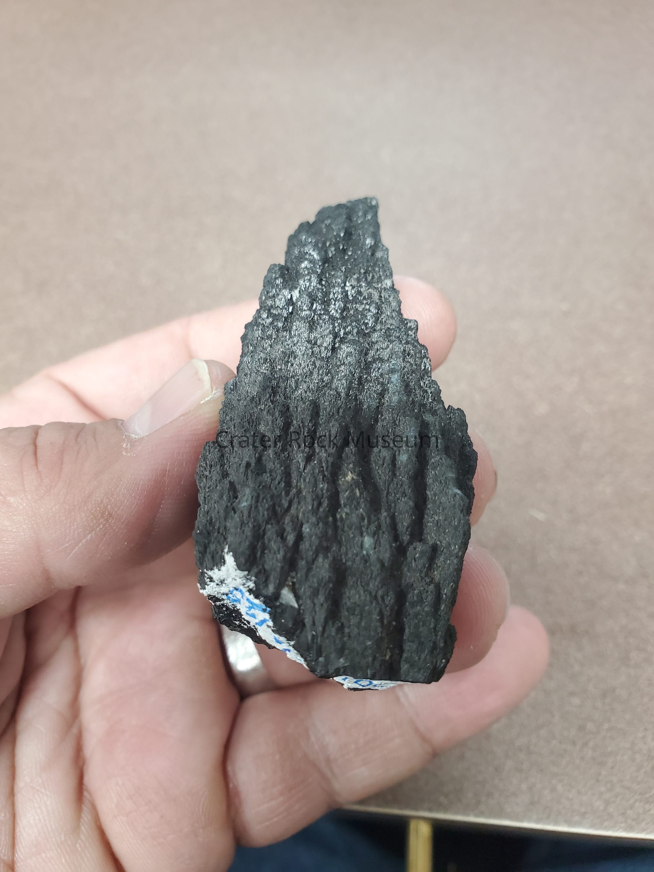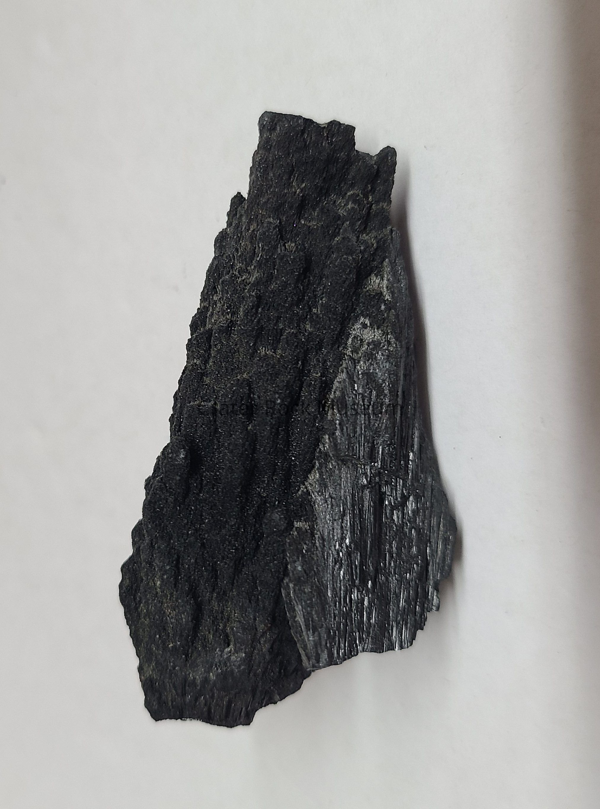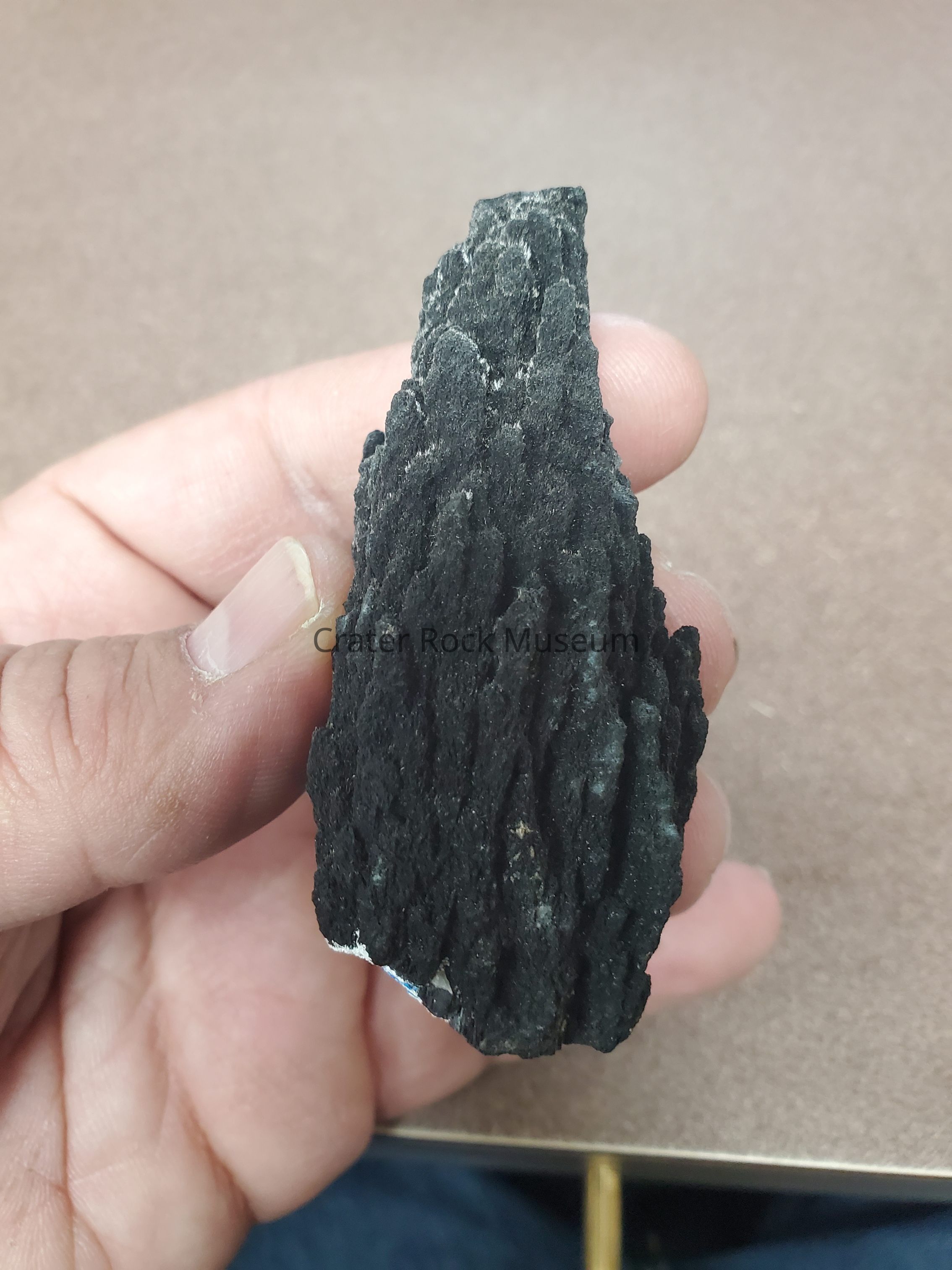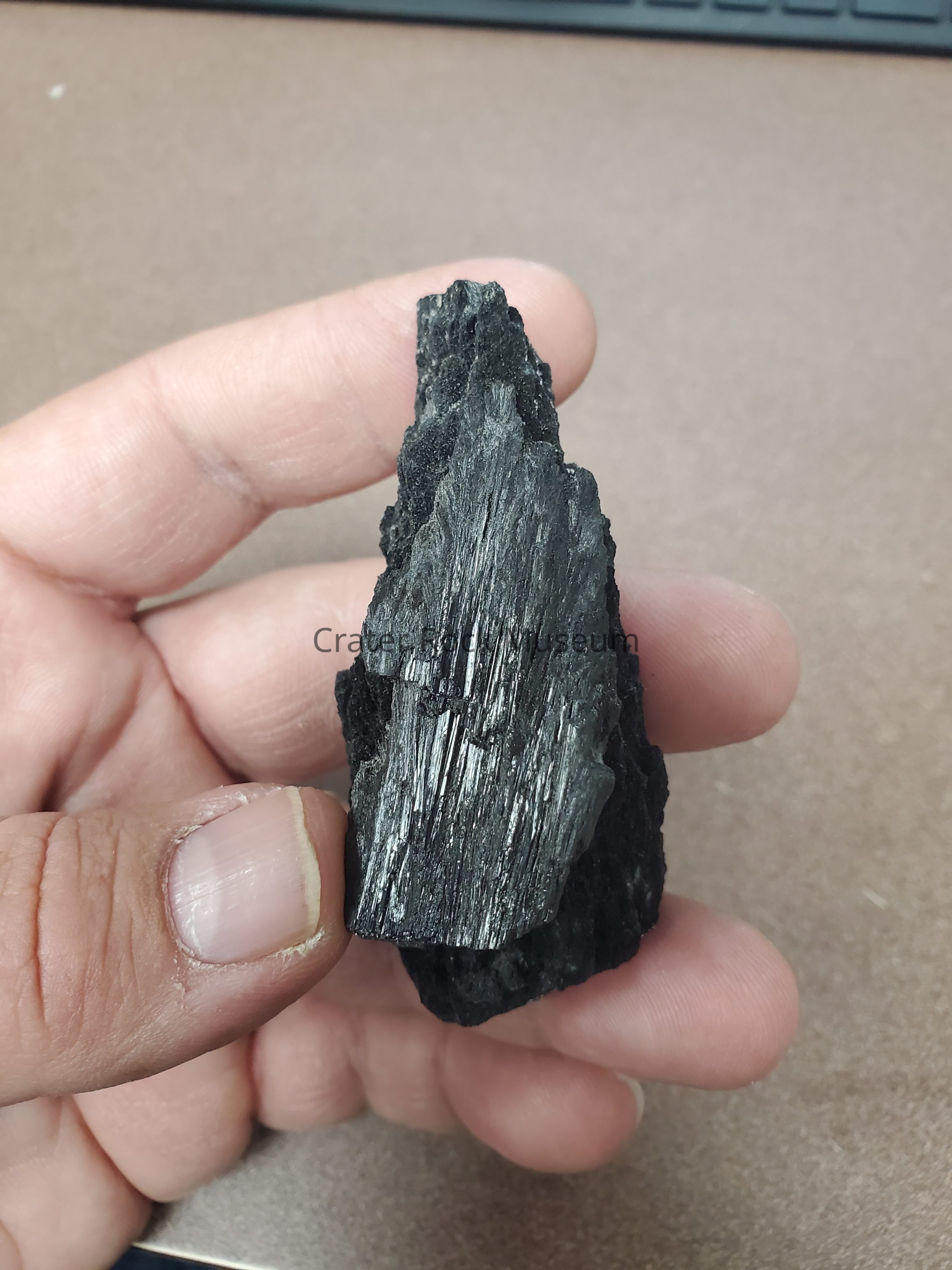 Description: A columnar shaped piece with a twinned fragment of another.Color is black and velvety. Complex cluster of black Schorl Tourmaline crystals in stalactitic form. The surface of the specimen are covered with fine crystal faces giving it a velvety surface texture. This material is sometimes known as "Velvet Tourmaline". Ex. Joseph D'Agostino collection 4FA.