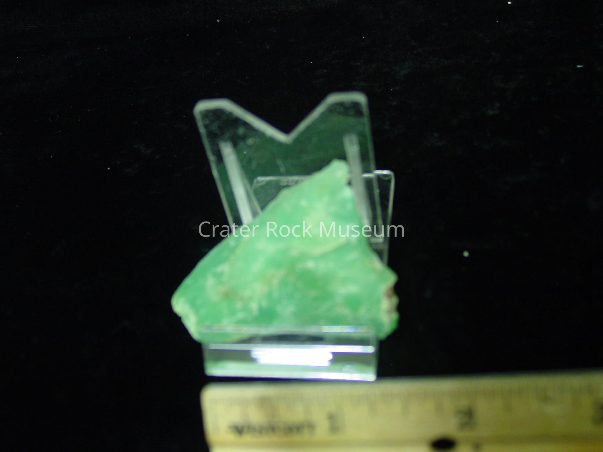 Physical Description: A small triangular piece of Chrysophase (Chrysopase) that is pale sea green in color with white striations.