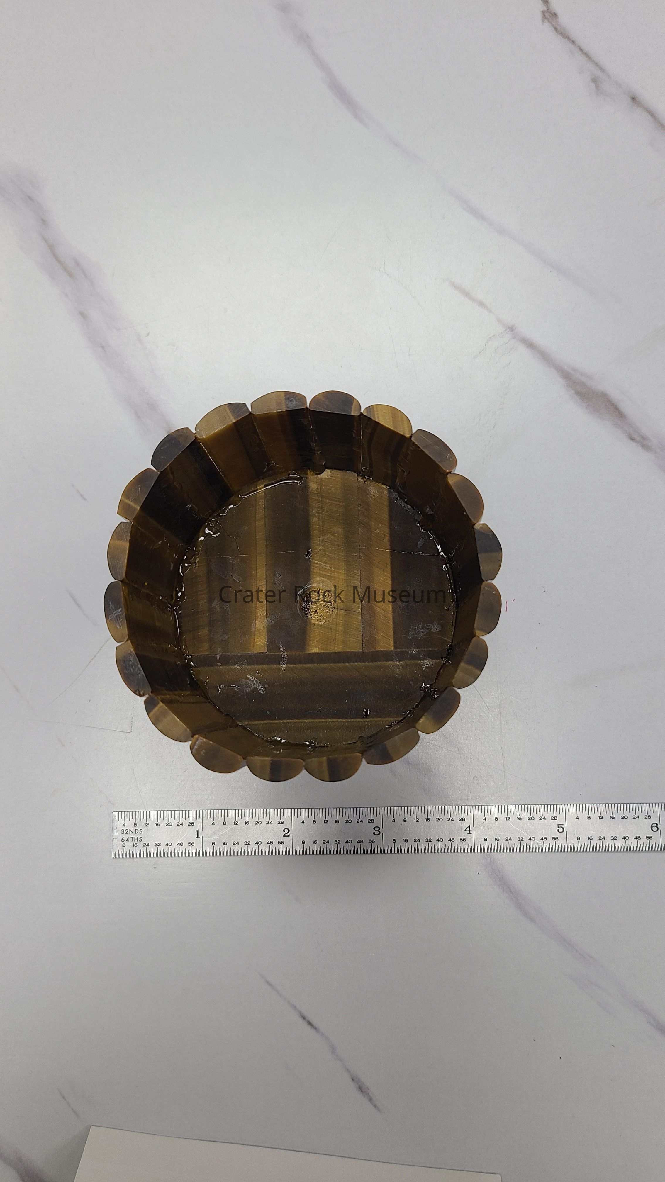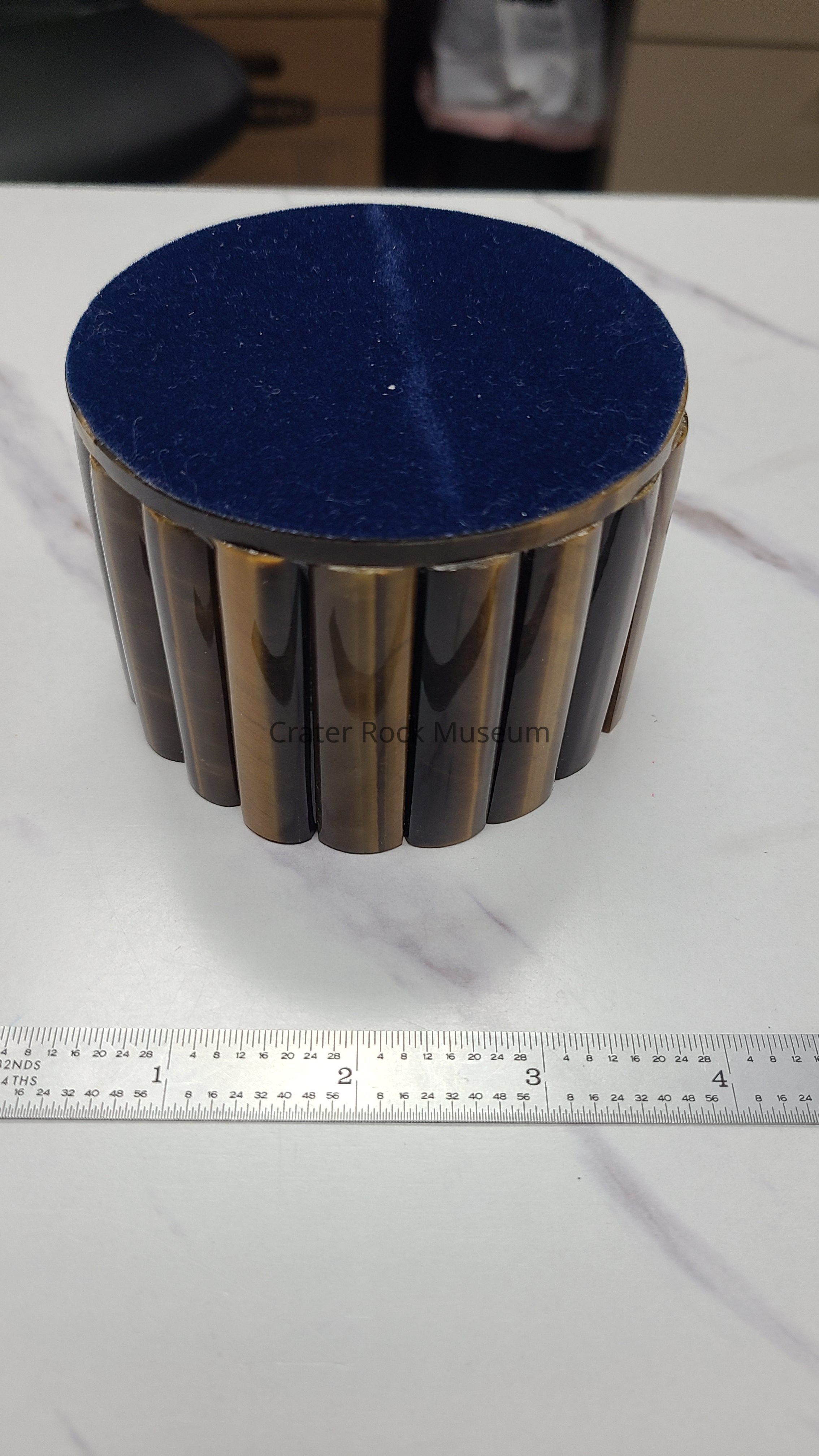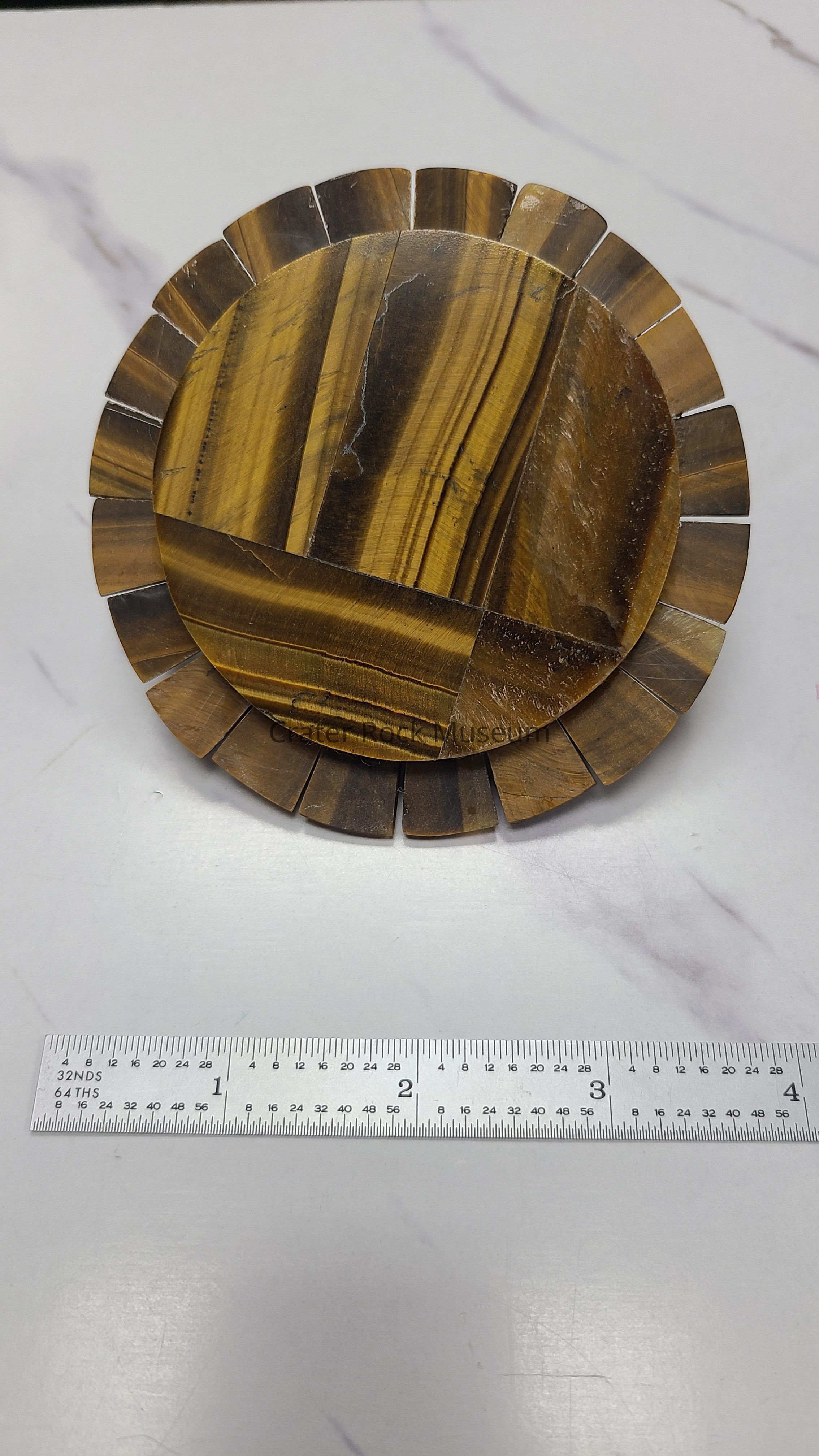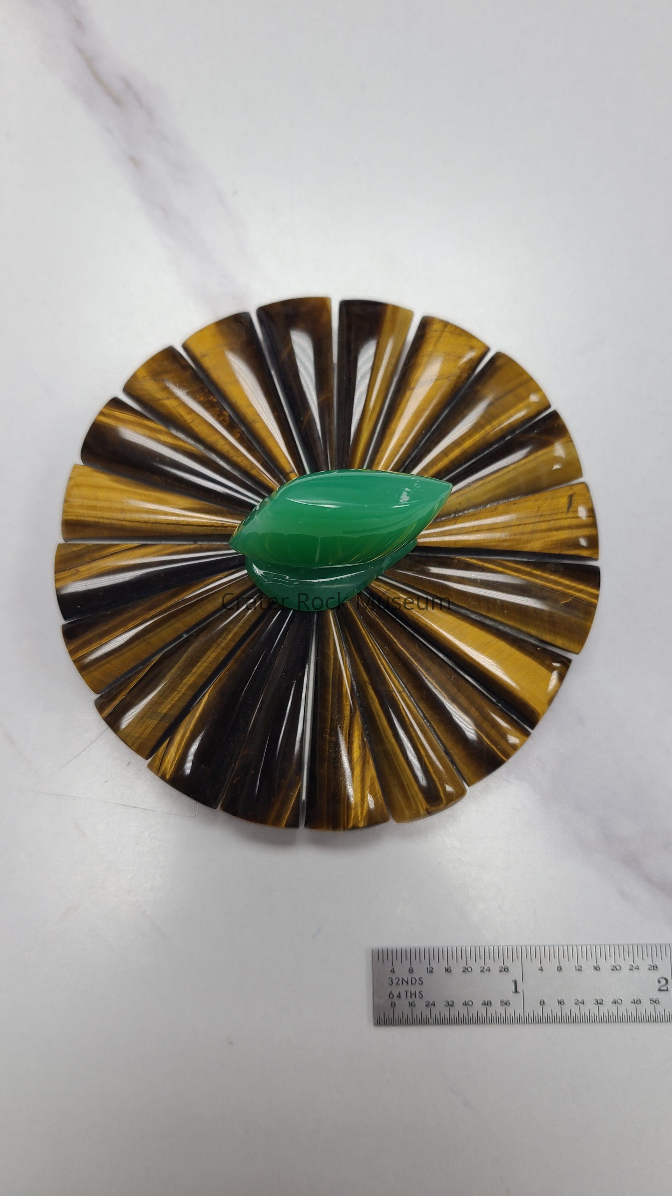 lapidary jewelry box of tiger's eye with a chrysoprase ornament