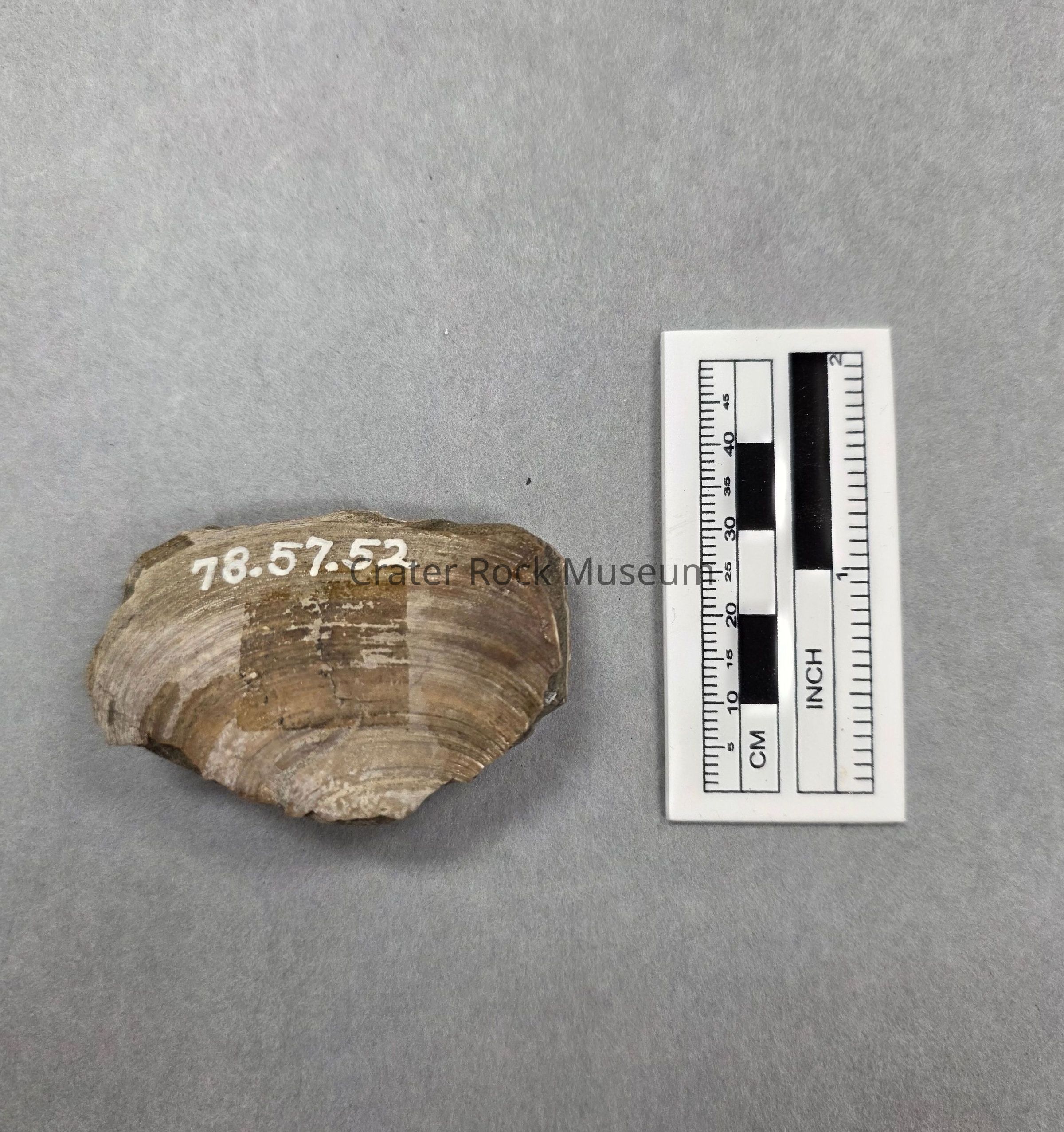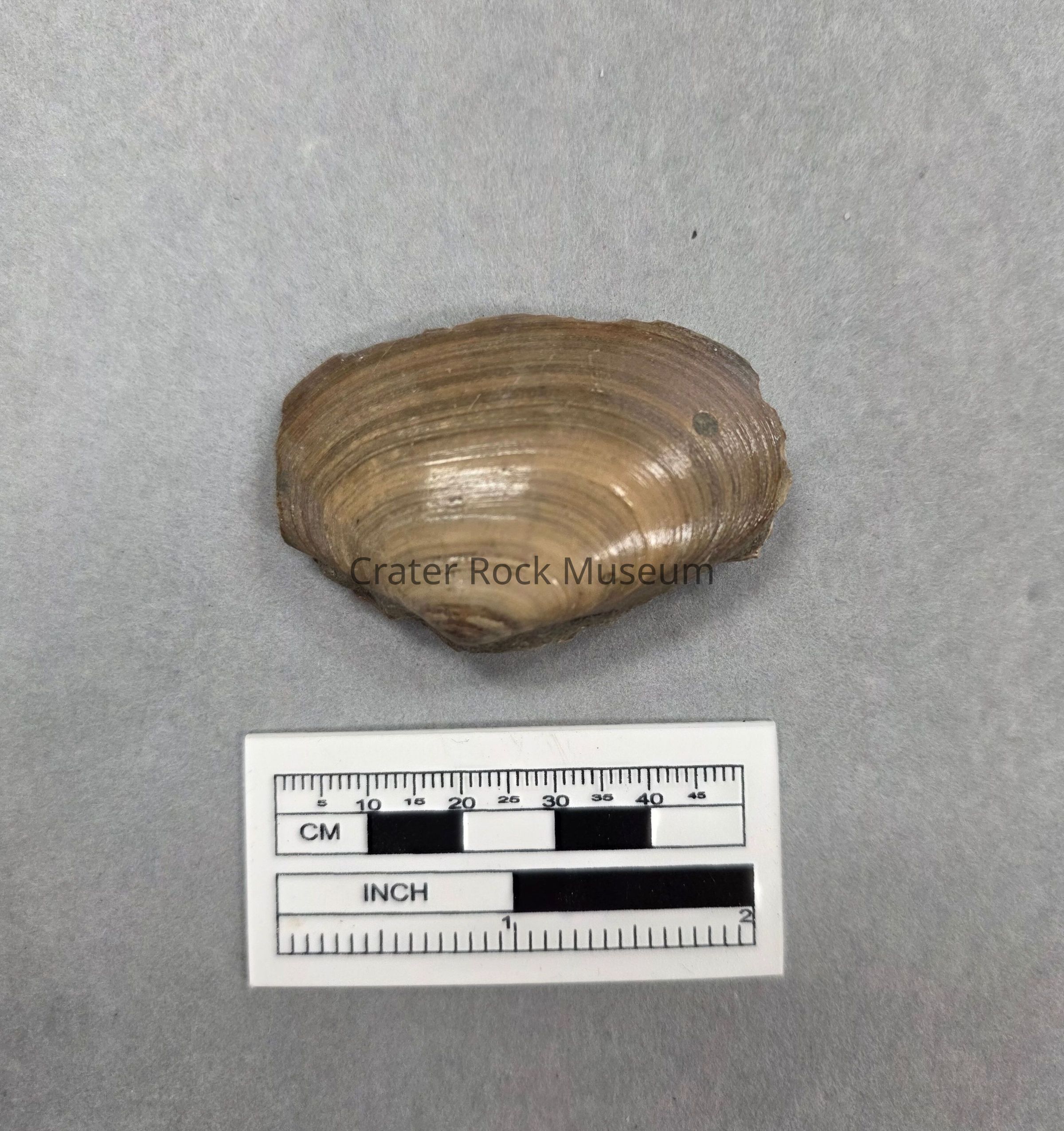2 1/8" x 1 3/8" , 2 dark tan bi-valve shells with dark grey fill & part concretion, from Charleston, OR.Location