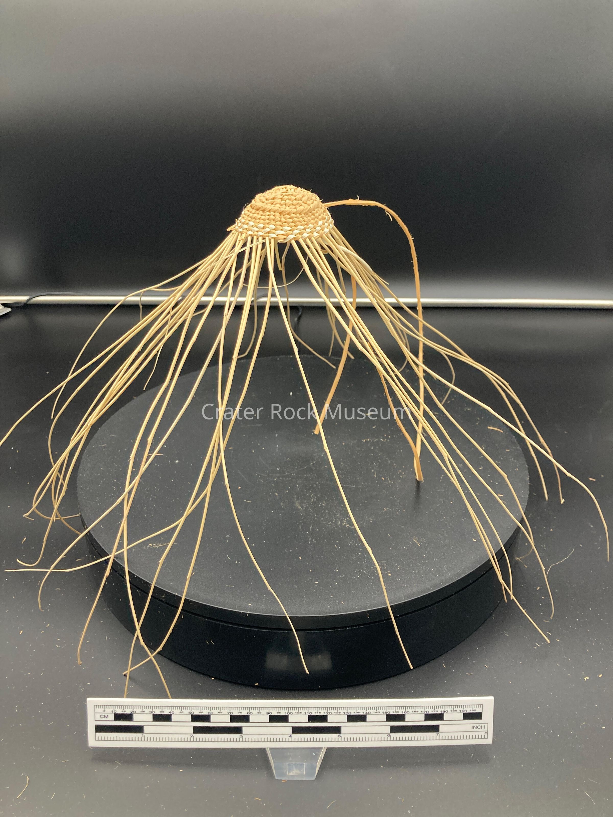 The base of a woven basket, or perhaps the start of a lid, shown in partial completion to demonstration weaving processes.Location