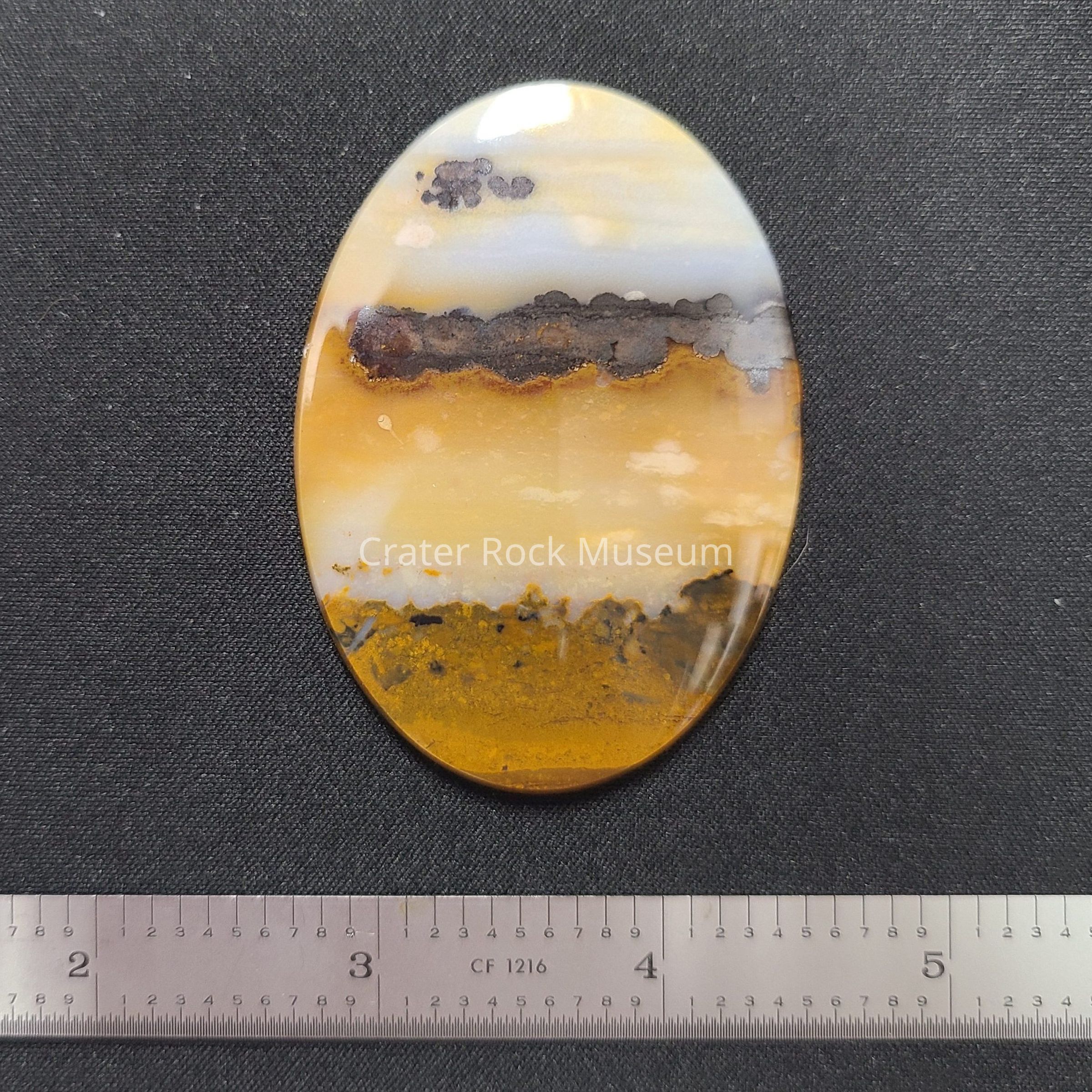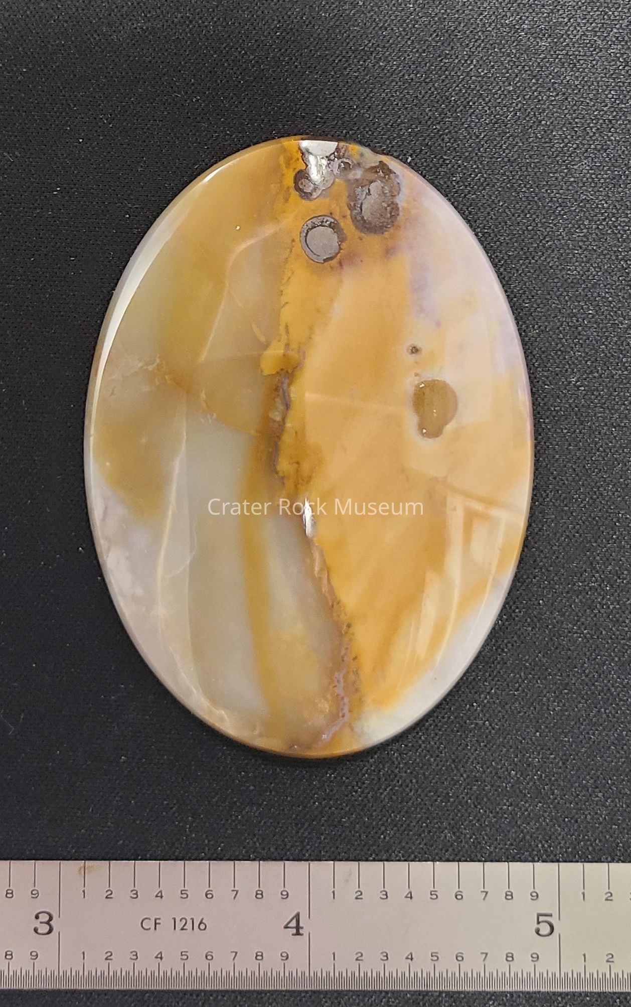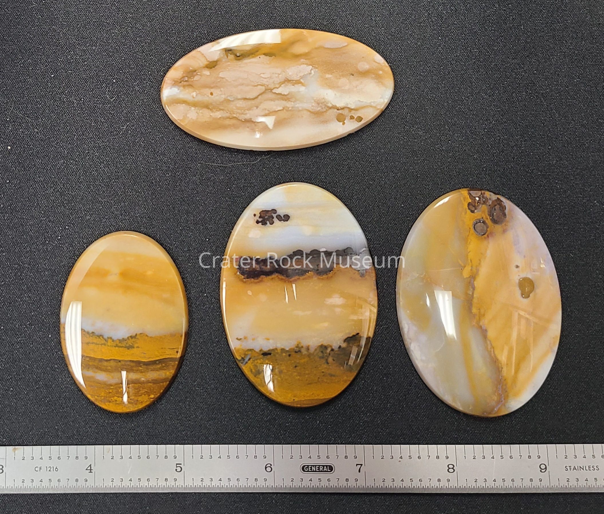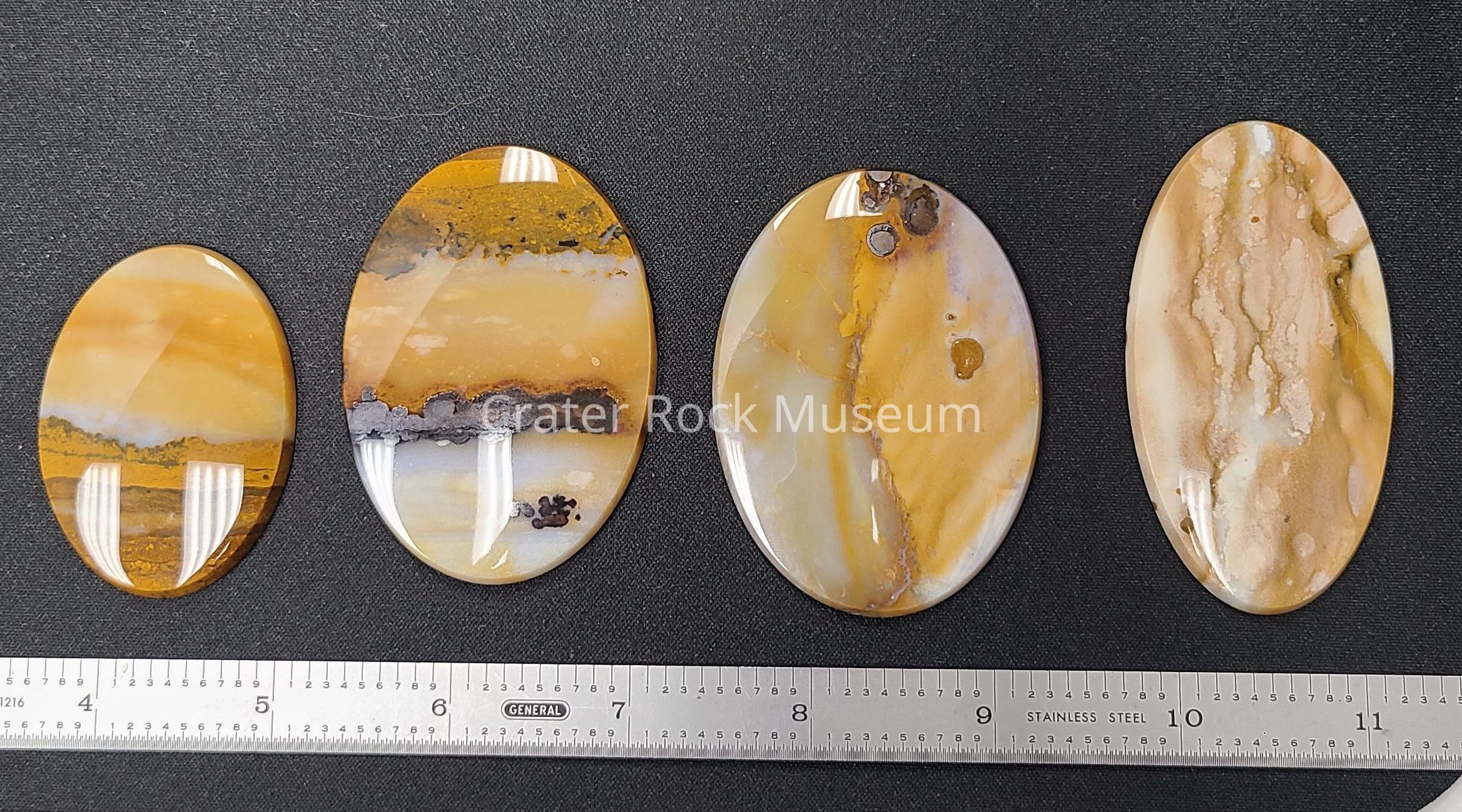4 sandy orange with dark brown polka dots cabochons, all oval shaped with three being jagate and one jasperLocation