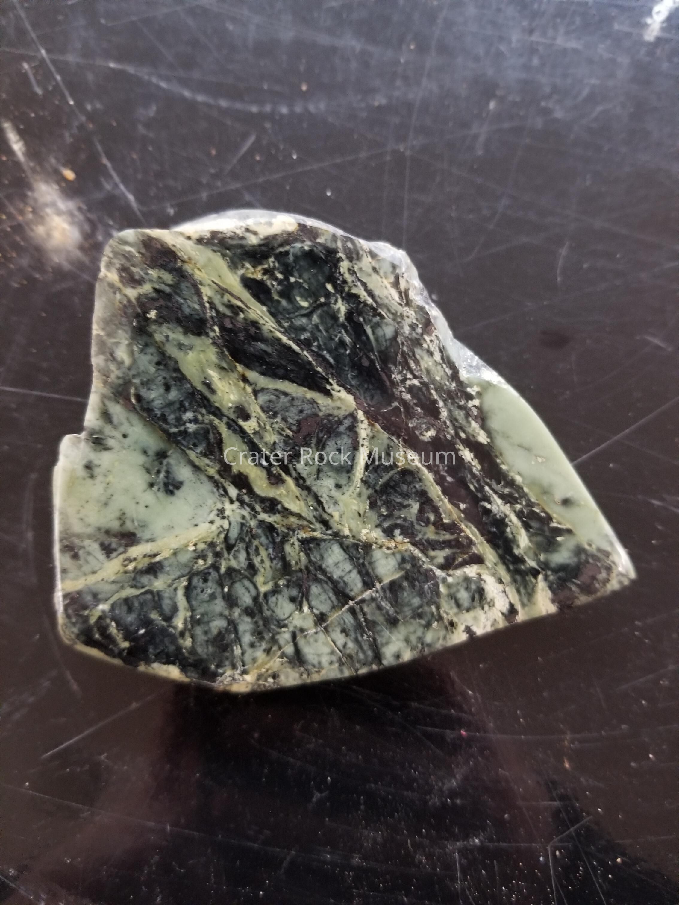 Applegate Jade (Serpentine). Halved and polished in RAGMS Workshop by Gary Yeoman