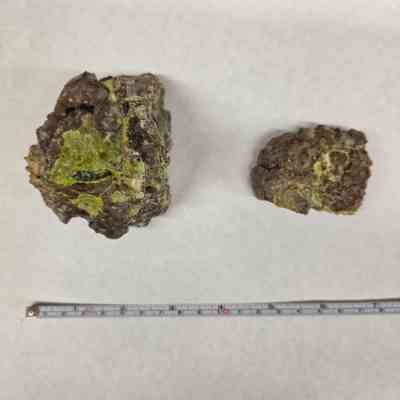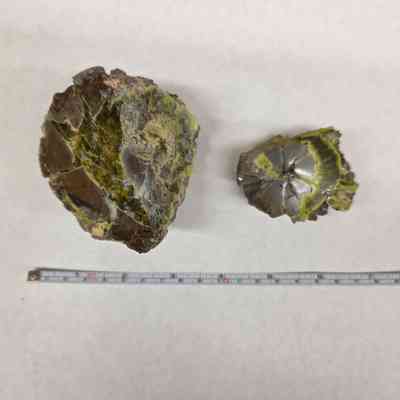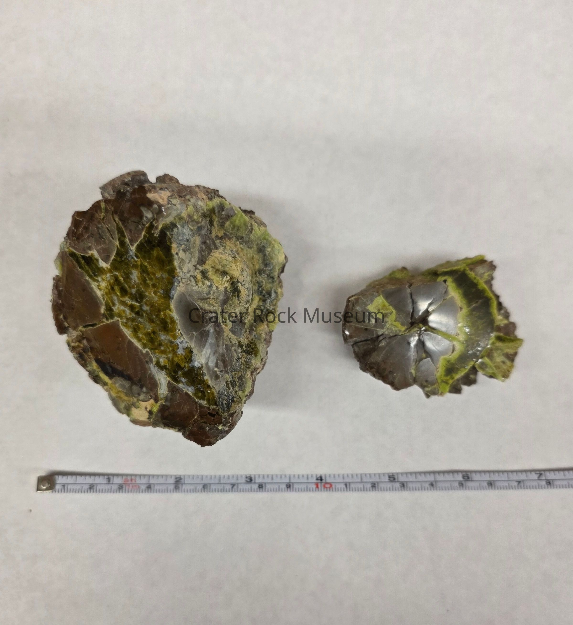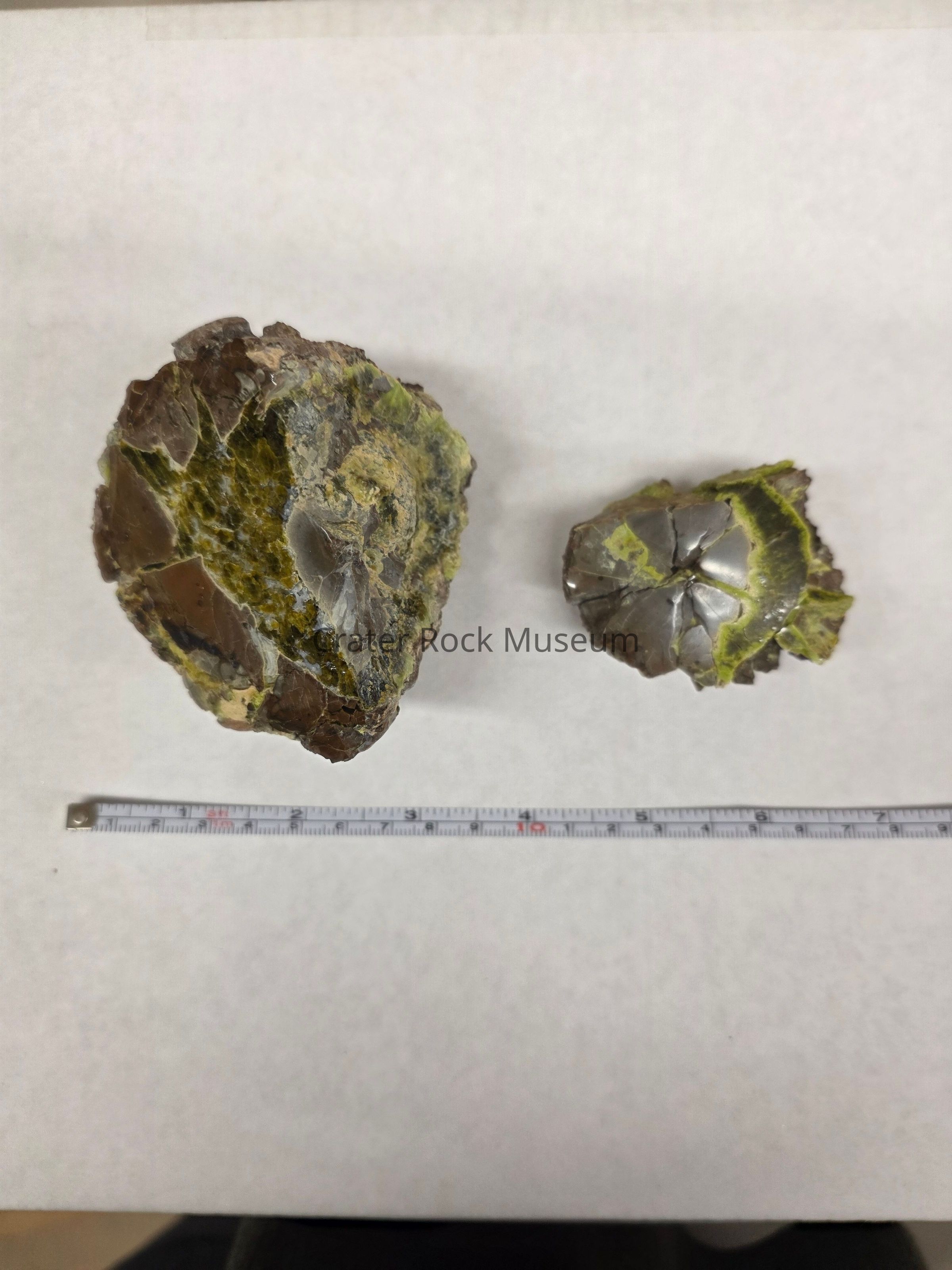 B] Smaller nodule, ringed with green along the outer edge of the polished side- brittle exteriorLocation