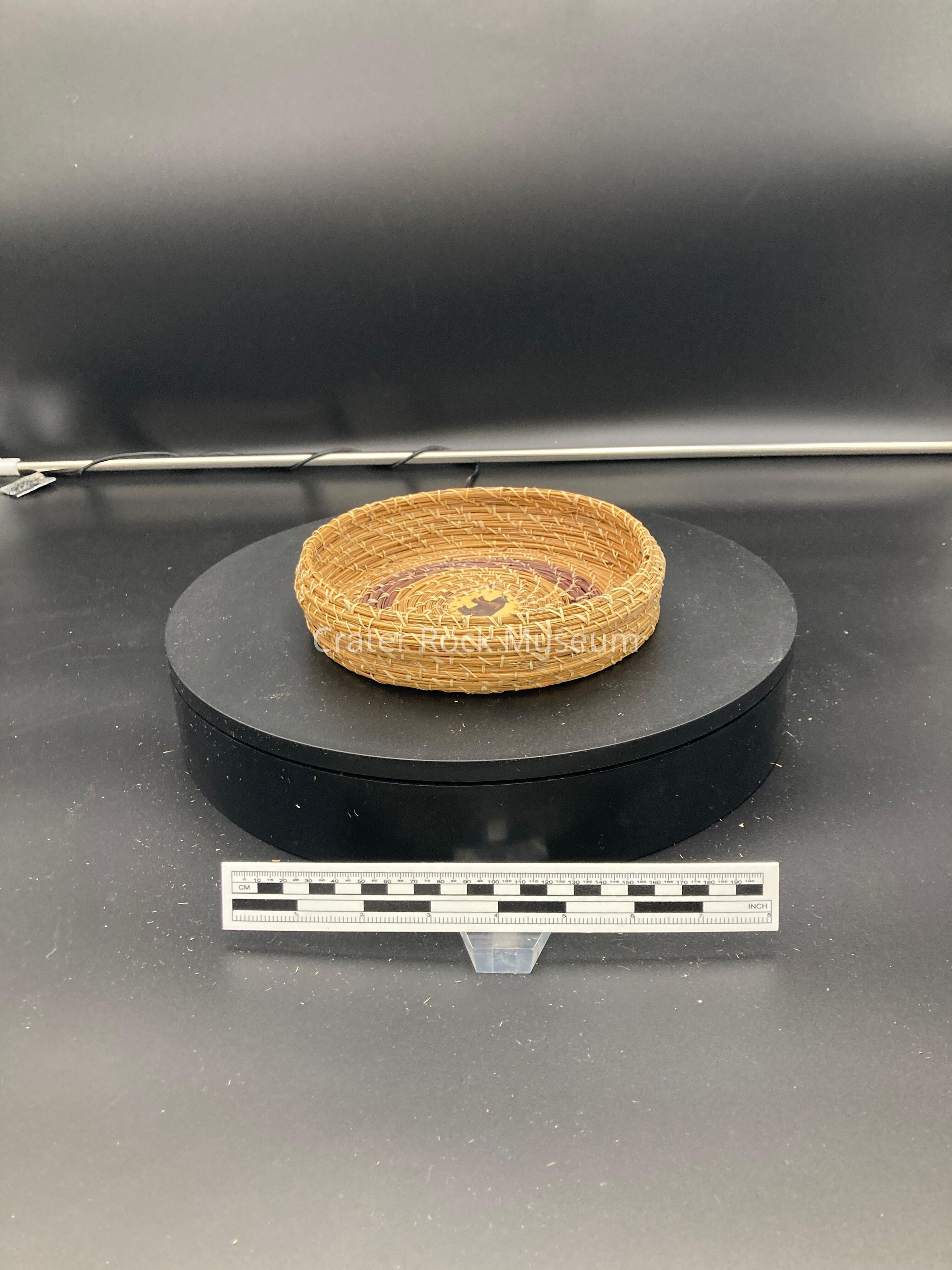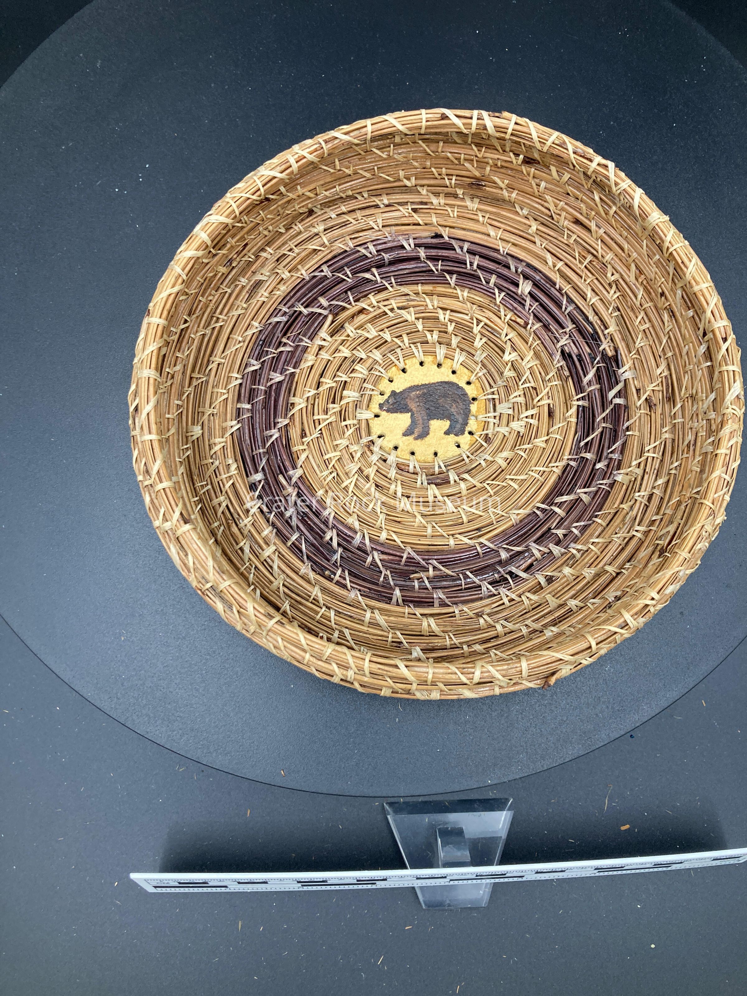 Basket with bear motif. Woven by Jean Childers, wife of Tom Childers. Unclear if the Childers were of Indigenous ancestry.Collection