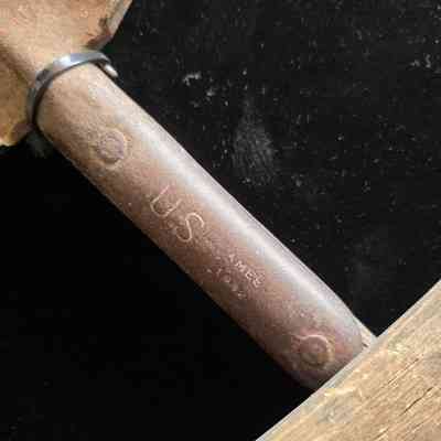 Further information relating to wear & damage on the reverse side will have to be done when the object is removed but the visible engraving above the shovel head is enough to give a date/manufacturing information.Location