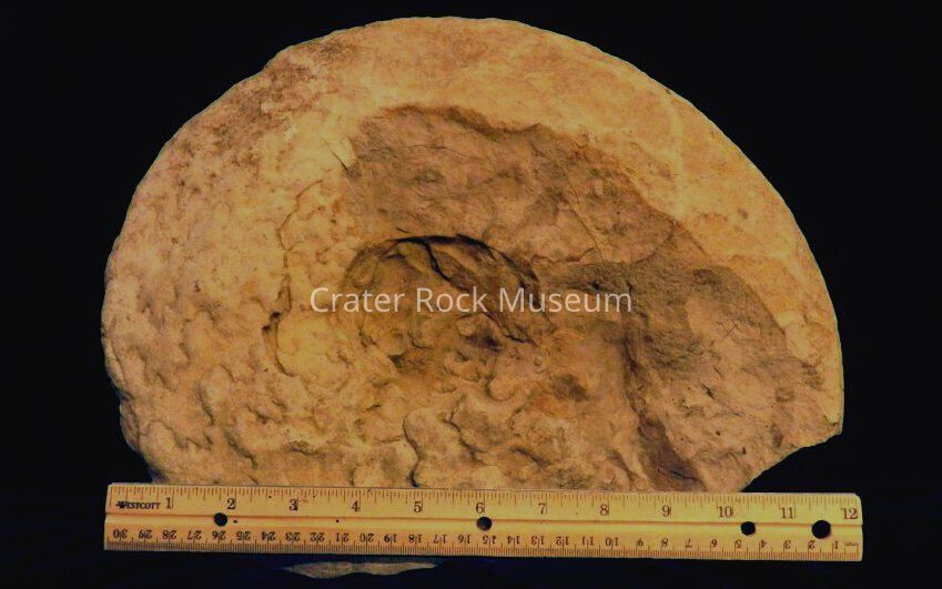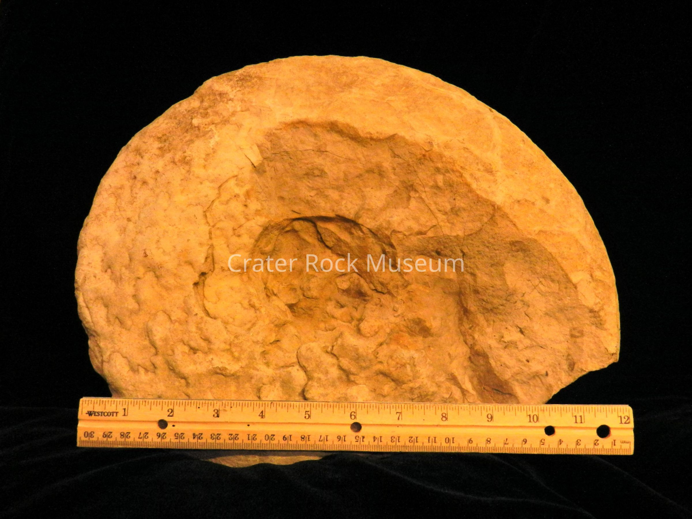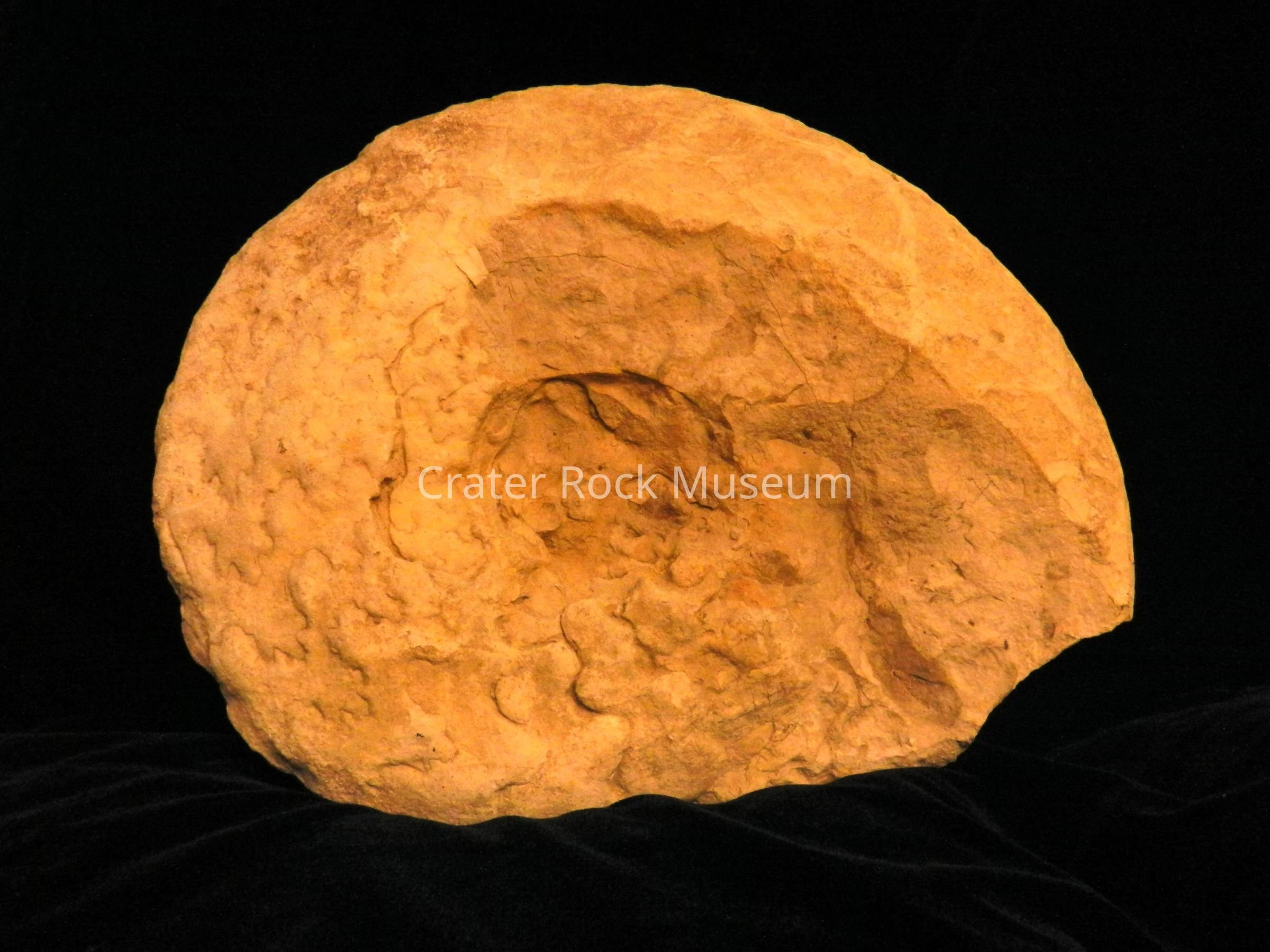 Description: One cast of an ammonite. Showing complex septum surface and external ridges. Color is light beige to pale green.Collection