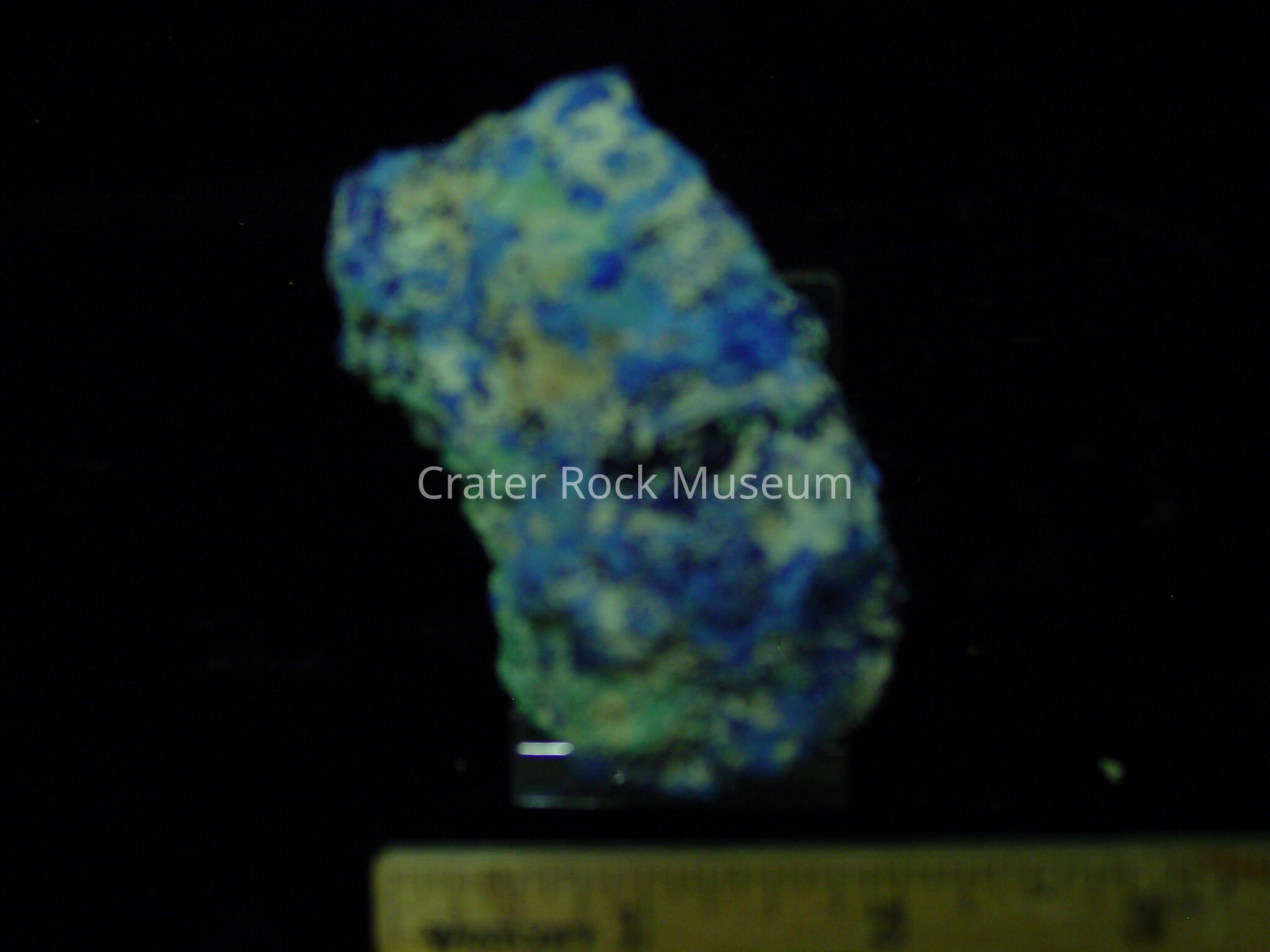 Variety: While not a major ore of copper itself, azurite is a good surface indicator of the presence of weathered copper sulfide ores. It is usually found in association with the chemically very similar malachite, producing a striking color combination of deep blue and bright green that is strongly indicative of the presence of copper ores.