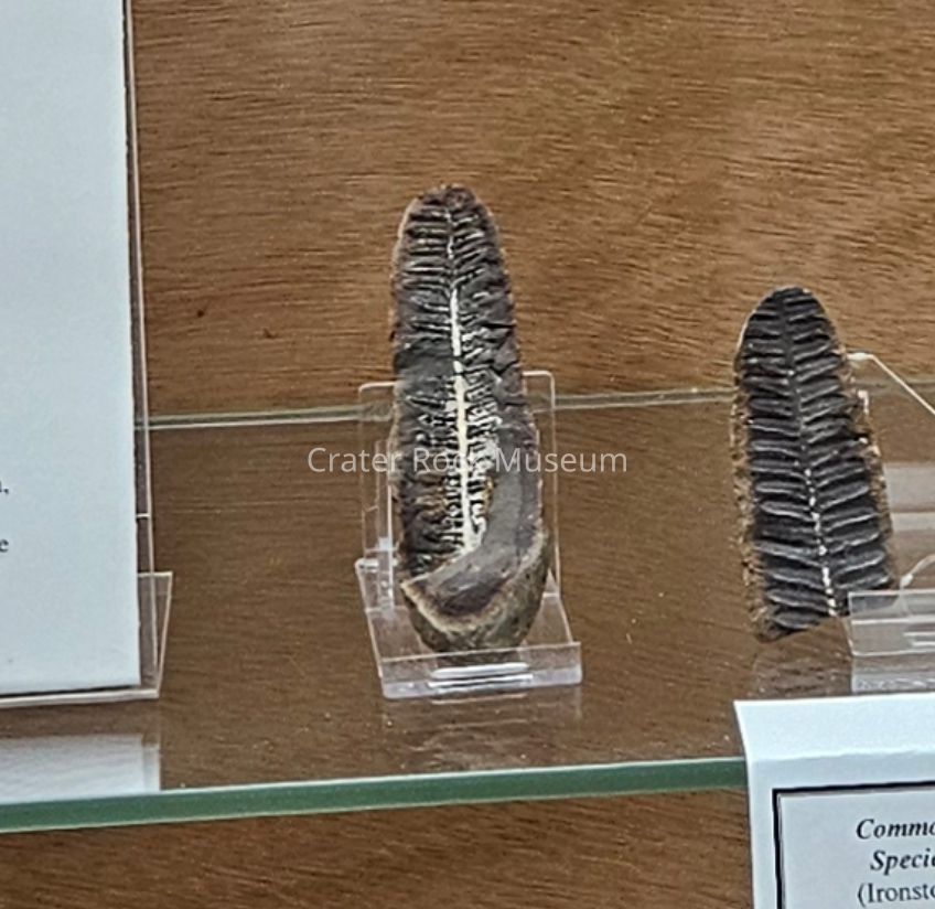 Description: Fern in ironstone concretion (2) halves, shows mold and cast of fern, from a coal deposit in Mason Co. IL.