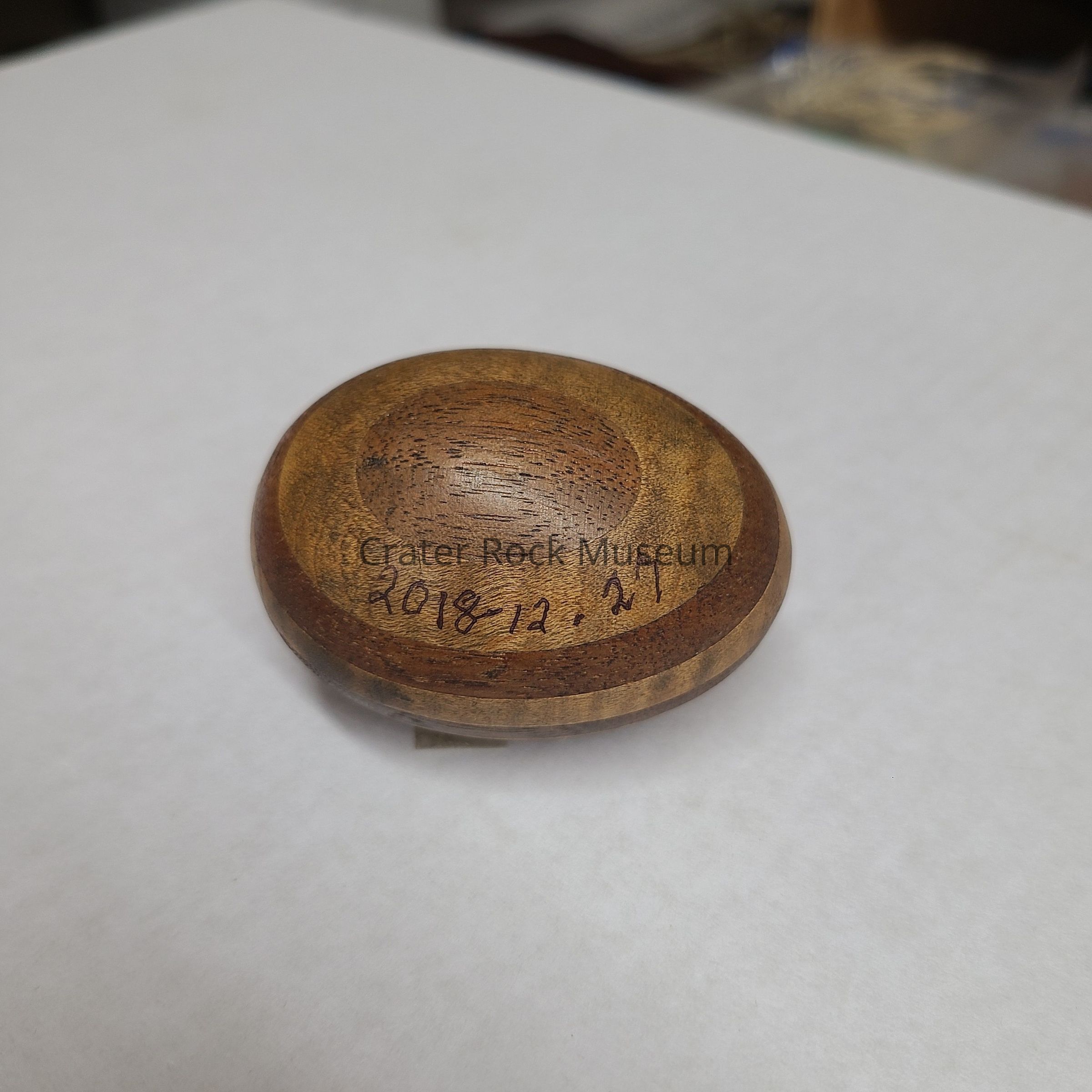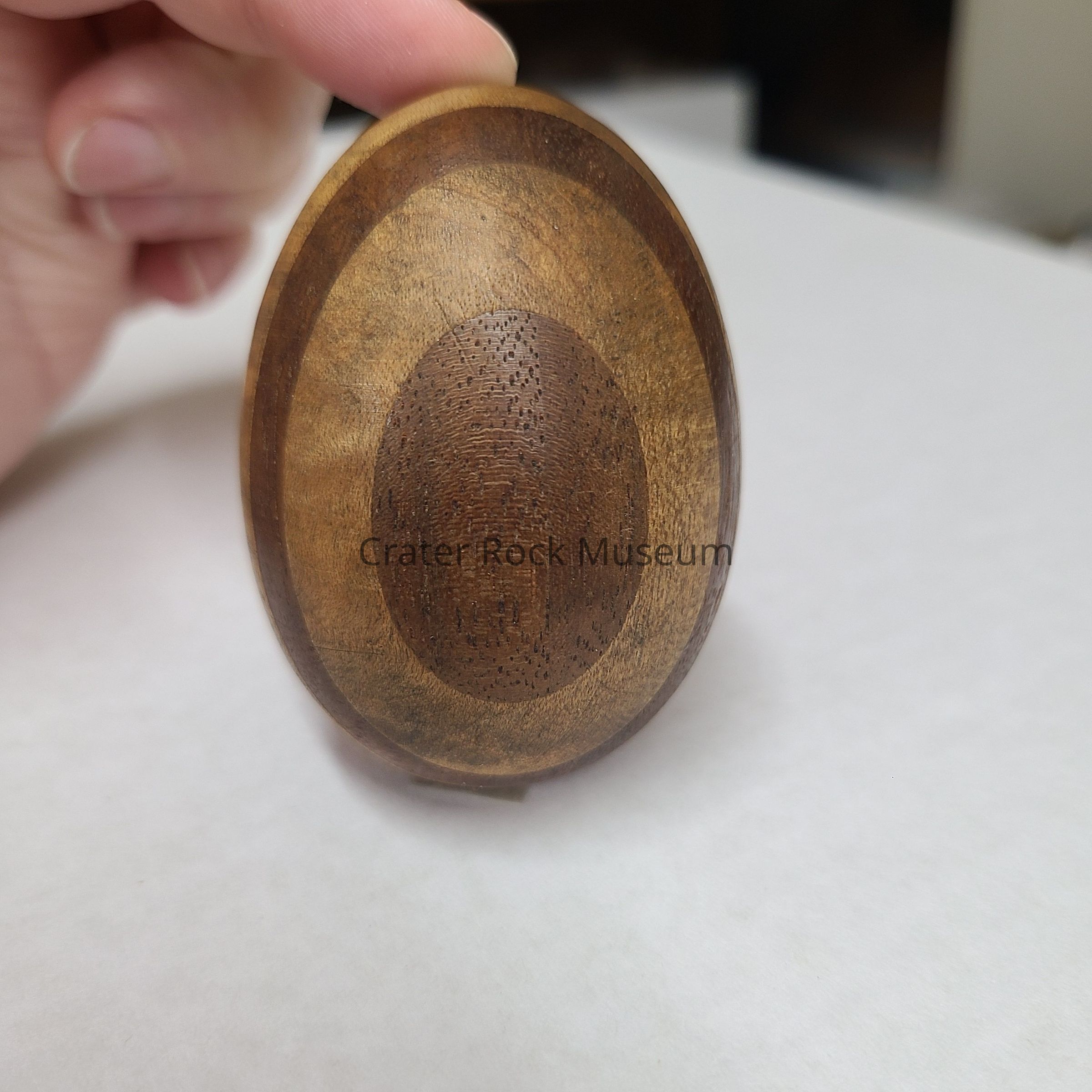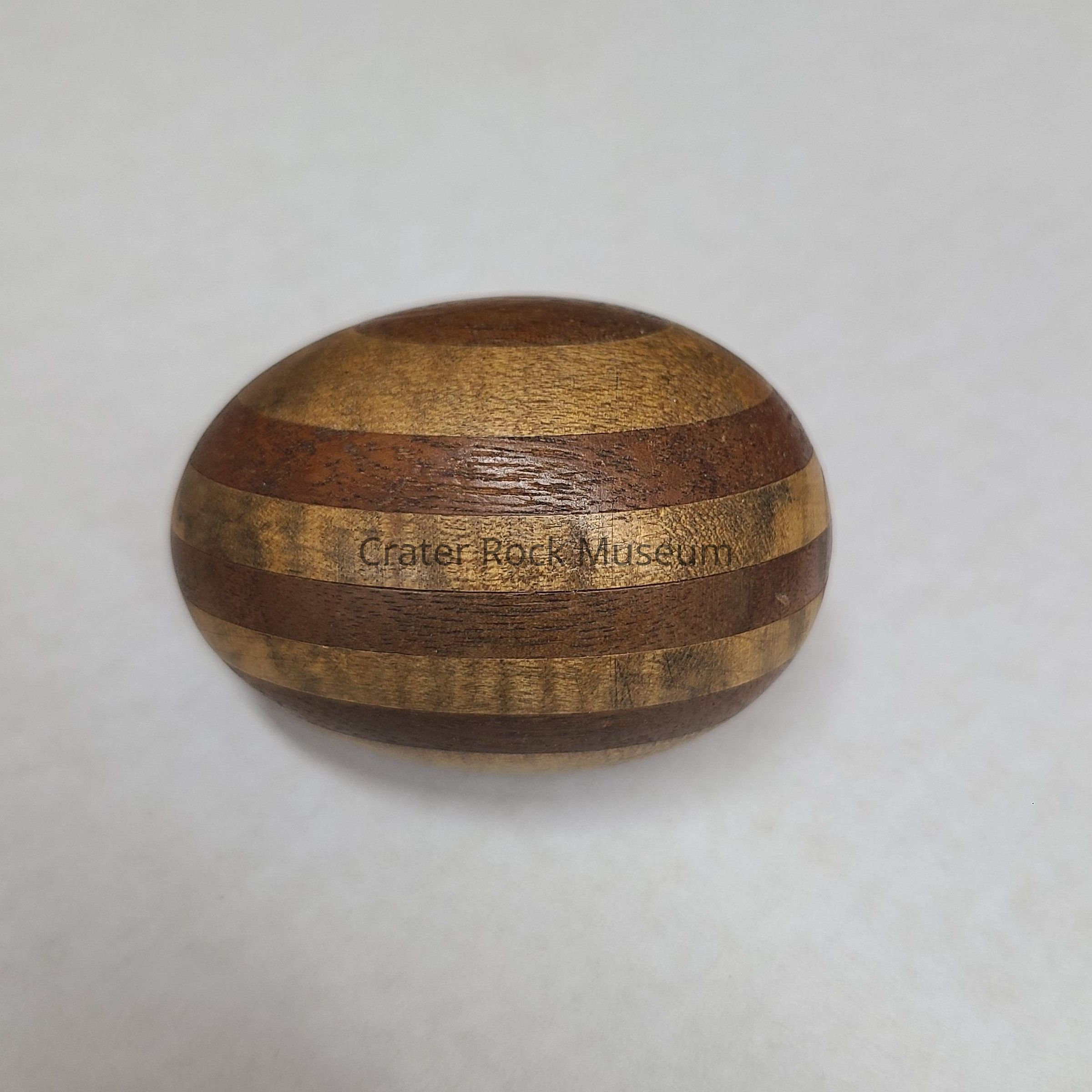 Approx. 3" carved egg with alternating bands of light and dark woodLocation