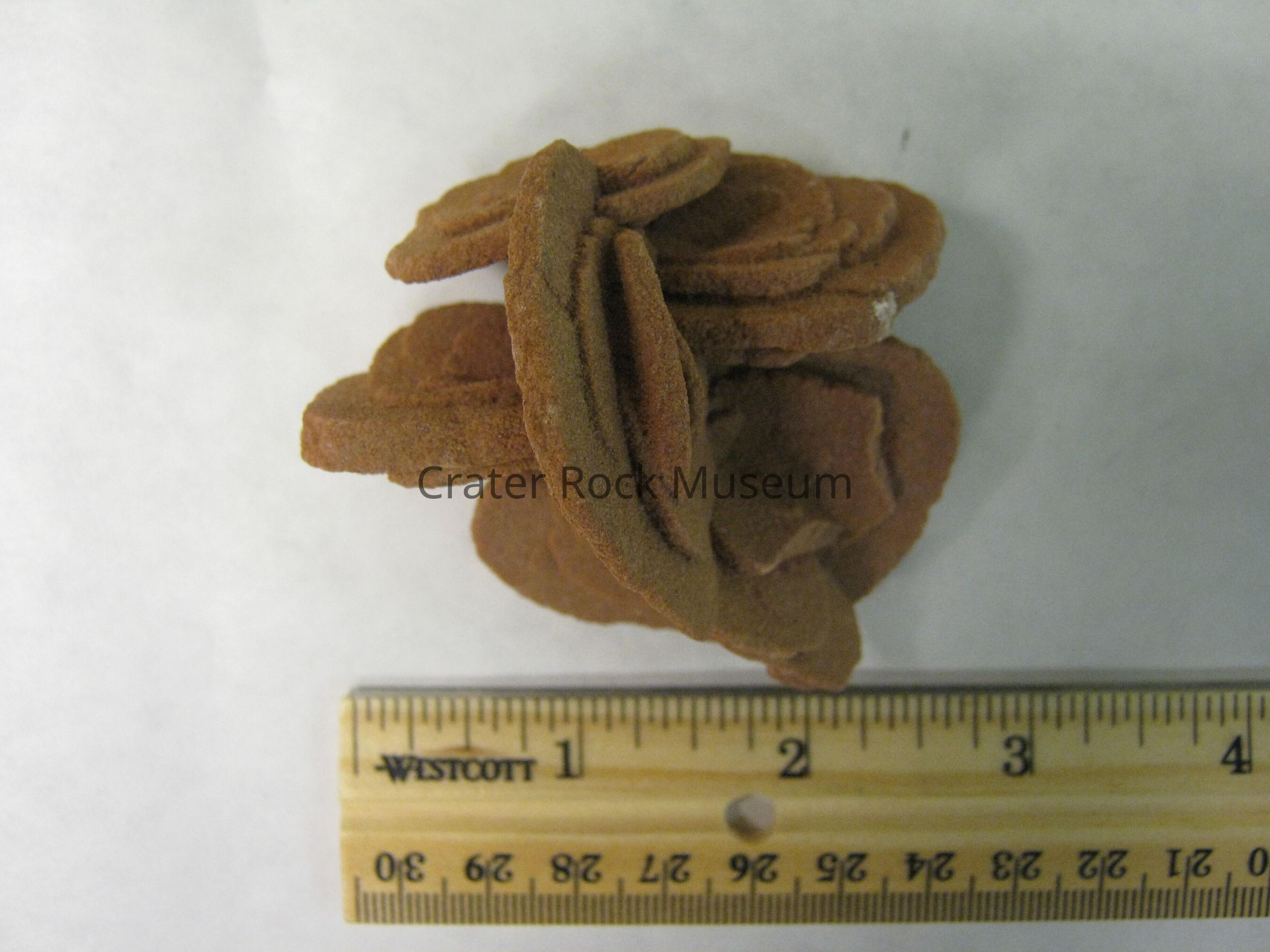 Variety: Barite is a common mineral and makes very attractive specimens. It often is an accessory mineral to other minerals and can make a nice backdrop to brightly colored crystals. At times bladed or tabular crystals of Barite form a concentric pattern of increasingly larger crystals outward. This has the appearance of a flower and when colored red by iron stains, these formations are called "Desert Roses". Because Barite is so common, it can be confused for other minerals. Celestite (SrSO4) has the same structure as barite and forms very similar crystals. The two are indistinguishable by ordinary methods, but a flame test can distinguish them.Collection