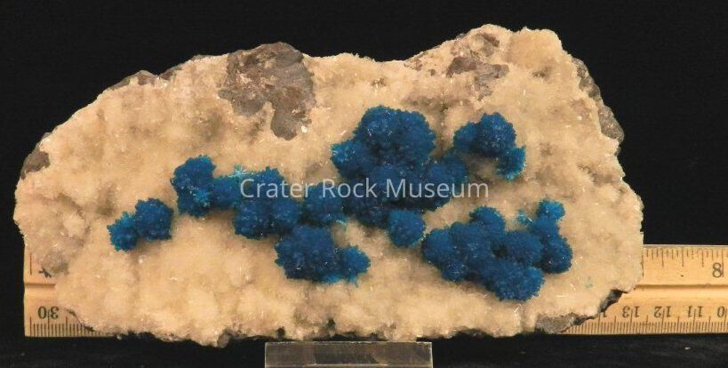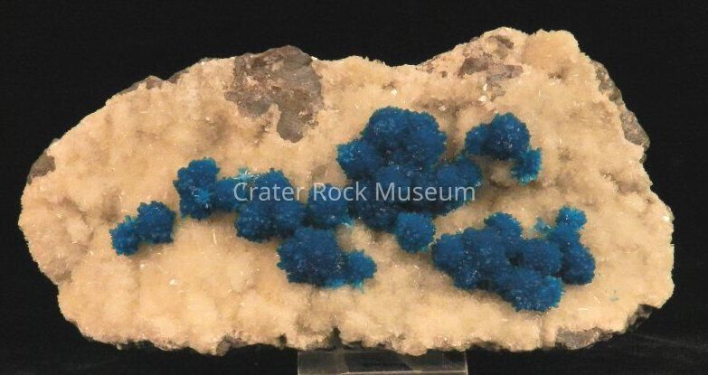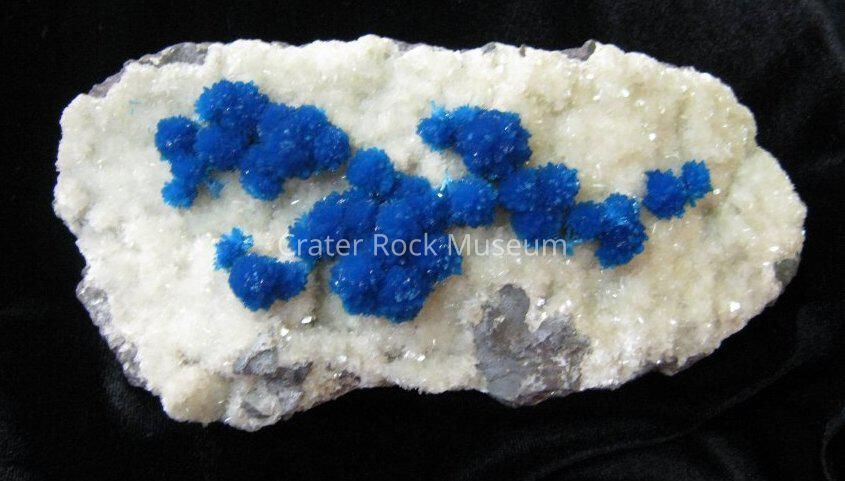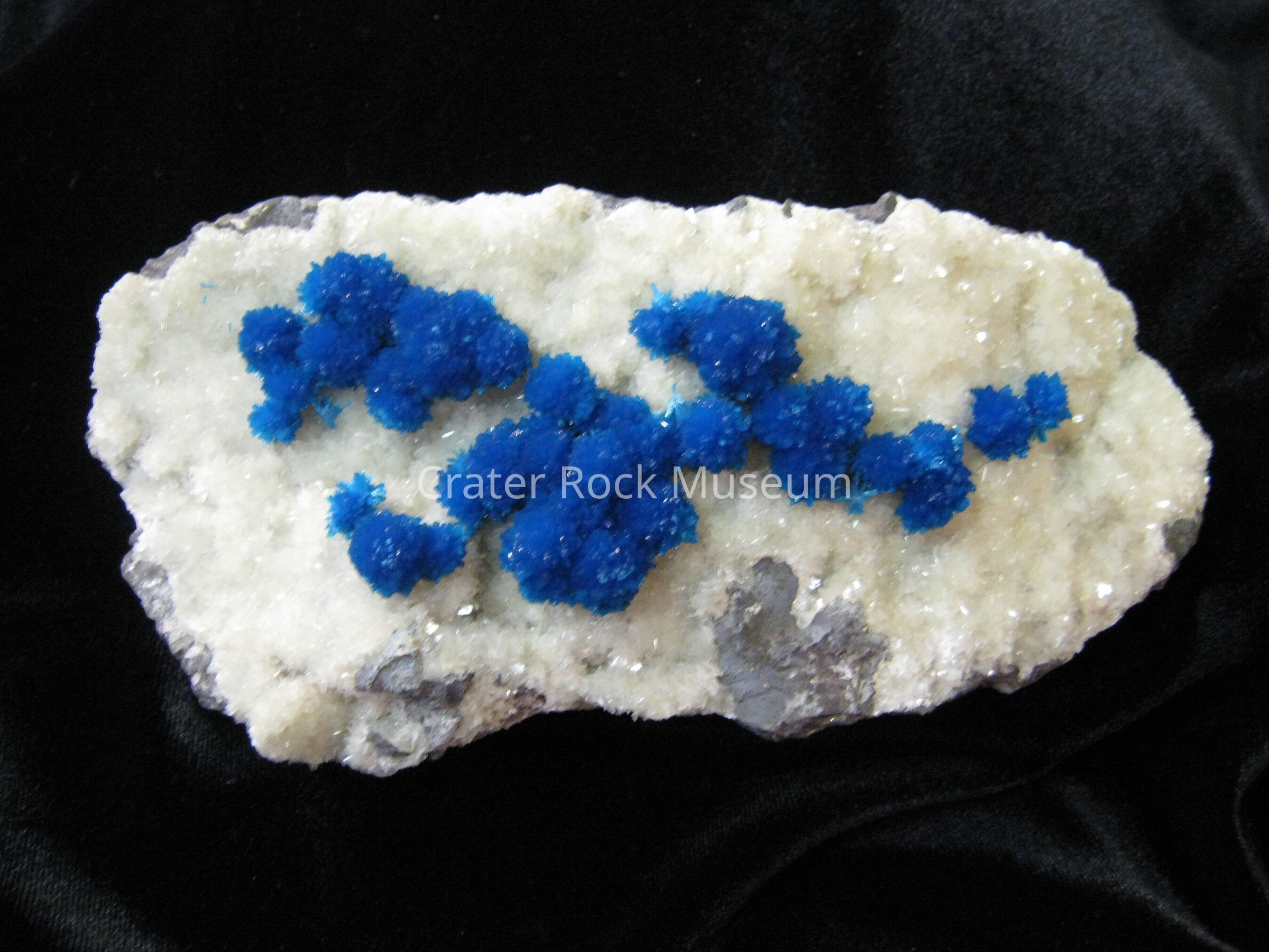 Description: Bluish teal with white fuzzy crystals around them.