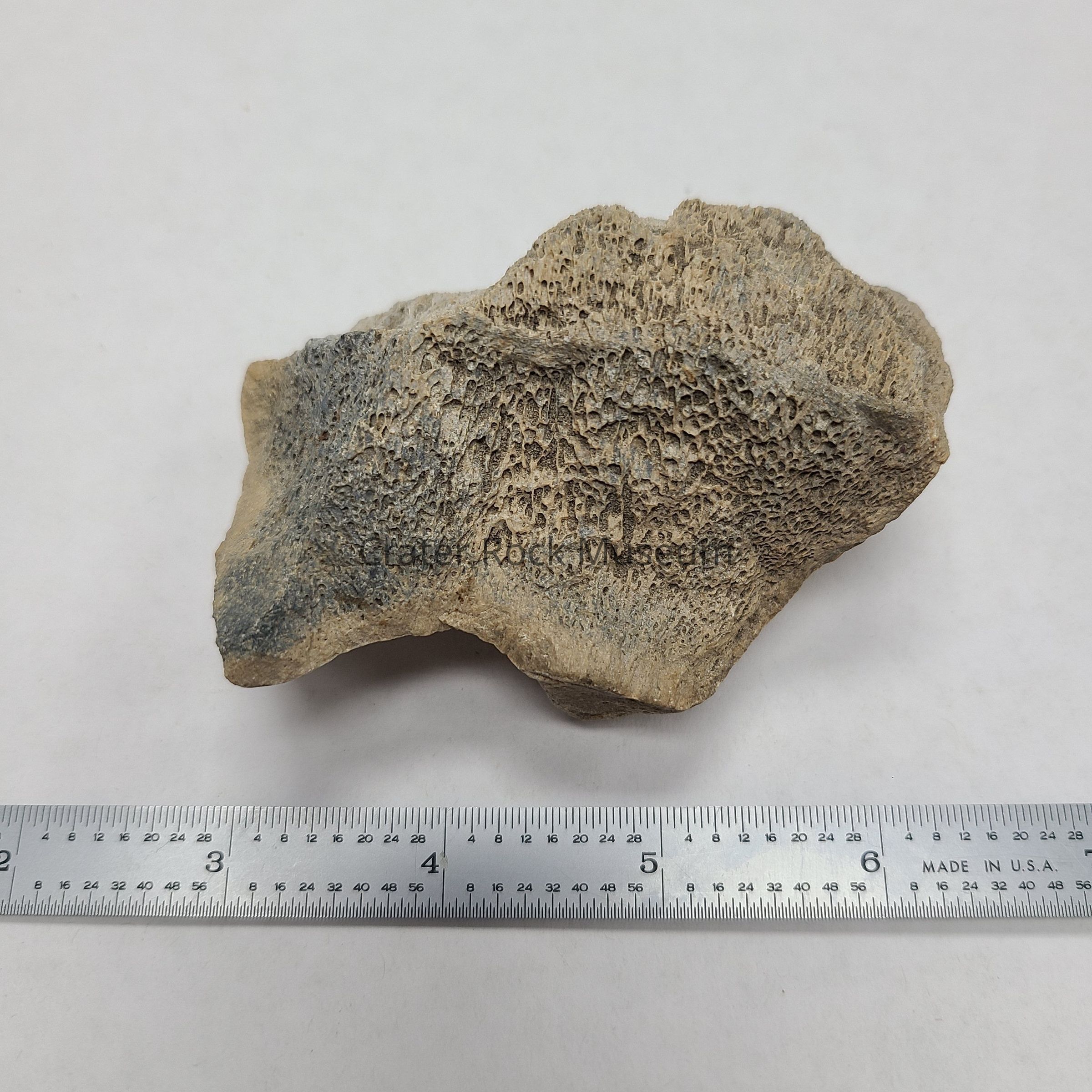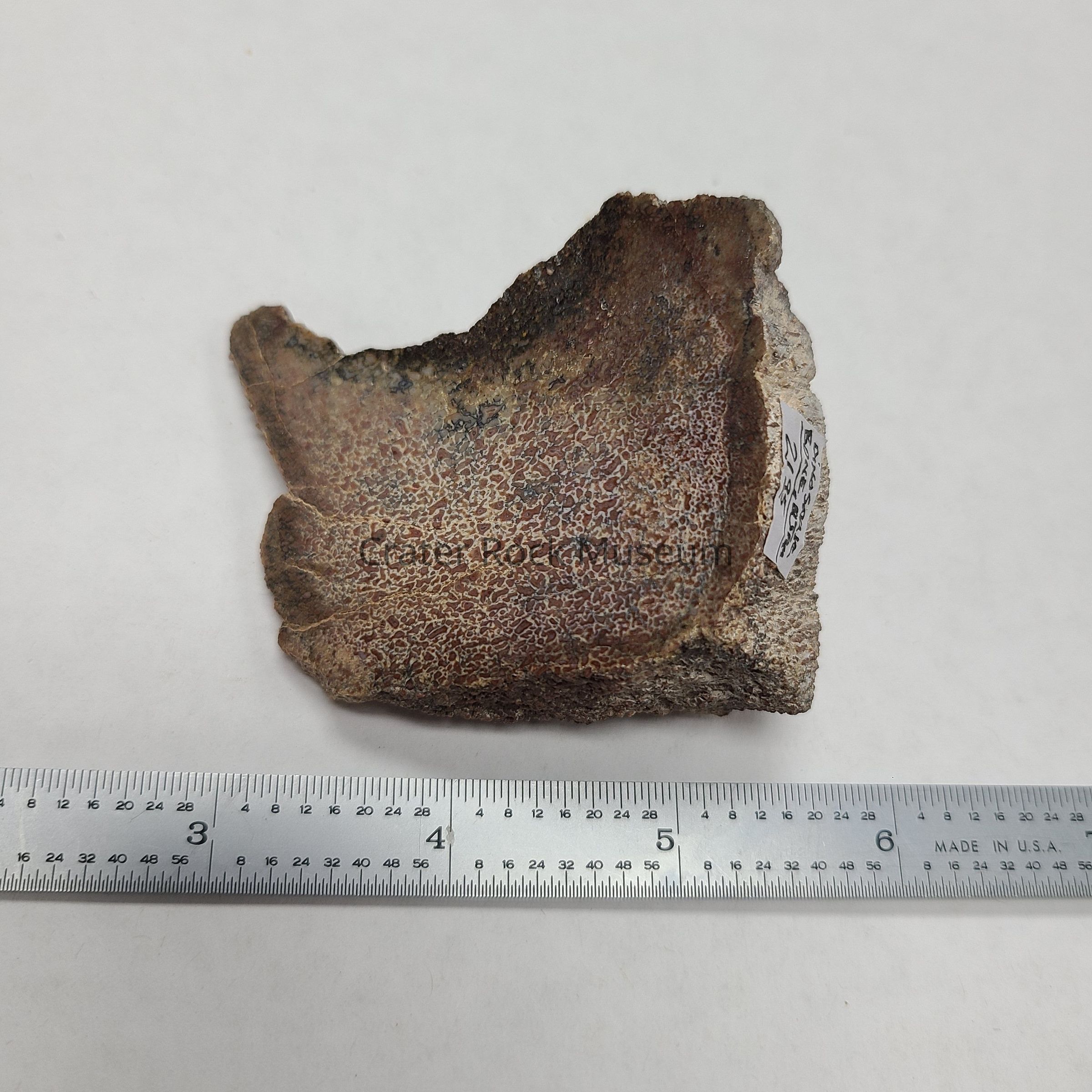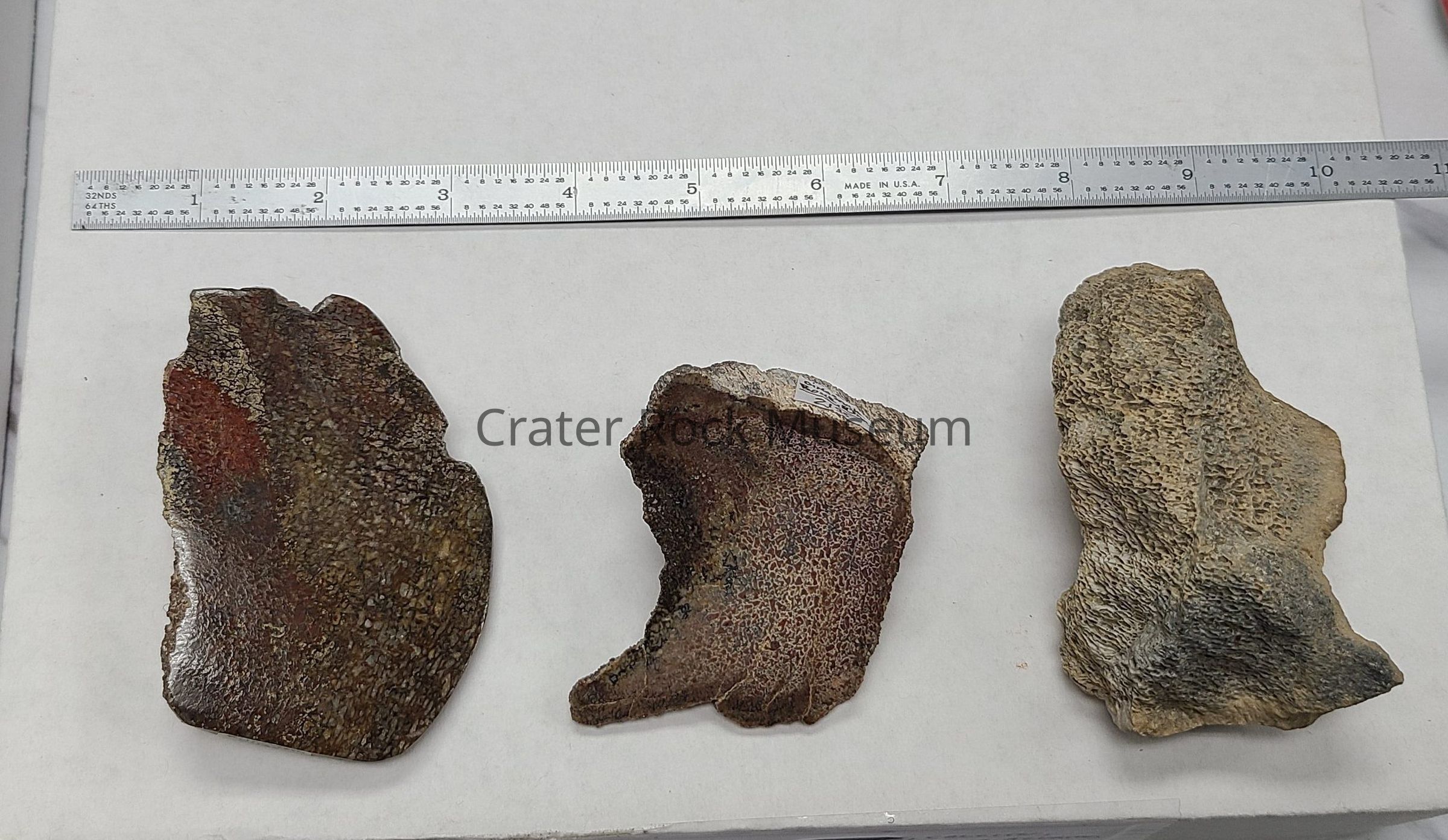 Three partial dinosaur bones, two [A & B] with Utah localities and a single polished face, the third [C] unalteredLocation