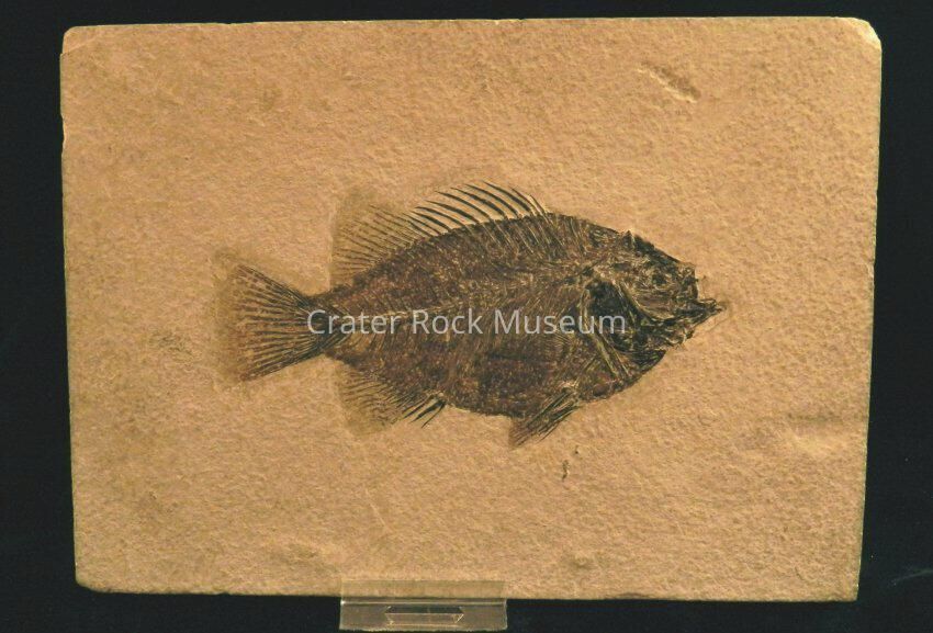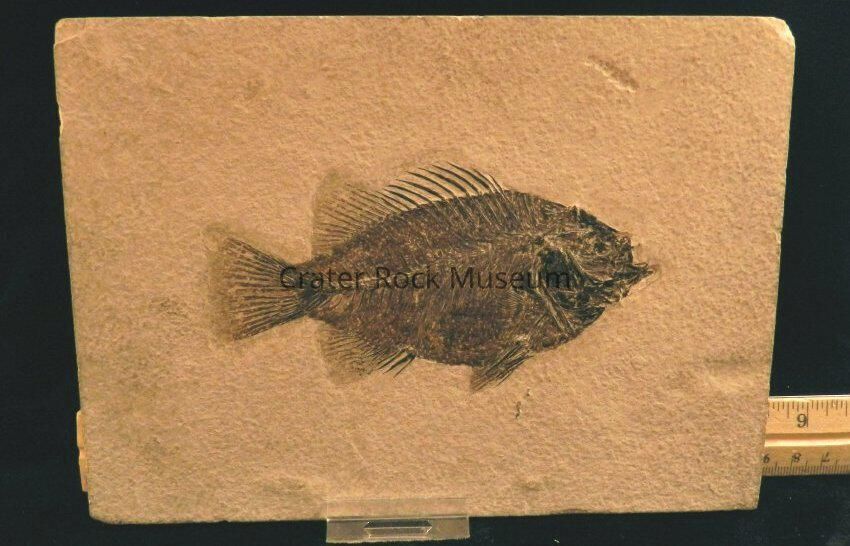 Very similar to today's perch, the Mioplosus is distinguished by its double dorsal fin and pointed teeth. It is thought to have been a solitary predator often attacking fish up to half of its own size. Mioplosus range from 2 to 20 inches but anything over 16 inches is very rare.This 50 million year old, Eocene-Era fossil fish comes from one of the world's famous Laggerstatten, the Green River Formation in Wyoming. A small portion of the fish fossils from Green River exhibits such fine preservation.Mioplosus labracoides is believed to have been a voracious predator among the Green River fish fossils. Failure to find its numbers in mass mortality leads to further conjecture that it was a solitary hunter. A member of the Family Percidae, it has numerous relatives in Northern Hemisphere fresh water as well as fossil relatives in Asia, Europe and New Zealand. It is known as a predatory species as determined from its many pointed teeth, and the fact that several have been found with fish lodged in its throat. It may be related to the modern-day pike of the genus Stezostedion.Distinguishing features include double dorsal fins and a fan-like tail. Mioplosus is uncommon in the Green River formation, especially the fish of this size.