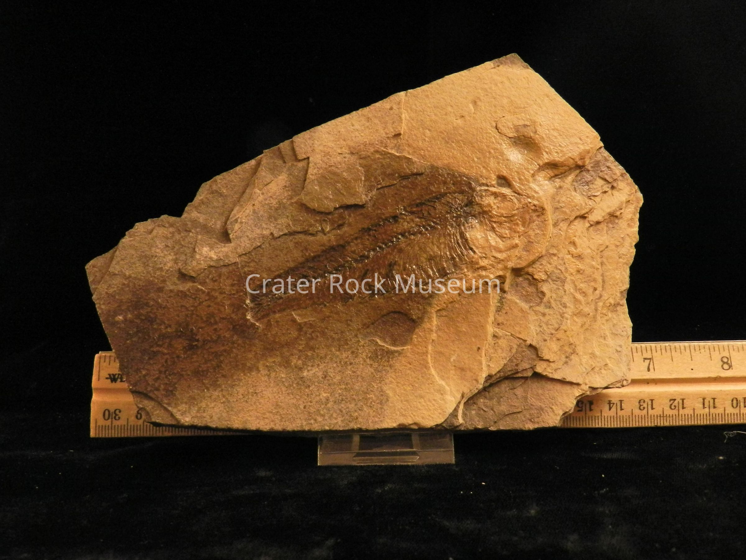 Knightia was a slender fish and seems to have been a secondary consumer, feeding mainly on ostracods, algal forms and diatoms, as well as some smaller fish. They were schooling fish, and because of this they are frequently found together in mass mortality layers. The tendency for individual fishes to cluster in groups was probably quite common. Modern forms of small fish are noted for schooling, and it is highly probable that the ancient types associated similarly. Knightias are often found in rock shops.Knightia were abundant and important because they were included in the diets of most of the Green River Formation's larger fishes. They were double scuted, having rows of dorsal and ventral scutes running from the posterior end of the head back to the median fins.Knightia is the state fossil of the state of Wyoming.