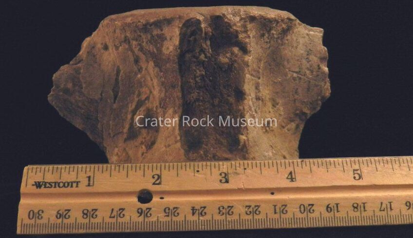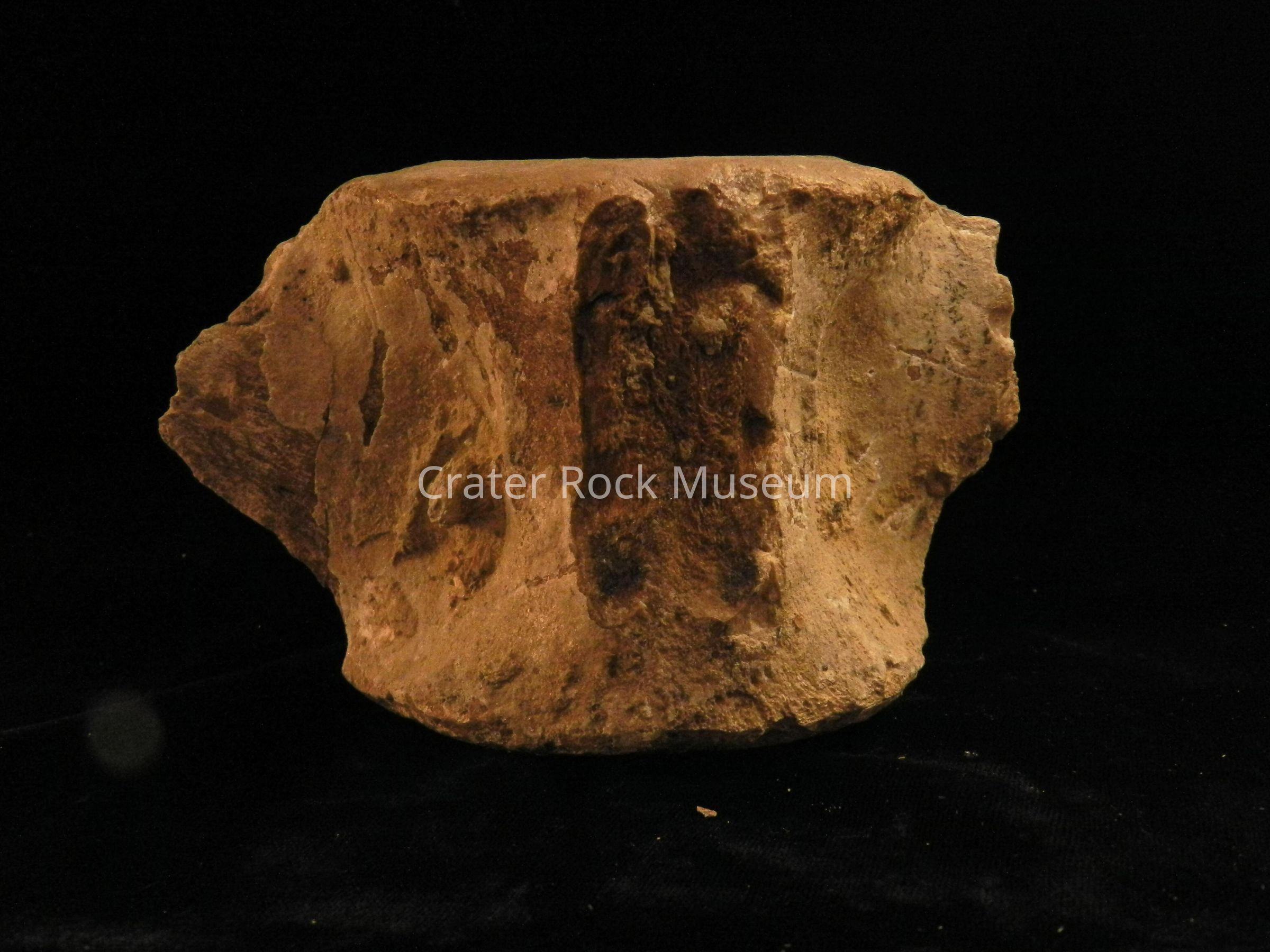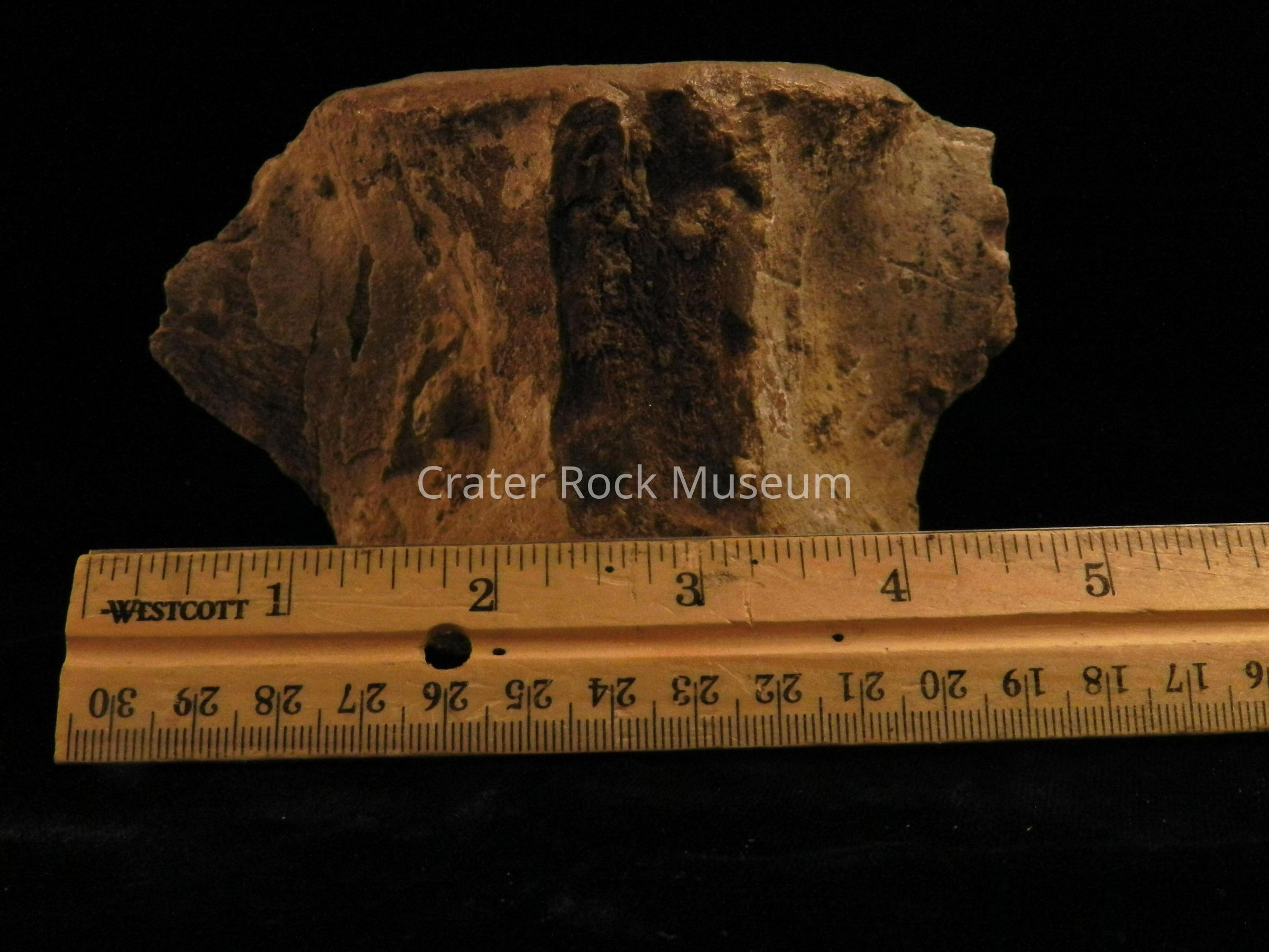 Description: A smaller vertebre (perhaps the tail) from an unknown species of whale. Color is reddish-brown to gray with flat top and bottom.