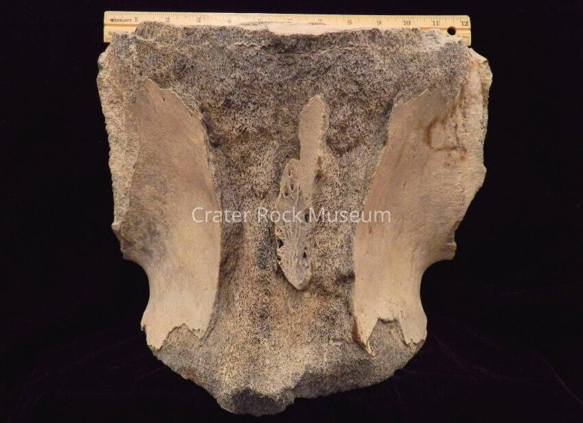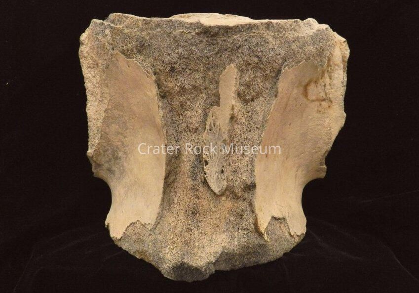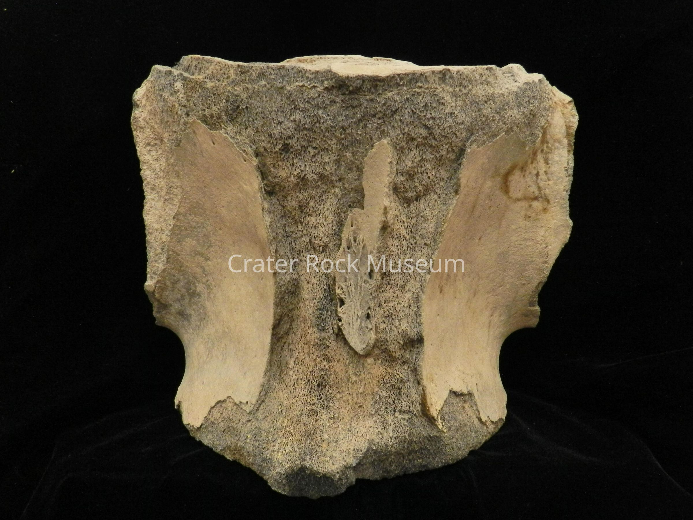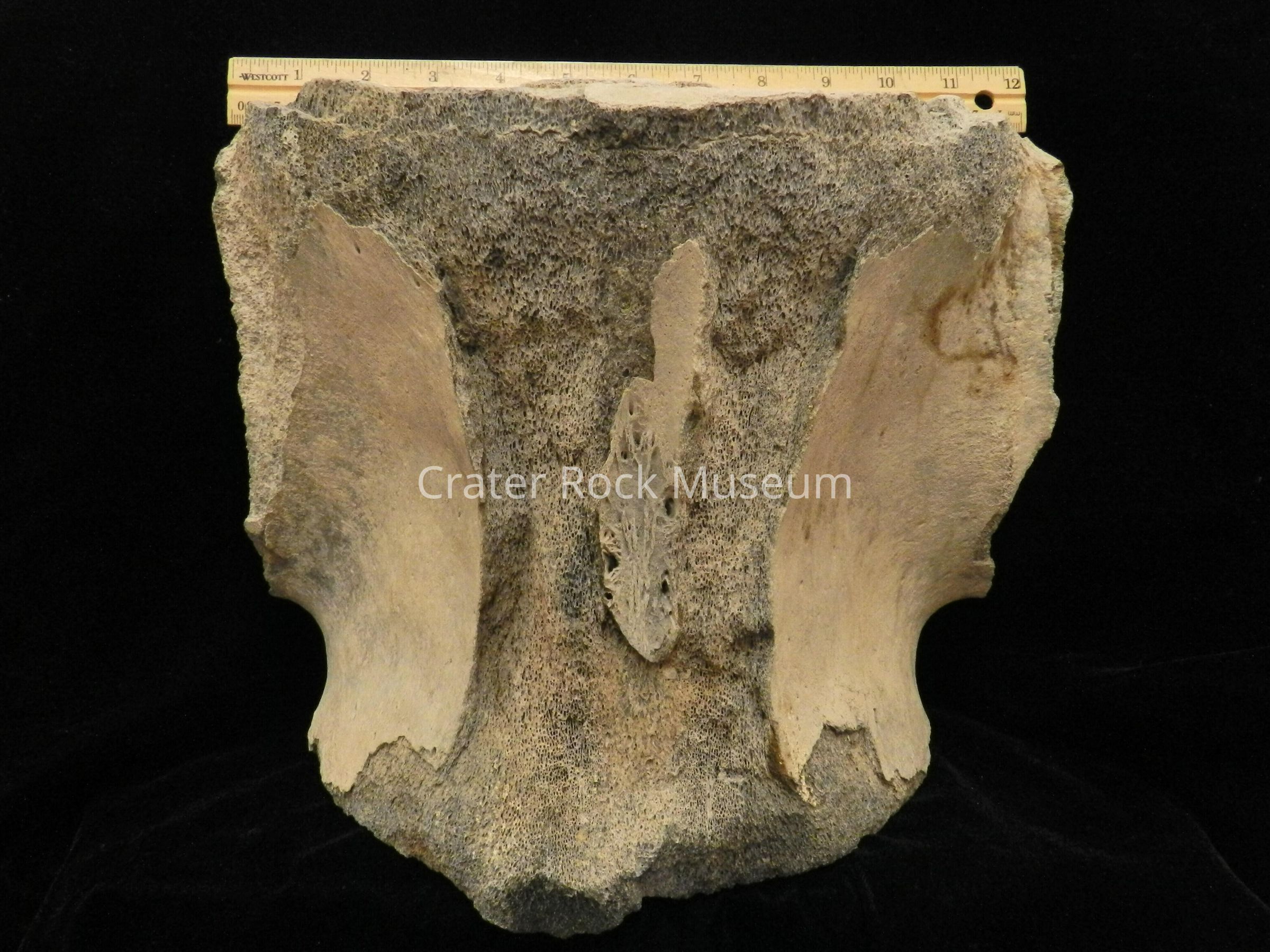 Description: Very large whale vertebre. Some outer scaling still present at narrow center. (White-gray). Remainder is porus and worn. (dark gray).