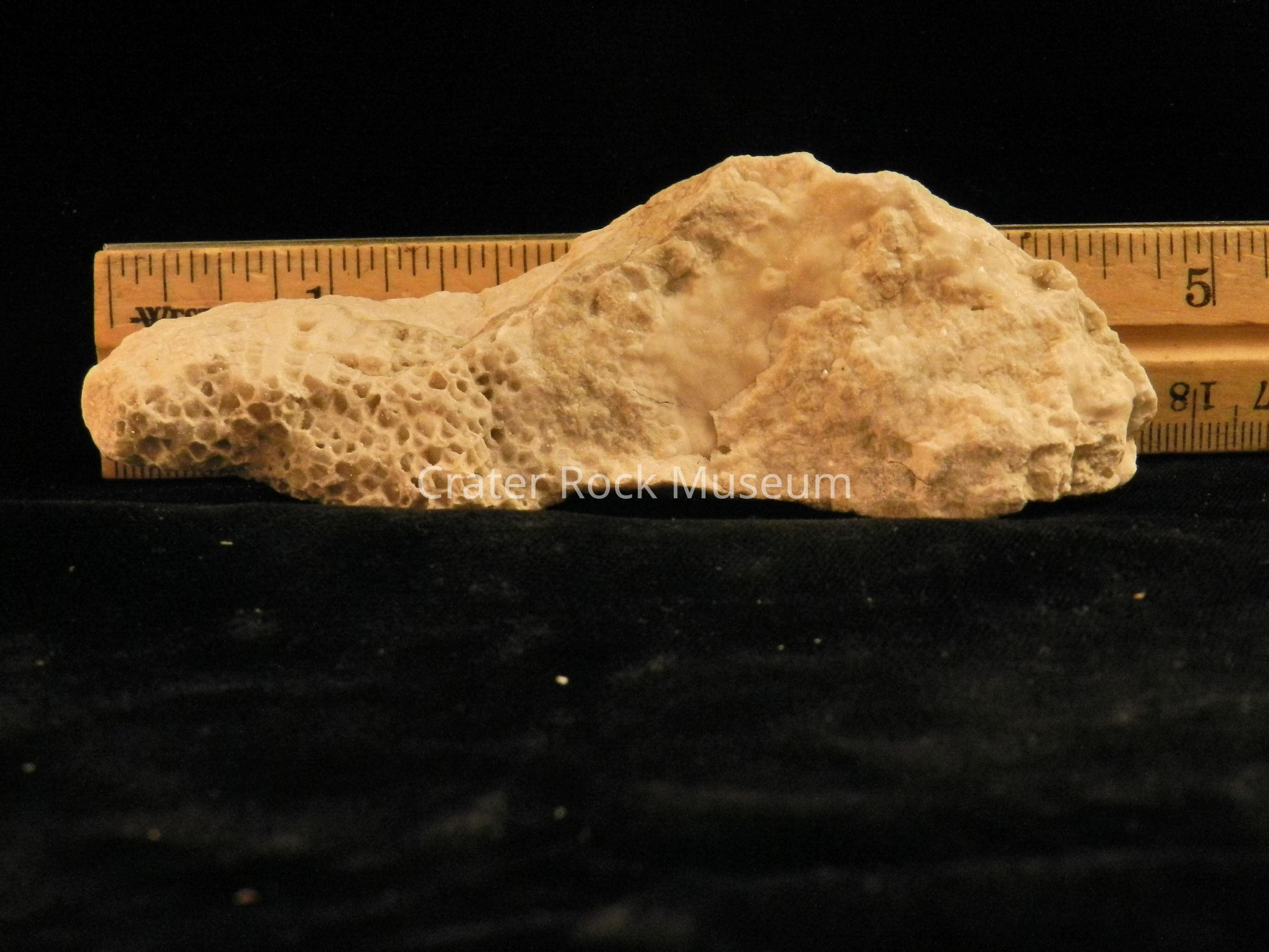 Description:Rough, irregular limestone with small remnant of a coral on one end, approx. two inches long.