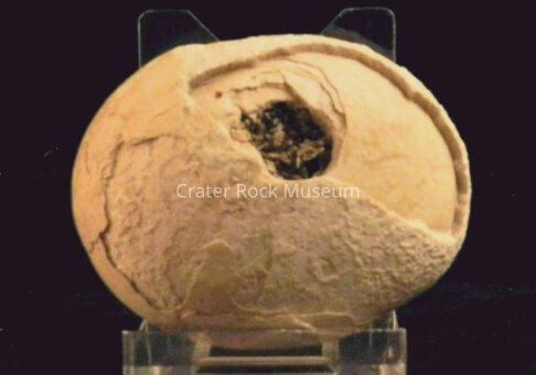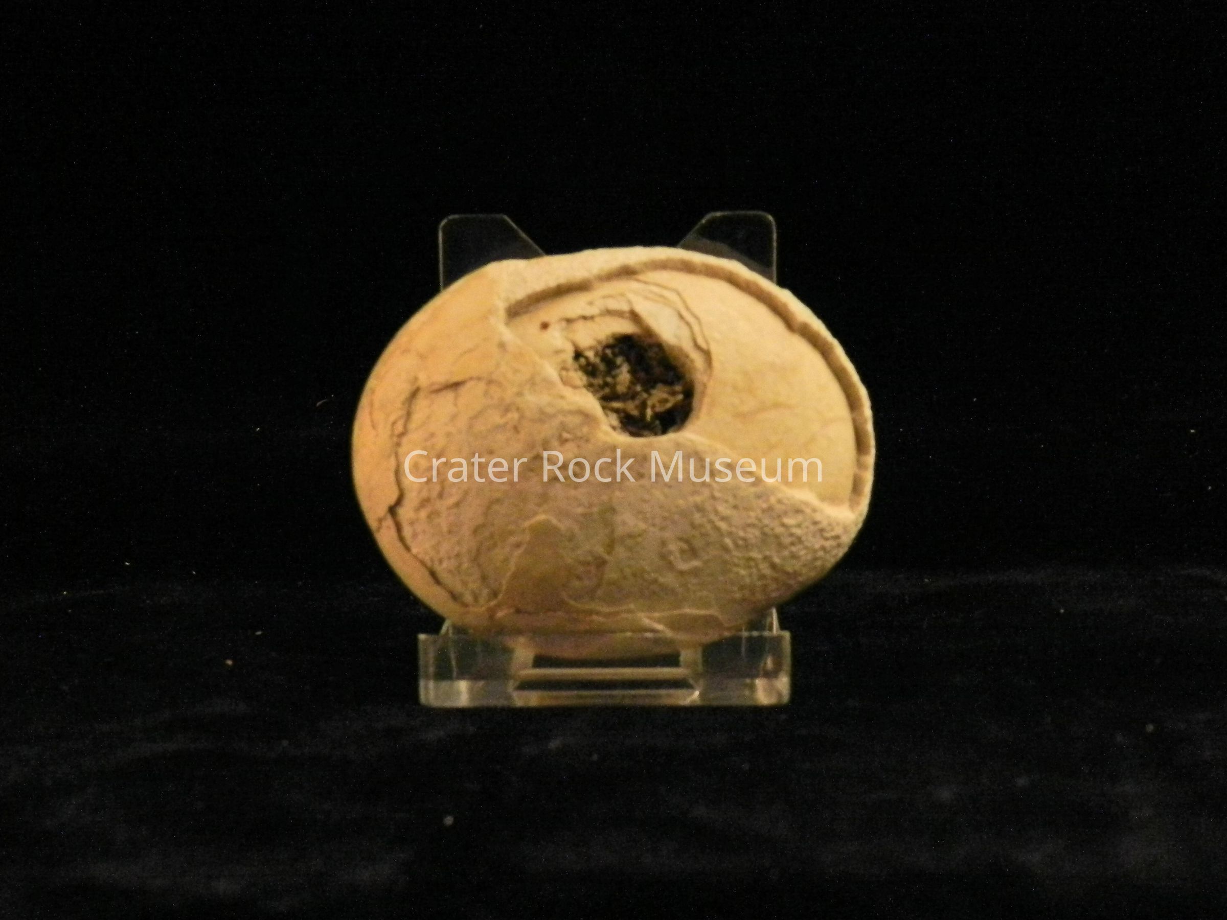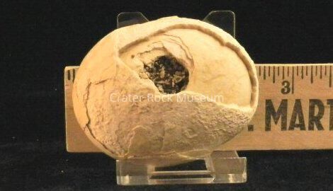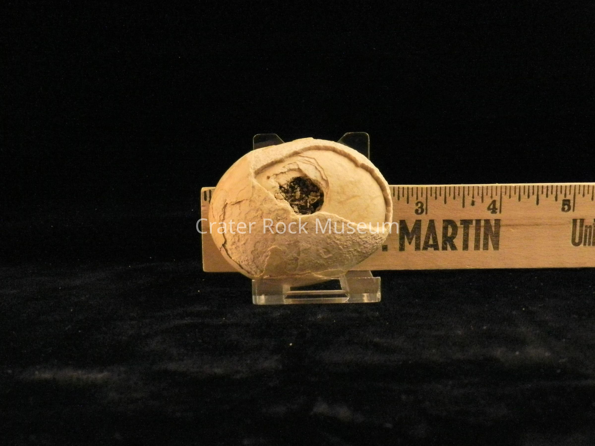 Description: Oval shape with peeling layers and a hole (.500") on one side. Dull yellow to tan.