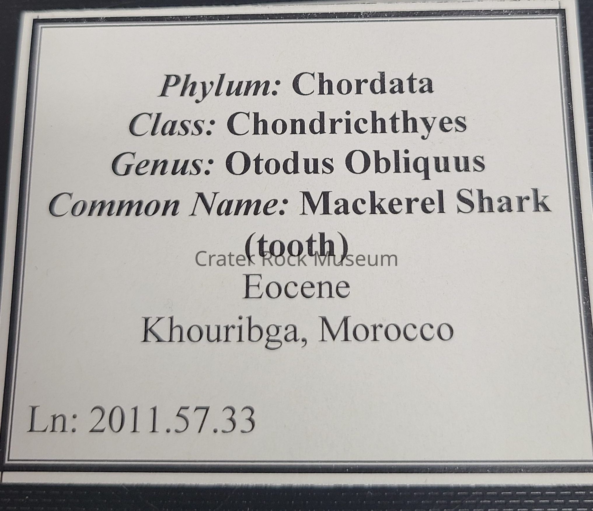 The mackerel shark resembles the white shark (Carcharodon carcharias). It has a spindle-shaped body and a very pointed (conical) snout. Contrary to the white shark this species has two keels on the tail fin and the free back end of the first dorsal fin is white. Their teeth are very pointed, while those of the white shark are triangular.