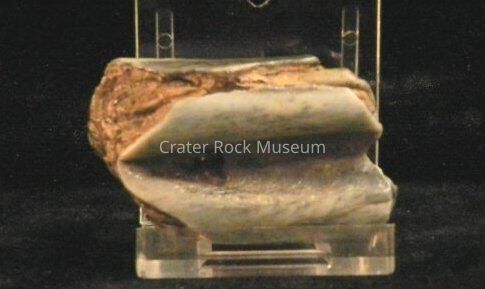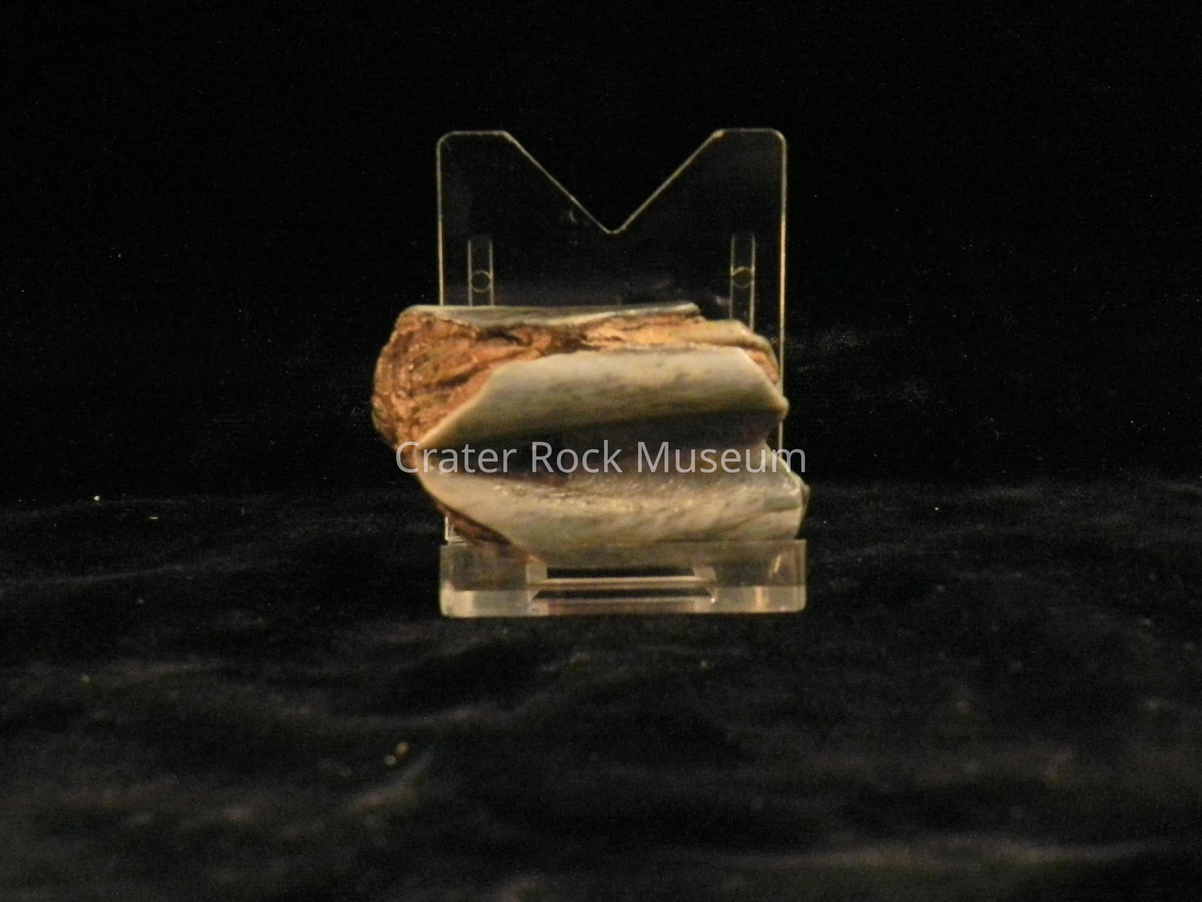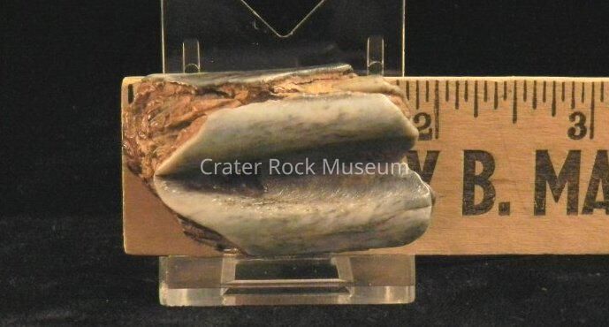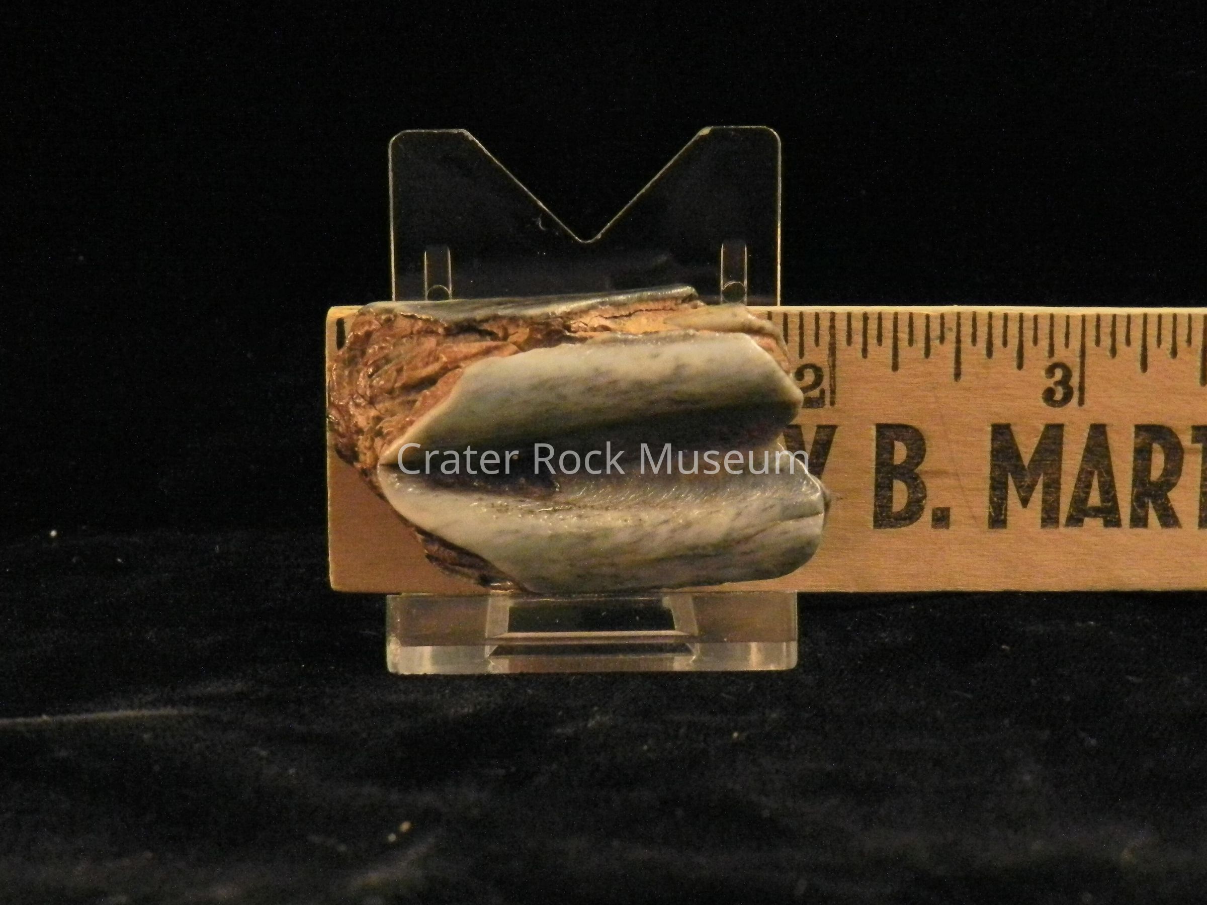 Description: Small columnar fossil with light blue to gray enamel and a brown fill in inner areas.