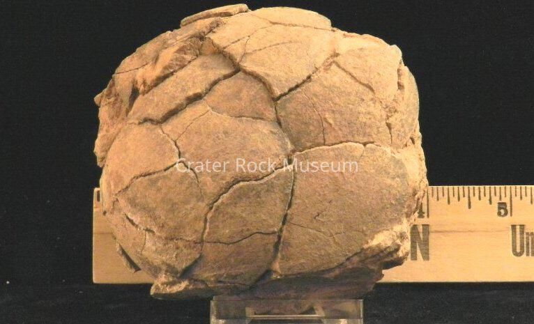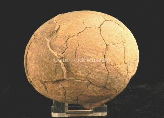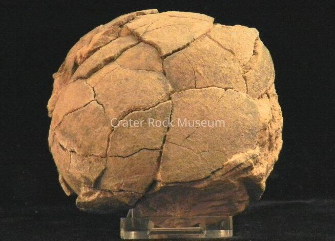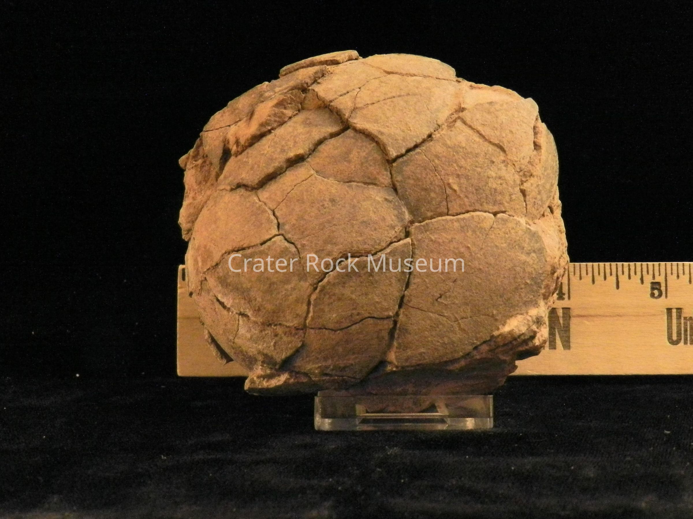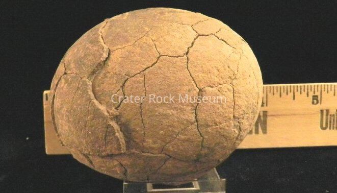 Description: (3) rounded specimens, highly fractured, while one specimen is more partial in a sandstone matrix. Colors are light to dark tan and brown.