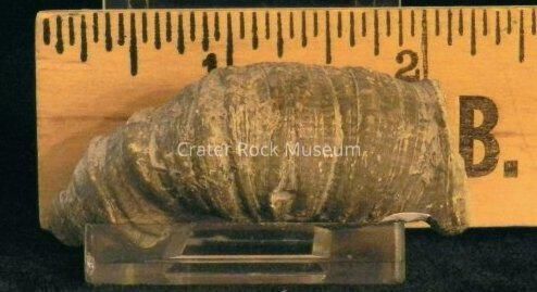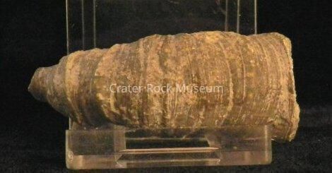 Description: Conical, crooked and segmented banding. Color is light and dark gray.