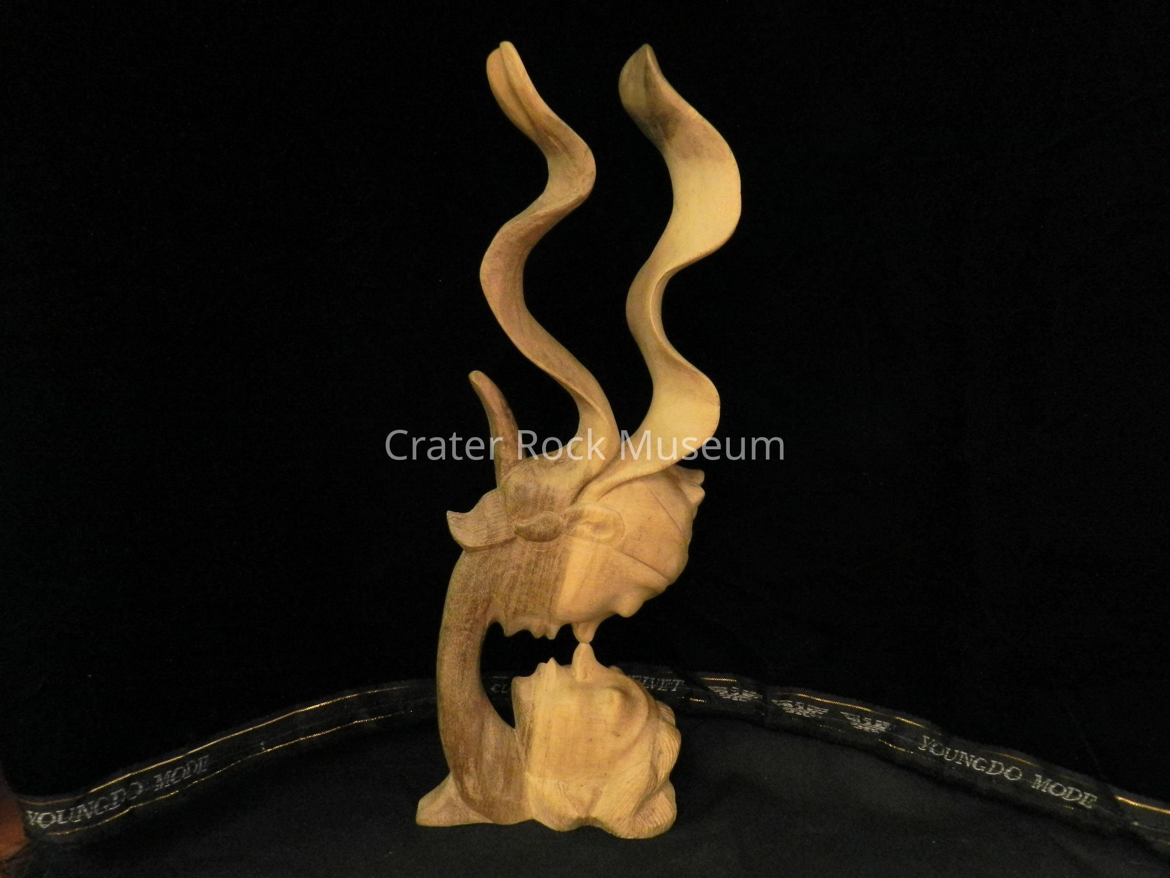 Smaller version of the Indonesian sculpture "Kissing Faces" which is carved from Rain Tree aka suwar.Collection