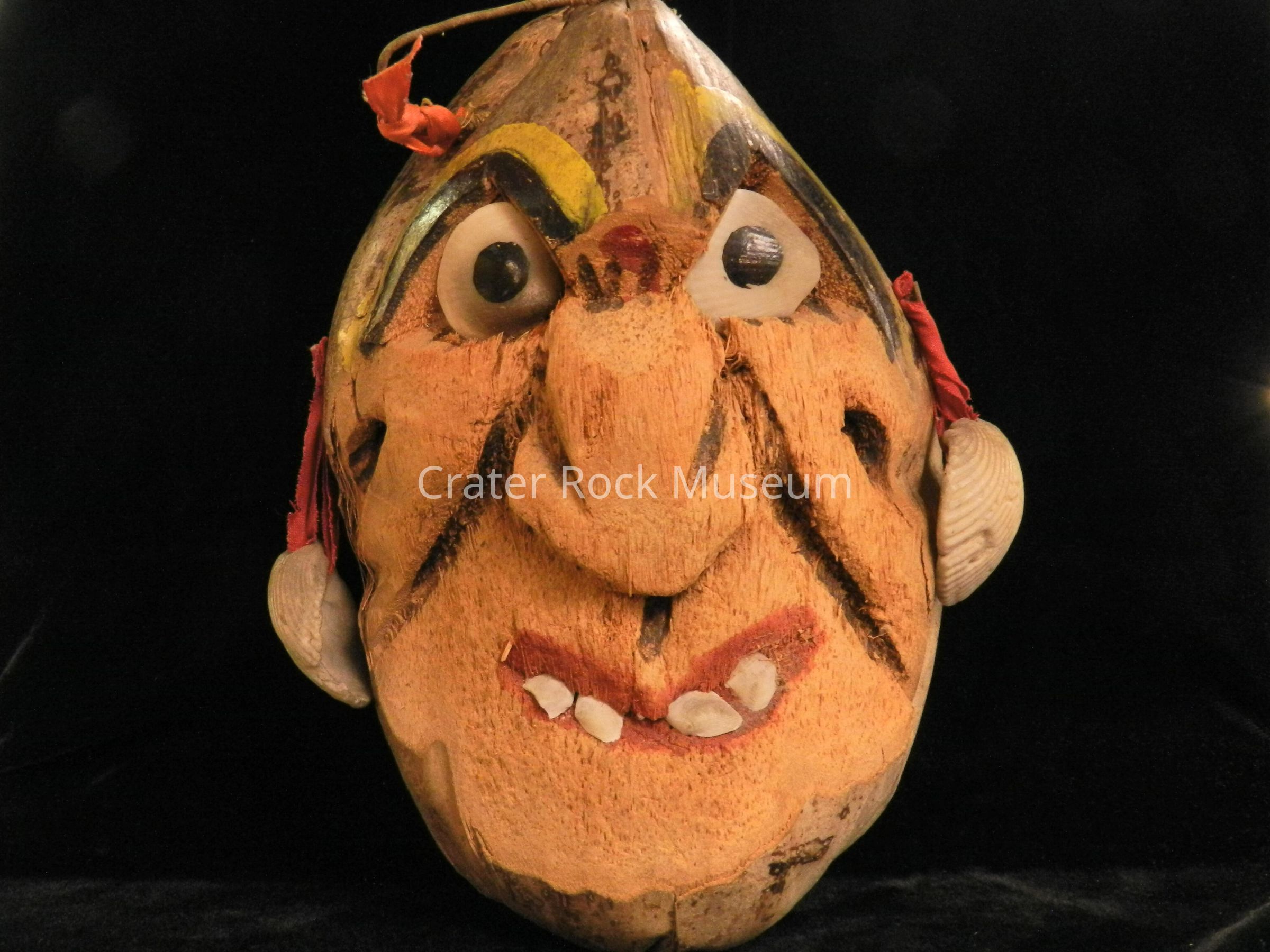 'Tourist' Indian head carved in a coconut. Yellow eyebrows and seashell earrings.Collection