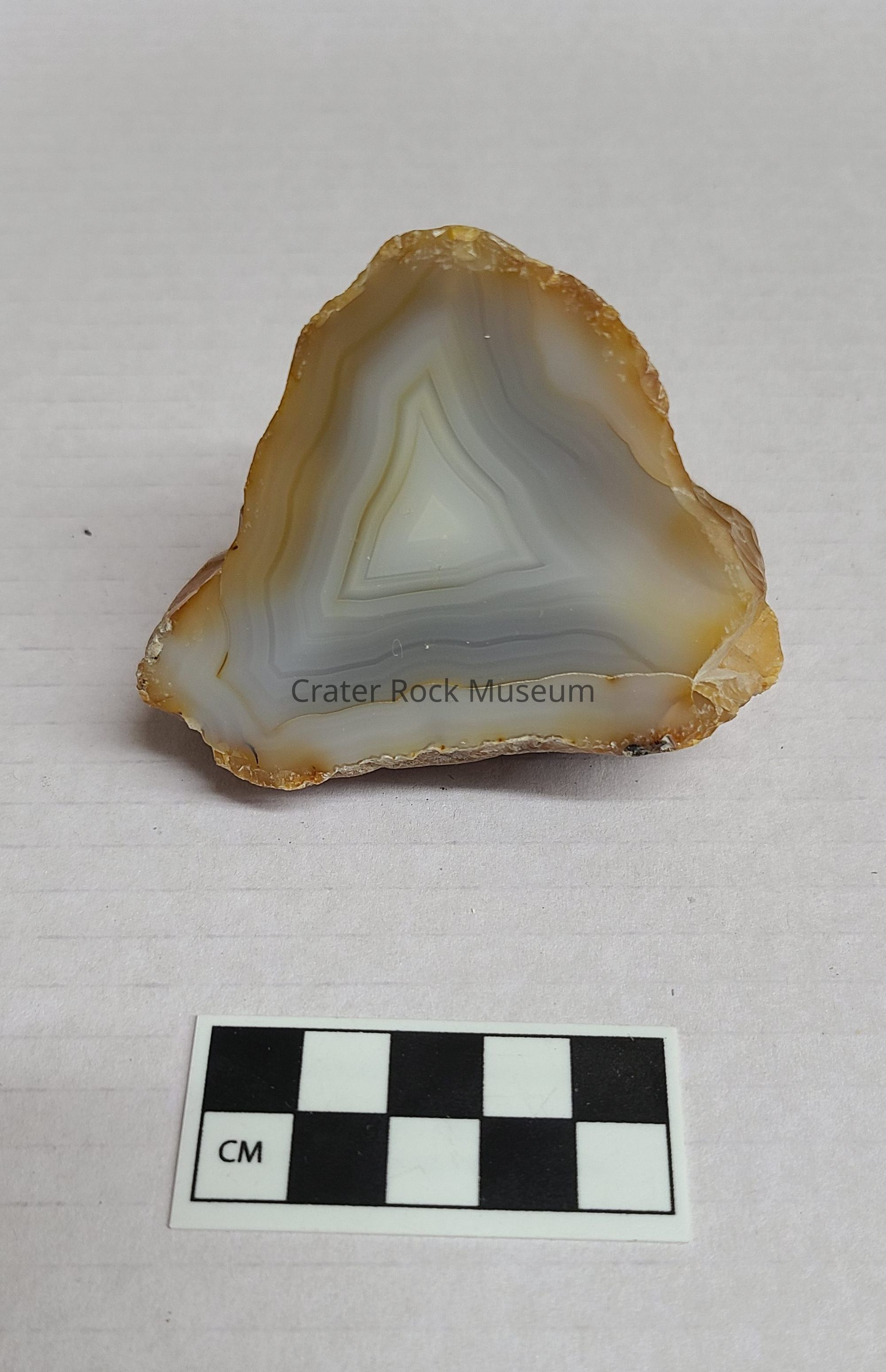 Five Agate Nodules and two slices of Agate from Bear Creek, Jackson County, OR. Varying in size. Polished sidesshow fortified Agate in colors ranging from White to Yellows to Pinks to Greys to Blues. One contains Crystals. Cracks present in four.Dimensions