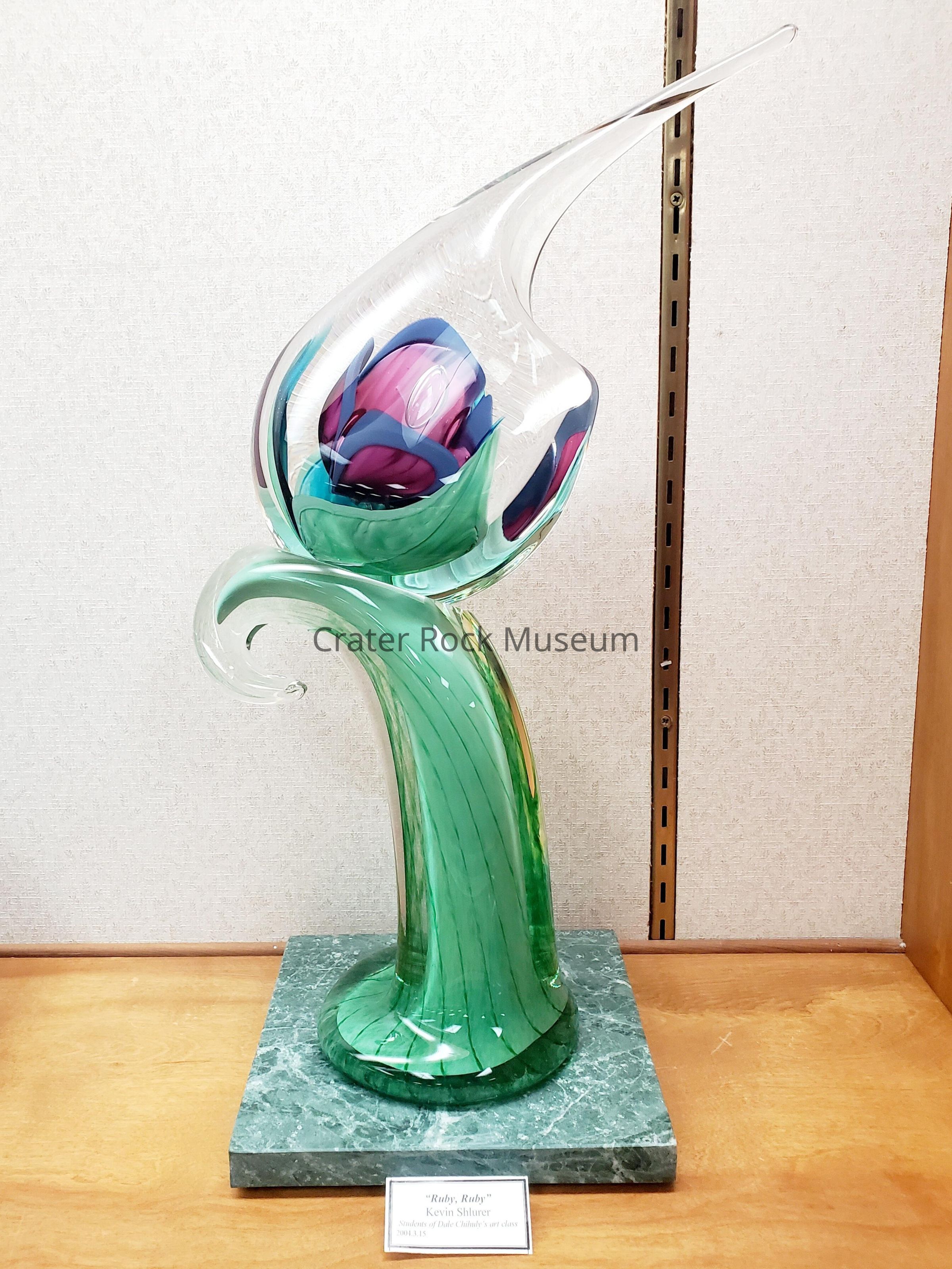 Artist Kevin Shluker realizes sculpture from molten glass that is inspired by his past and present surroundings. Born in the cultural hot bed of what is now the Silicon Valley, Shluker would not find an introduction to glassblowing until 1995, when he made his home in the Pojoaque Valley north of Santa Fe, N.M. After a brief period under the tutelage of Charlie Miner at the Tesuque Glassworks, Shluker decided to pursue his education from the masters of Murano, an island in the Venetian Lagoon known for a millennium of history in the art of glassblowing. Fortune led him to the door of maestro Dino Rosin, who would become Shluker’s friend and mentor. Rosin is a glass master of forty-seven years experience who in his time has collaborated with greats such as Picasso and ChagallCollection