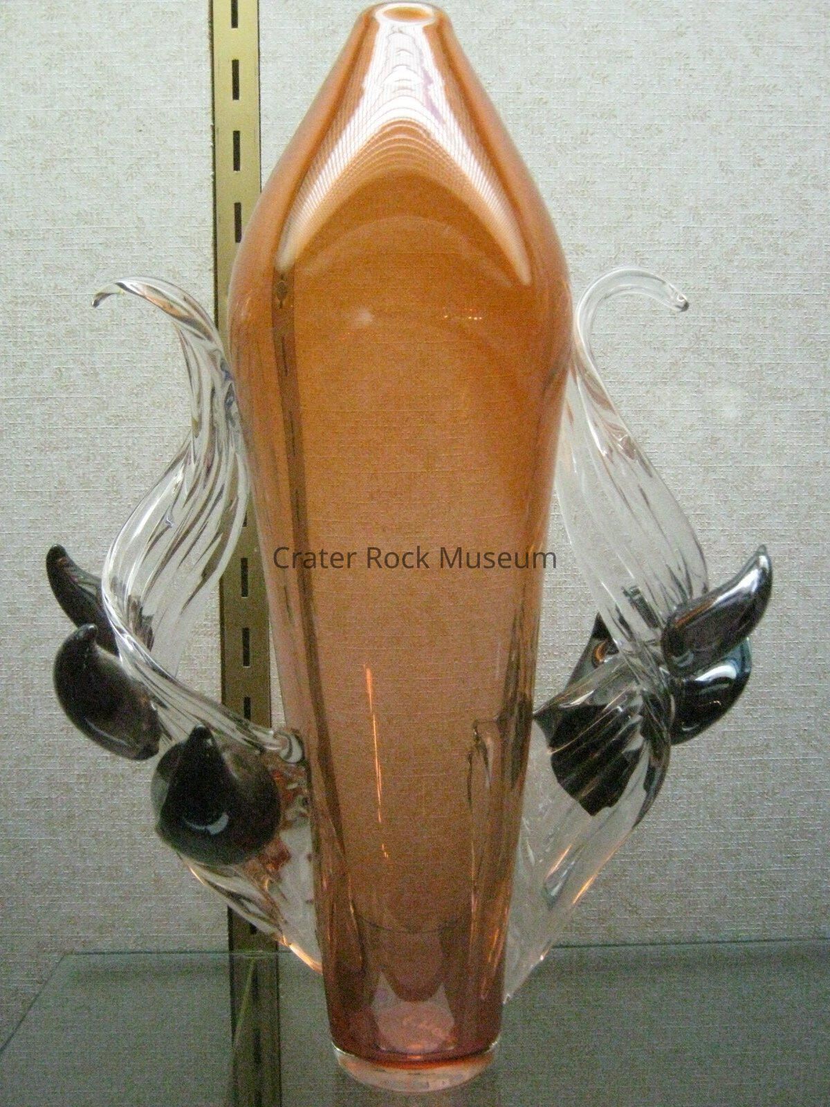 A Coral Vase thats thin at the top with white stems on the sideCollection
