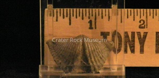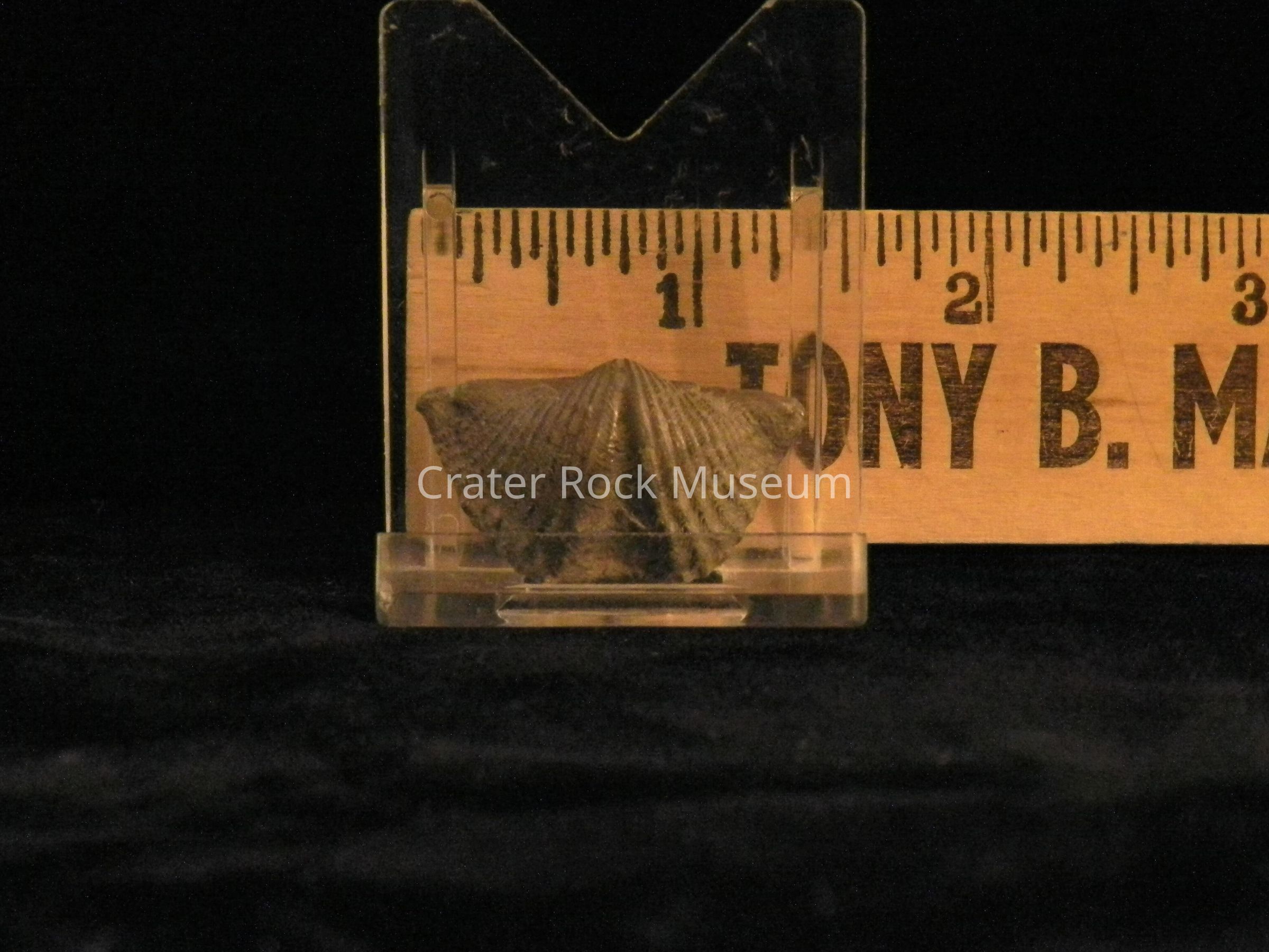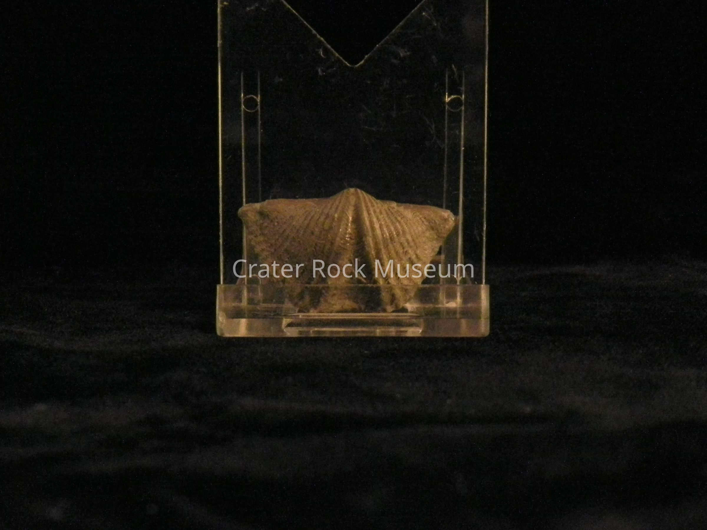 Description: Highly detailed brachiopod with two convex, symetrical halves. Color is light tan to gray with no matrix.