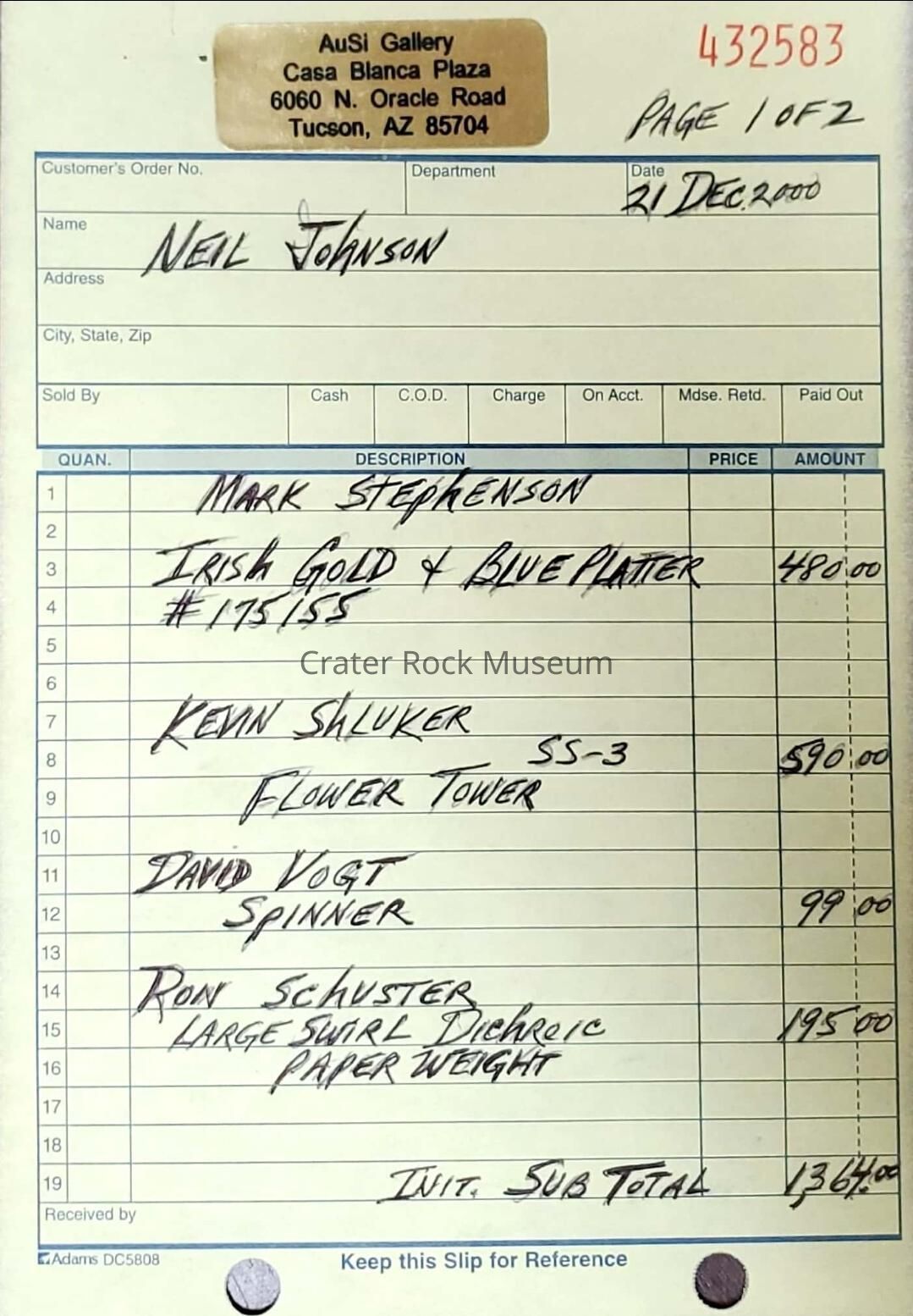 The Art Glass produced by Ron Schuster is made of the fines crystal and colored glass available. The artist's interest in hot glass work was spawned by a desire for a more spontaneous and uninhibited mode of expression within the glass medium. After more than two decades as a creator of stained glass windows, Ron brings a wealth of experience with color and design to his new venture. The glass which we include in our Dichroic Series paperweights has been coated with up to 50 micro-thin layers of exotic metals such as titanium and zirconium. These metals are applied during an advanced manufacturing process involving high energy, intense heat and near total vacuum. The result is an optical effect in which reflected light produces various crisp and vibrant colors when viewed from different angles. This combined with the contrasting black background and strategically placed bubbles produces an elegant and mysterious artistic effect.Collection