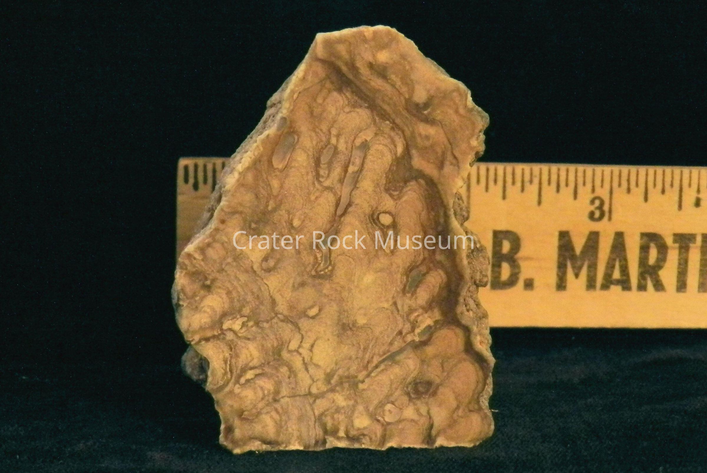 Description: Rough block with (1) polished face. Stromatolite structures are finely detailed showing banding with tube-like structures. Color is light to dark tan and brown.