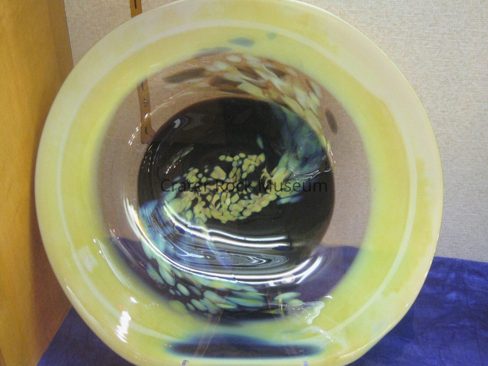 Large Platter with yellow on the outside and brown and black in the middle.Collection