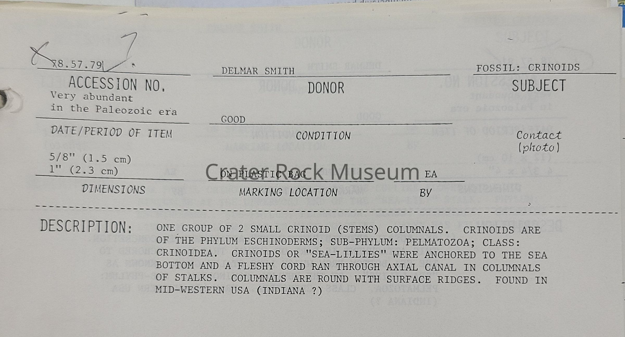 Fossil Crinoid (Columnals)Entry/Object ID